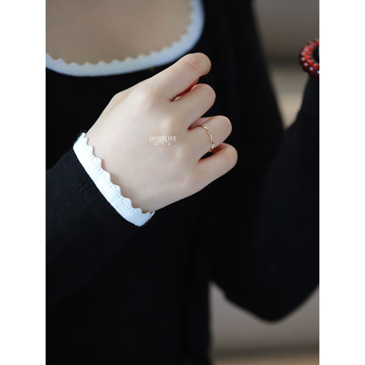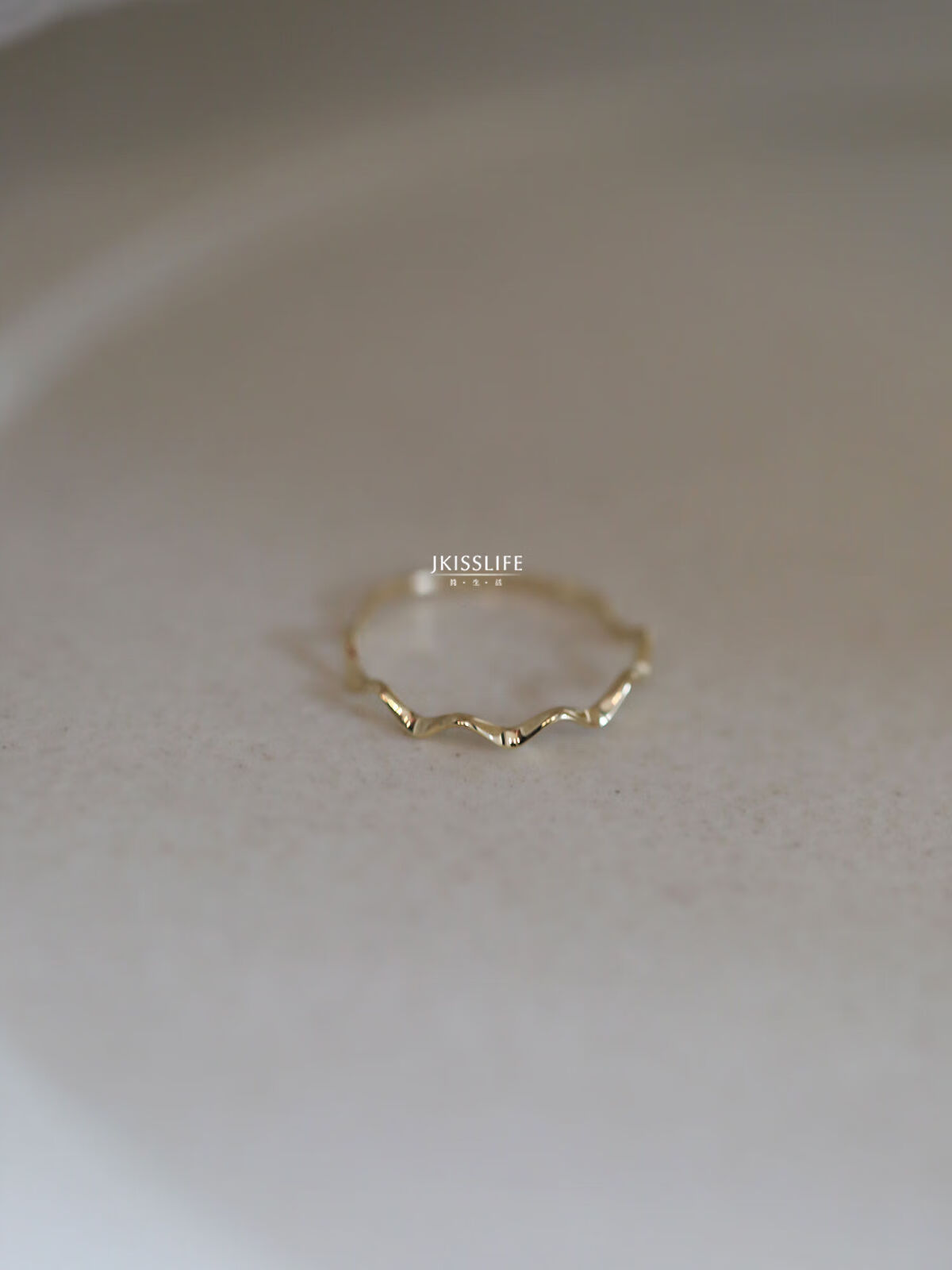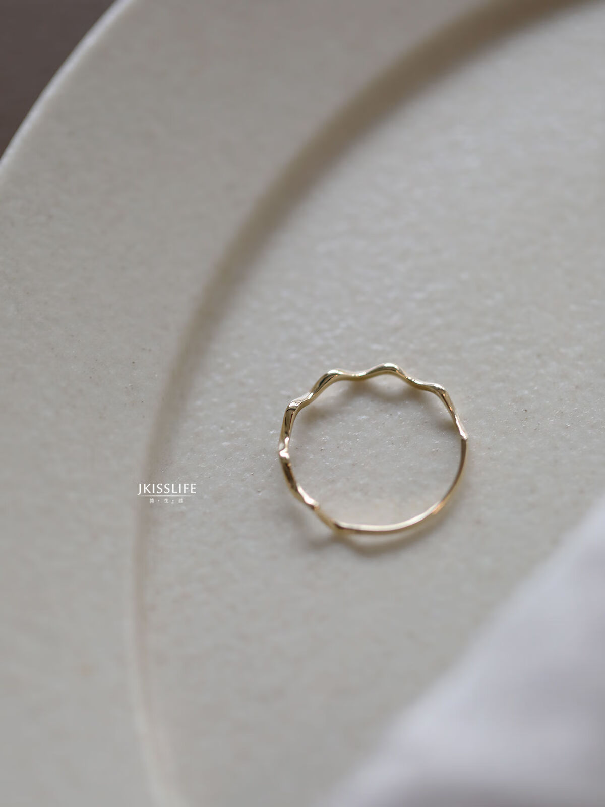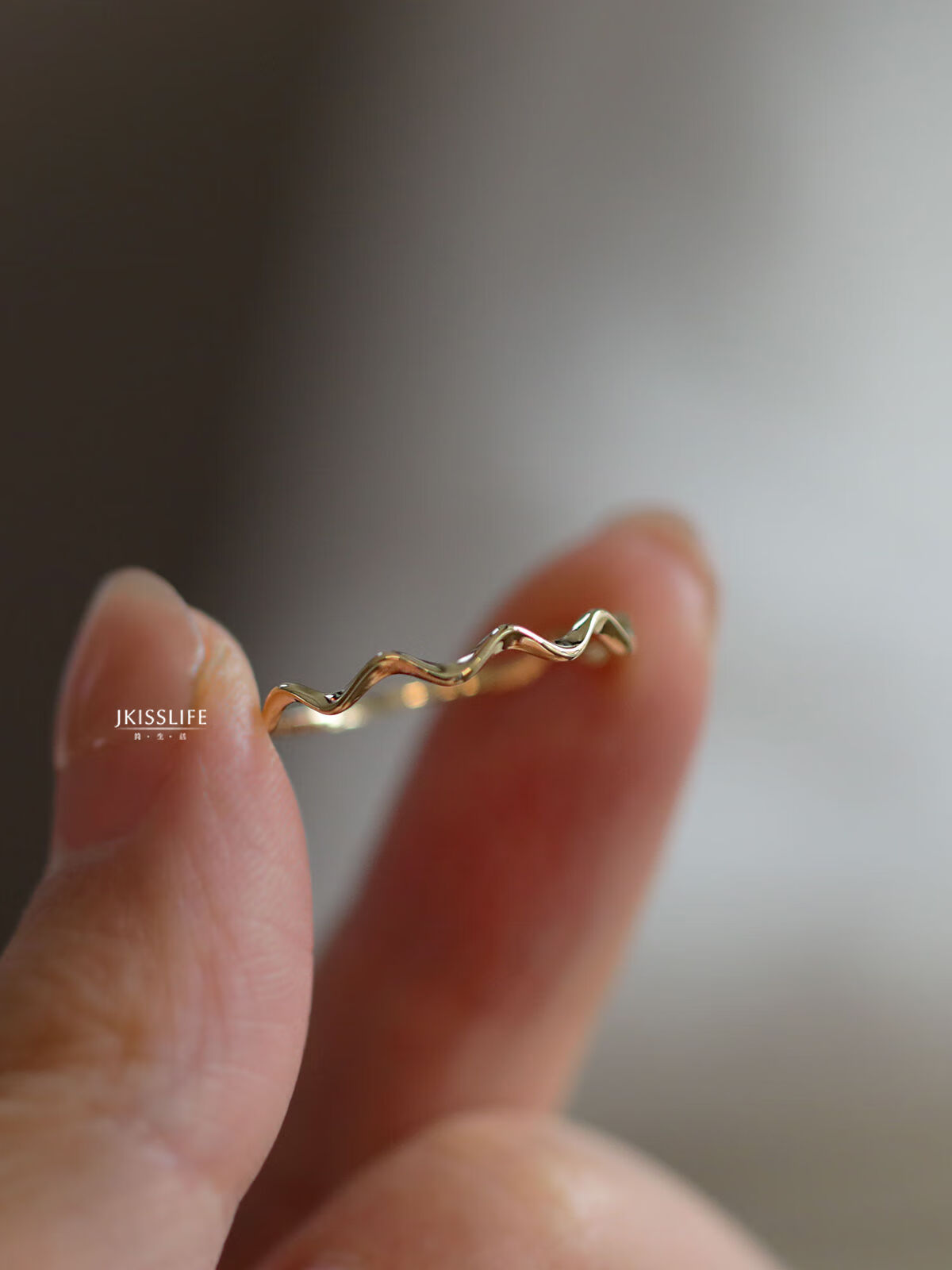 Yadige gold minimalist wave niche special K gold-plated ring exquisite daily simple stacking wear and commuting good match light yellow Hong Kong code No. 6