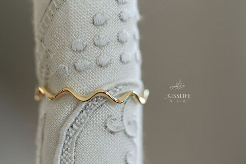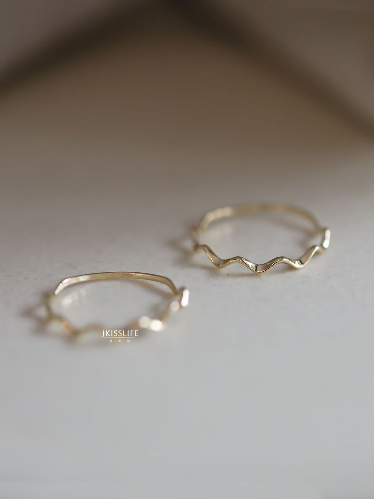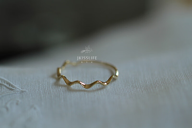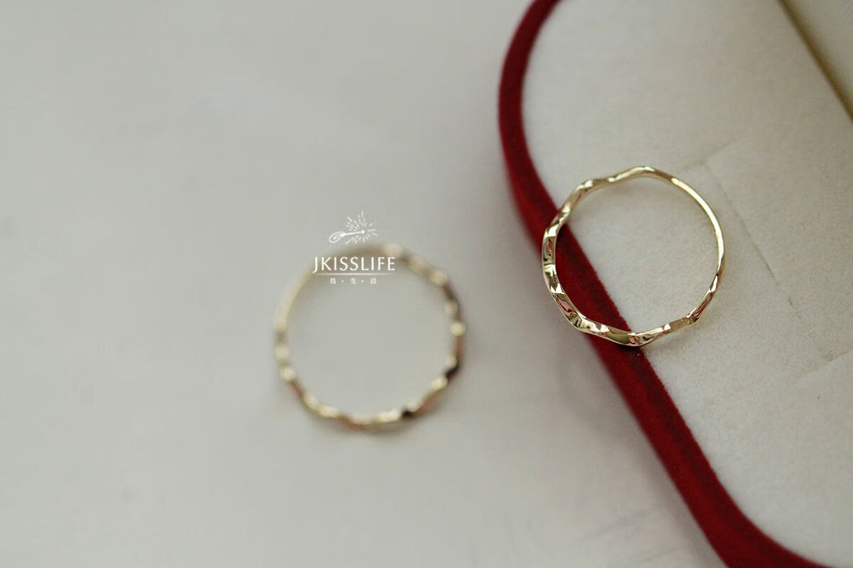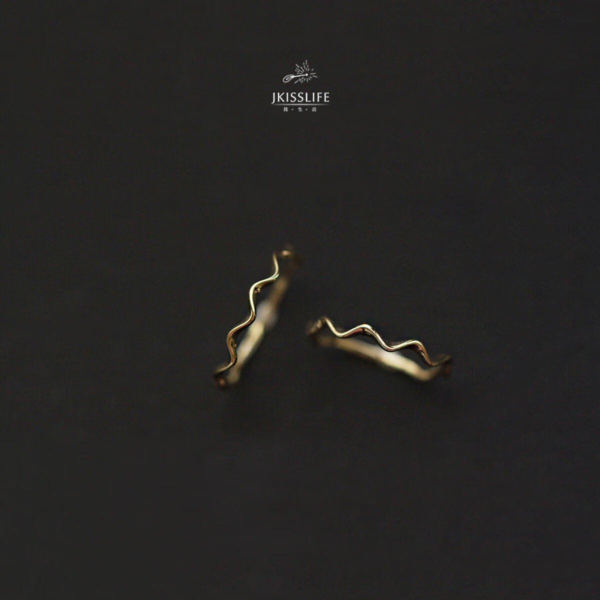 Yadige gold minimalist wave niche special K gold-plated ring exquisite daily simple stacking wear and commuting good match light yellow Hong Kong code No. 6