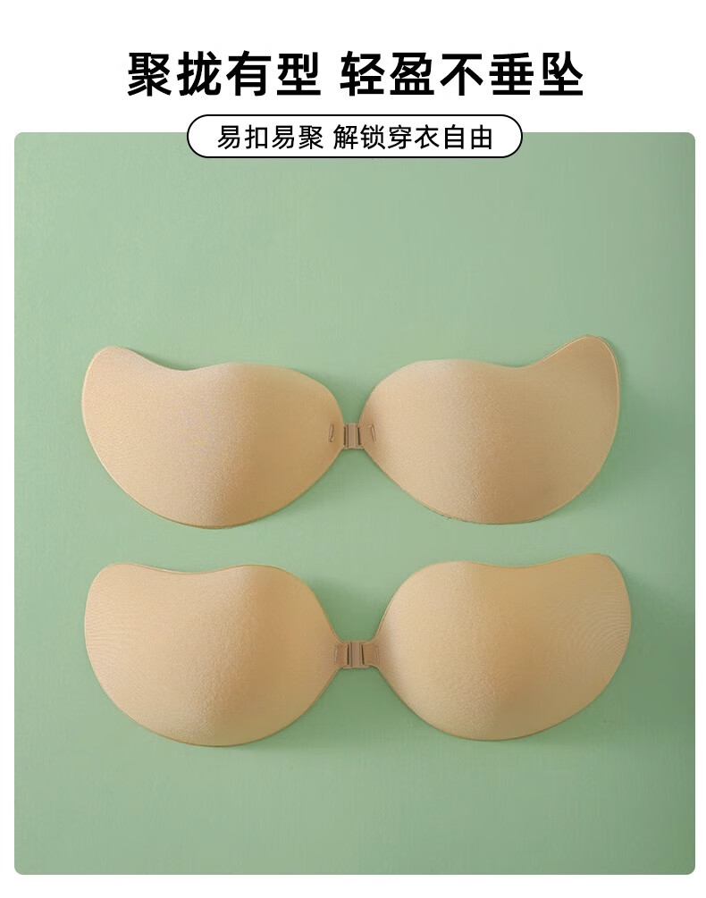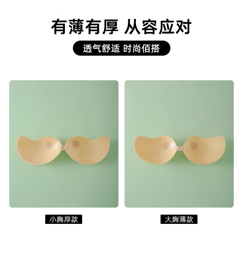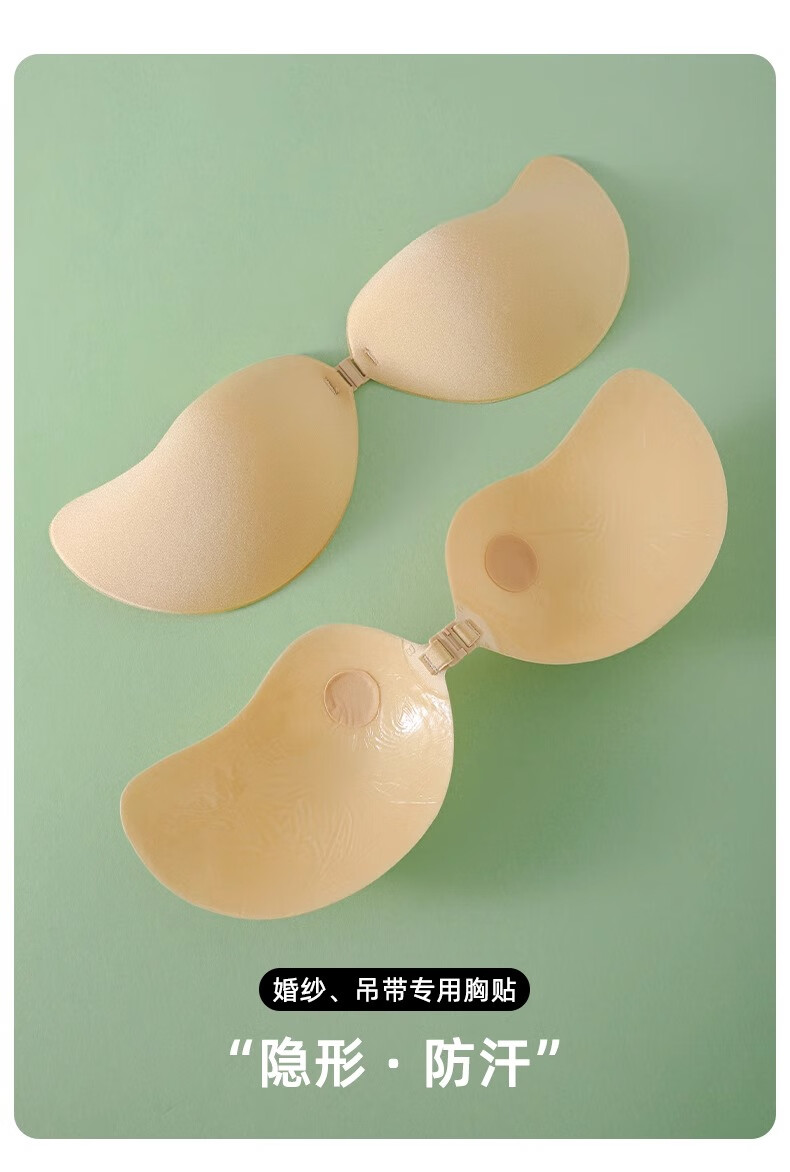 Breast stickers for women's wedding dresses, invisible small breast push-up, thin silicone lifting mango cup breast stickers for suspenders, 2 pairs of skin color - thin cup breathable B cup