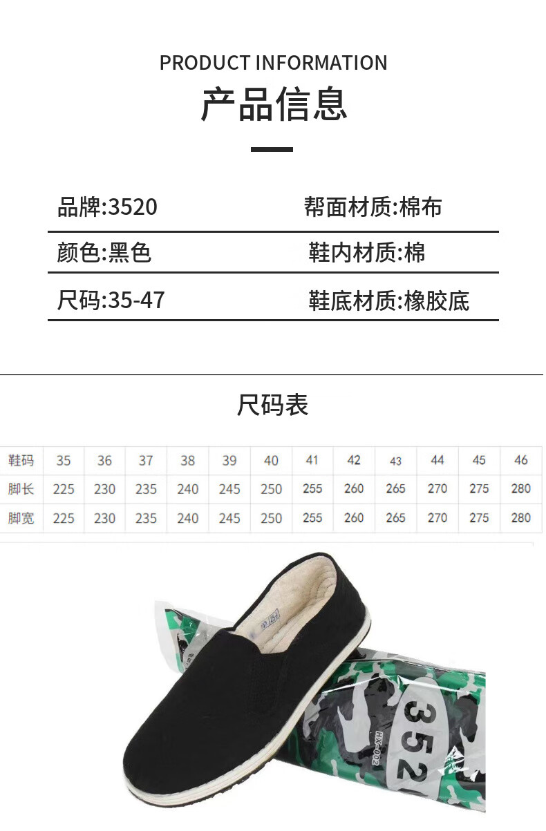 3520 manufacturer supplies 3520 cloth shoes, old Beijing cloth shoes, elasticated slip-ons, labor protection work shoes, mille-layout cloth shoes, black 43