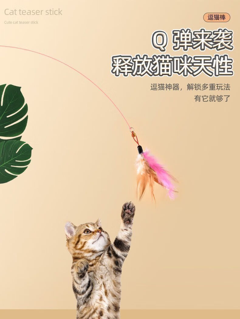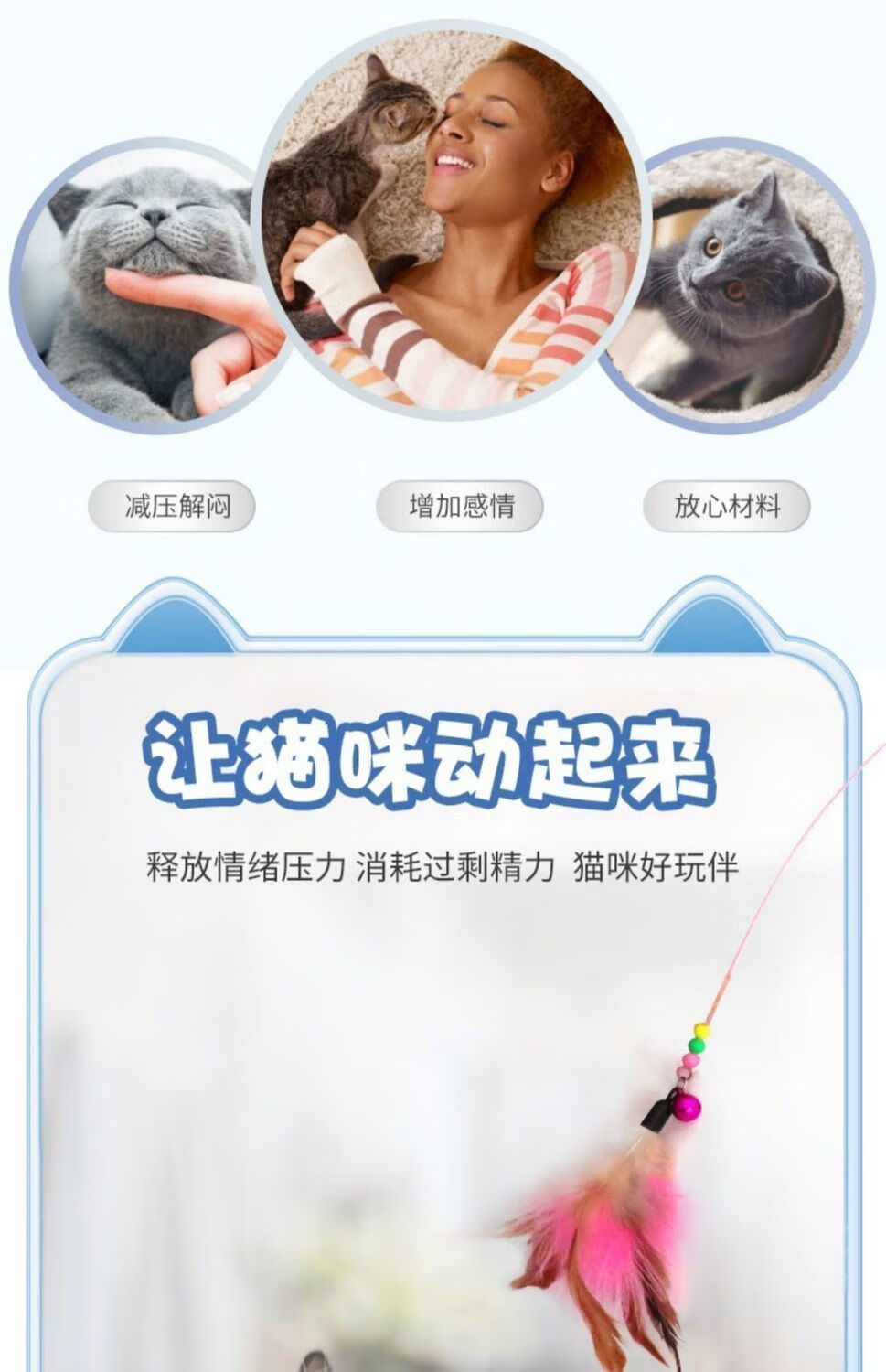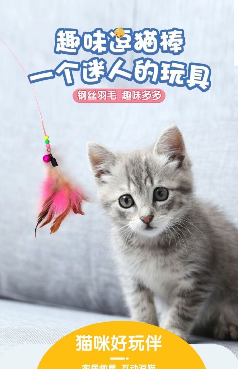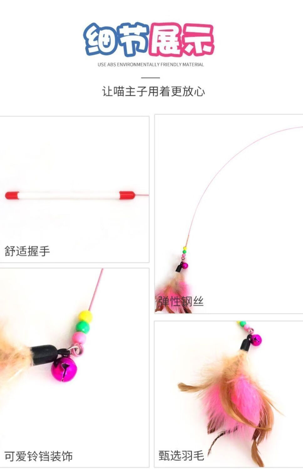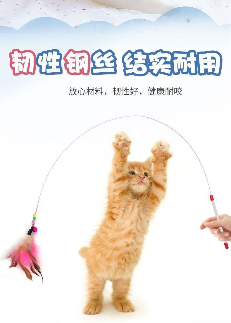 New cat toys, cat sticks, long rods, feathers with bells, cat toys, pet cat sticks to relieve bored cats, 1 replacement head