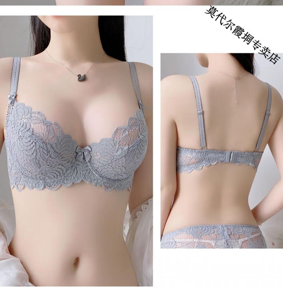 Modal Sexy Summer Thin Underwear Women's Push Up Small Breasts Big Breast Show Small Large Size Bra 2025 Autumn and Winter New Gray 70A =32A