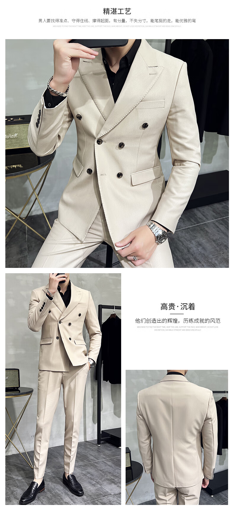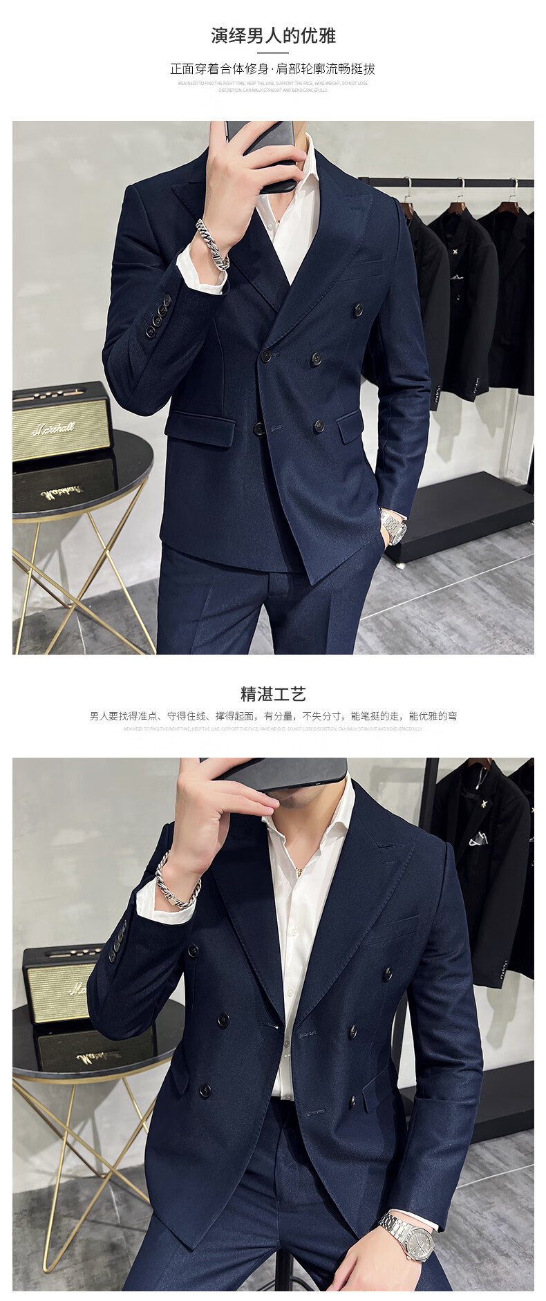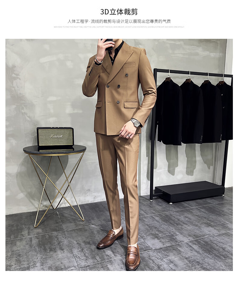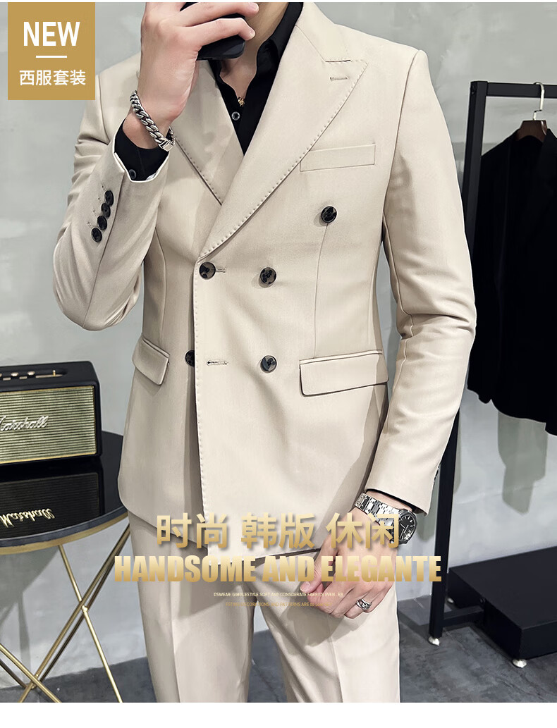Playboy (PLAYBOY) high-end double-breasted peaked lapel suit men's wedding Korean version slim British style casual small suit jacket navy blue jacket + pants 4XL (163-175Jin Jin equals 0.5 kg)