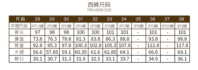 USA(inch) 28-30 30-32 32-34 34-38 38-42