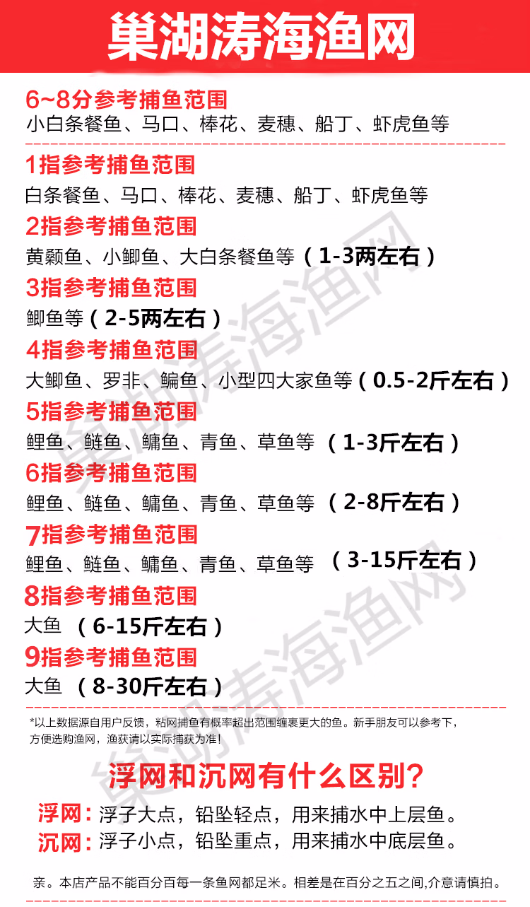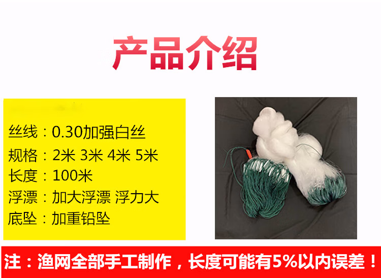 Yuzhiyuan 0.3 thick wire 1.5 meters to 6 meters high three-layer floating net floating net fishing net silver carp grass fish net sticky mesh wire mesh fishing net 0.30 thick wire 6 meters 7 fingers 100 meters floating net
