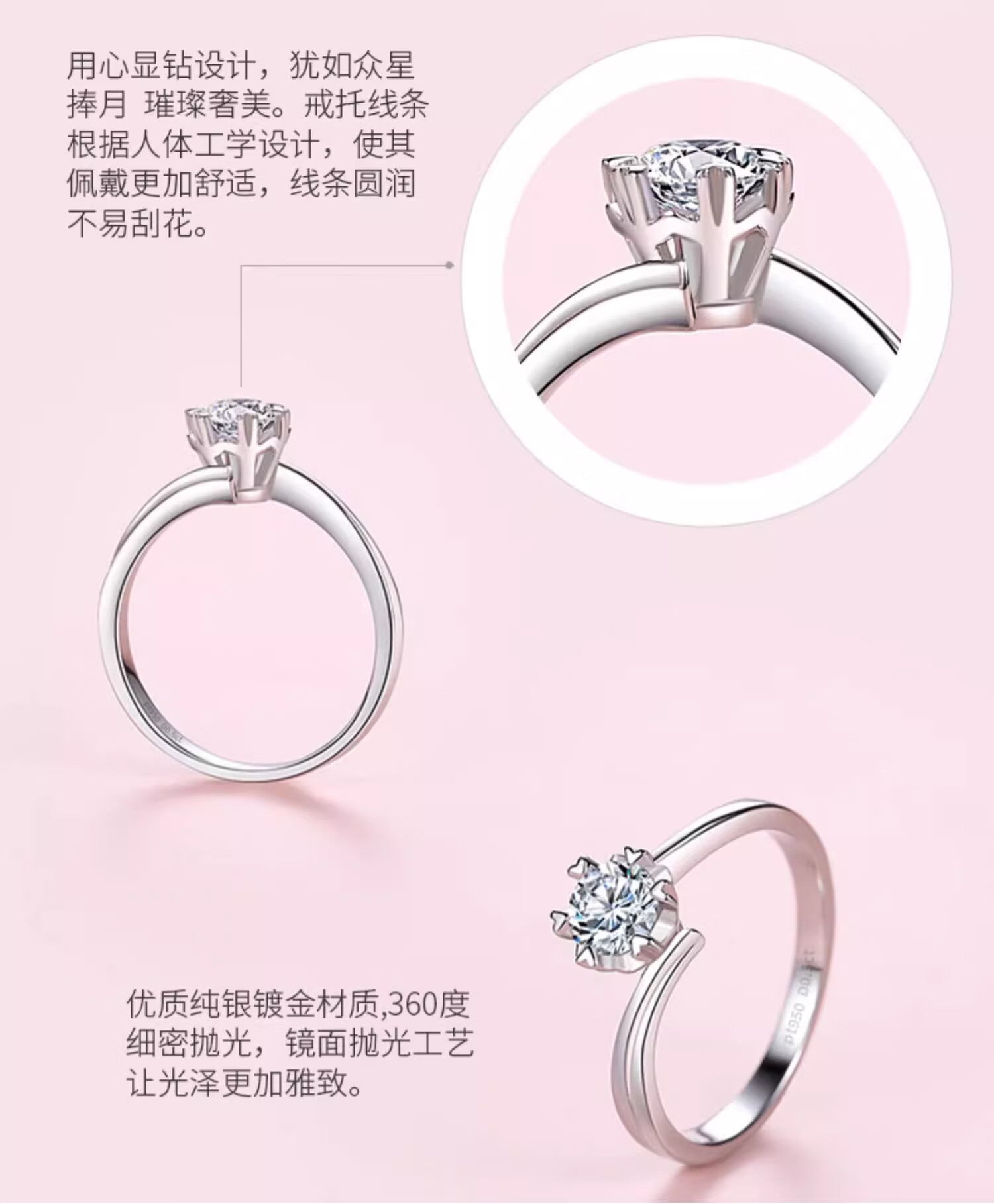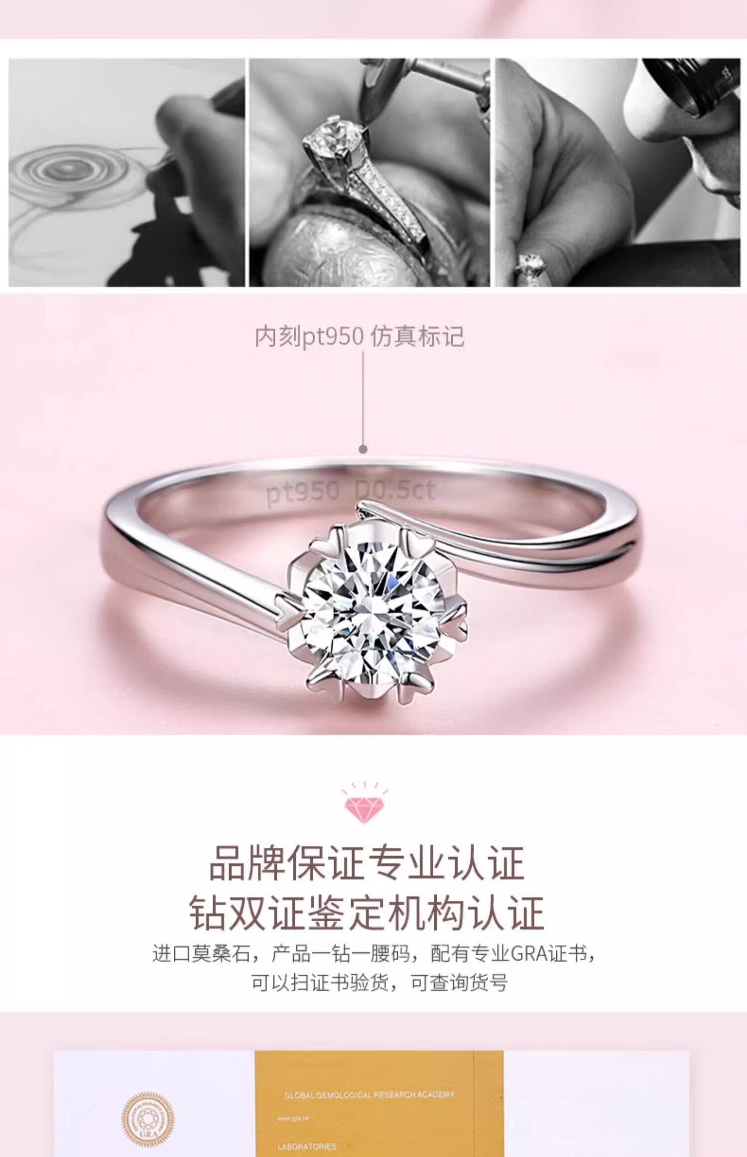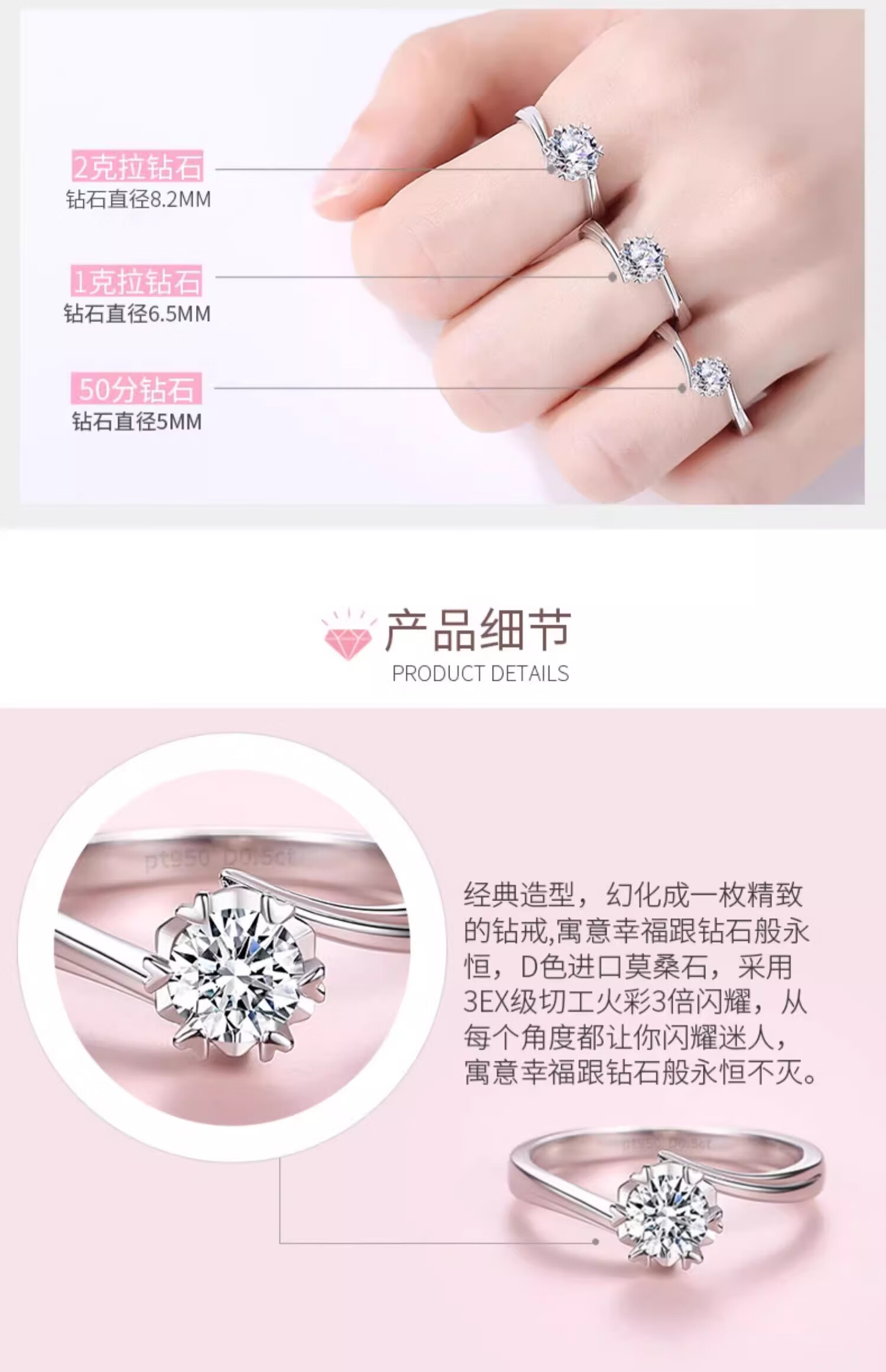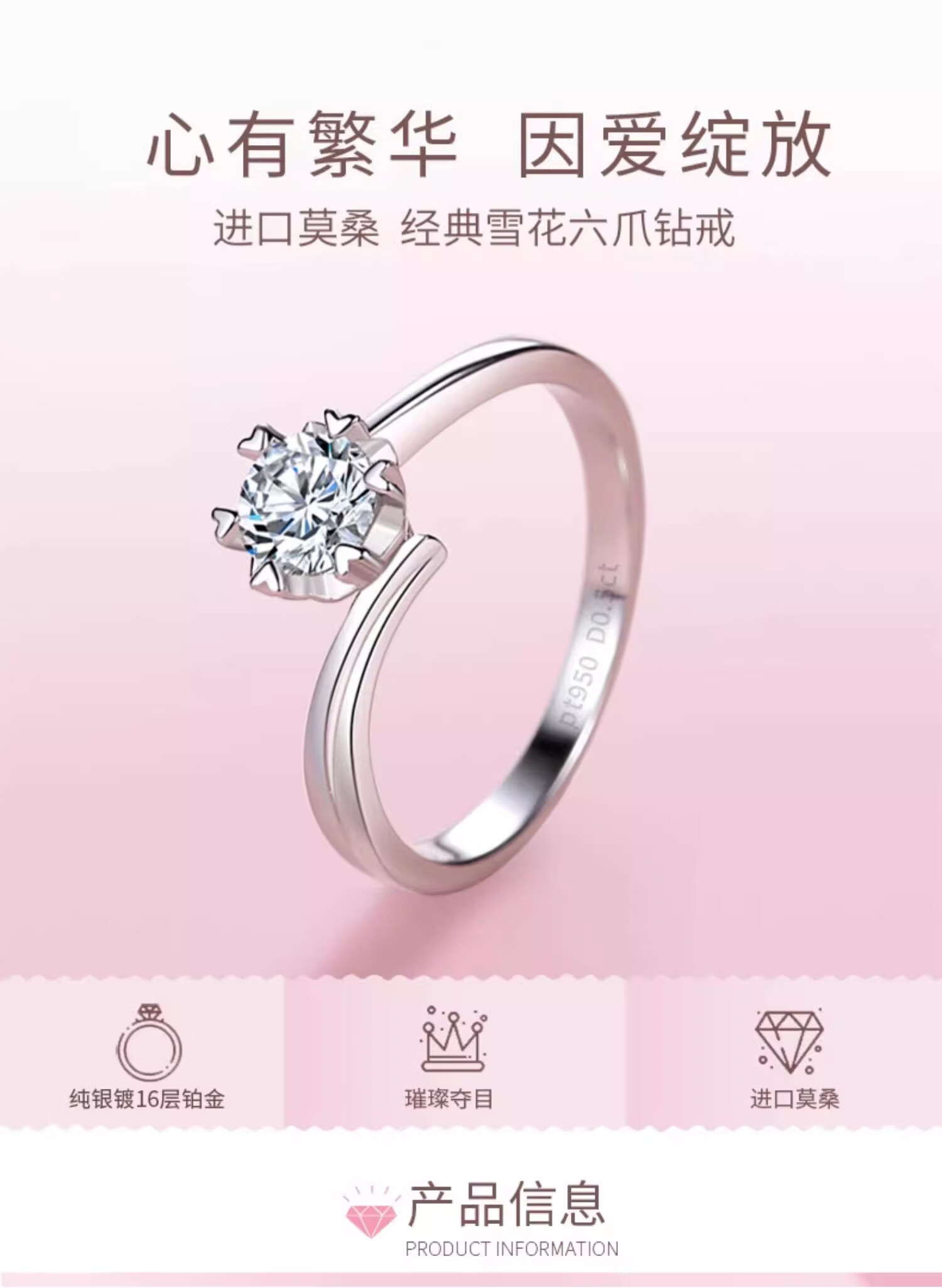 Counter PT950 Platinum Ring Women's Snowflake 18K Gold Diamond Ring Wedding Proposal Ring Holiday Gift for Girlfriend Light Luxury Snowflake Twisted Jade (Diamond 50 Points) Opening Adjustable Size