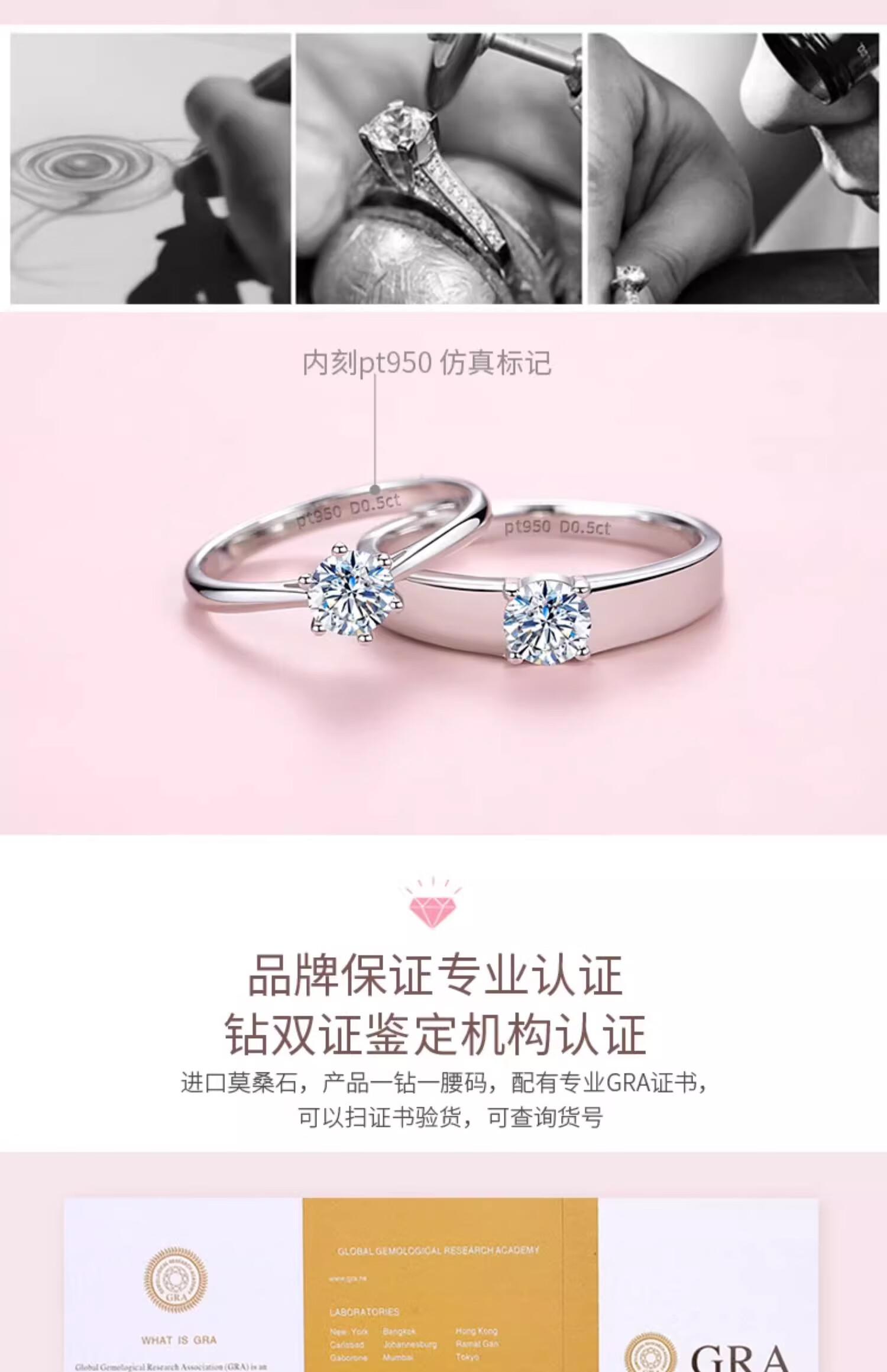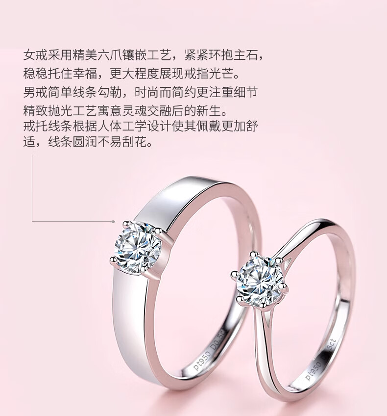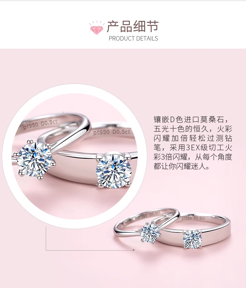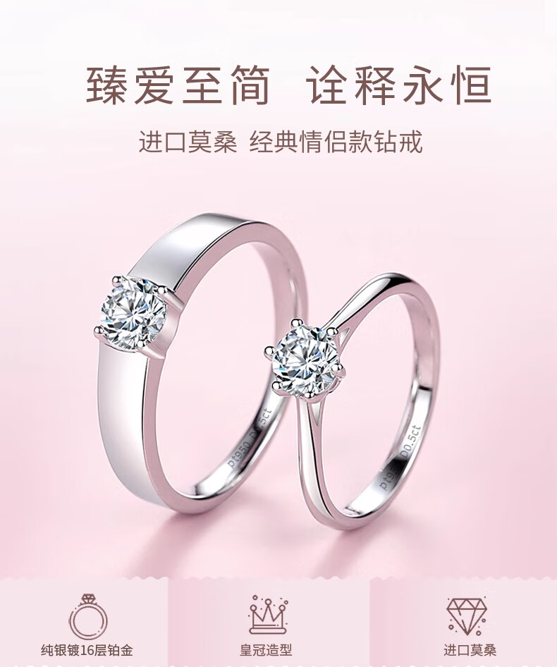 Counter PT950 platinum ring couple ring 18K gold diamond ring wedding proposal ring holiday gift for girlfriend light luxury single women's ring (diamond 50 points) opening adjustable size