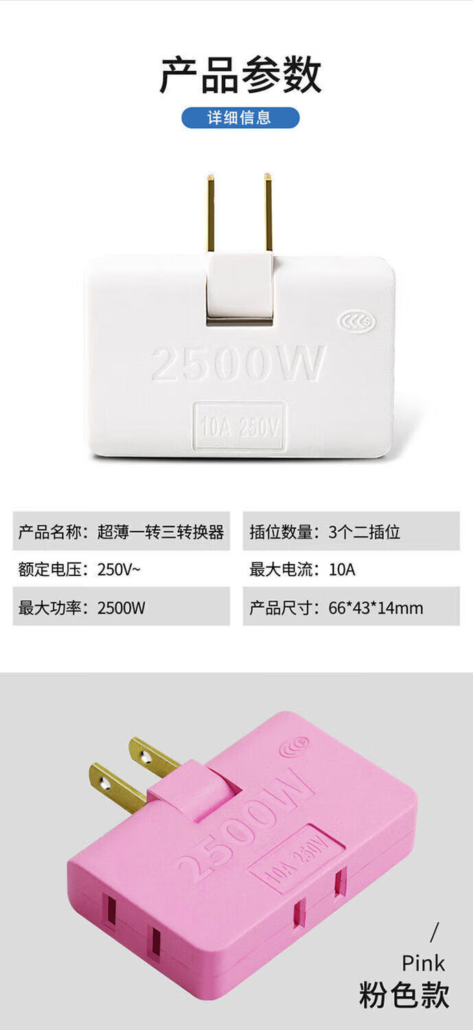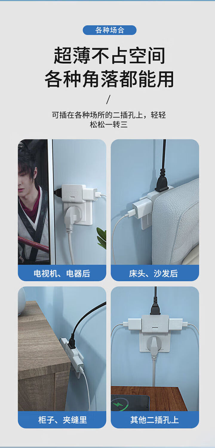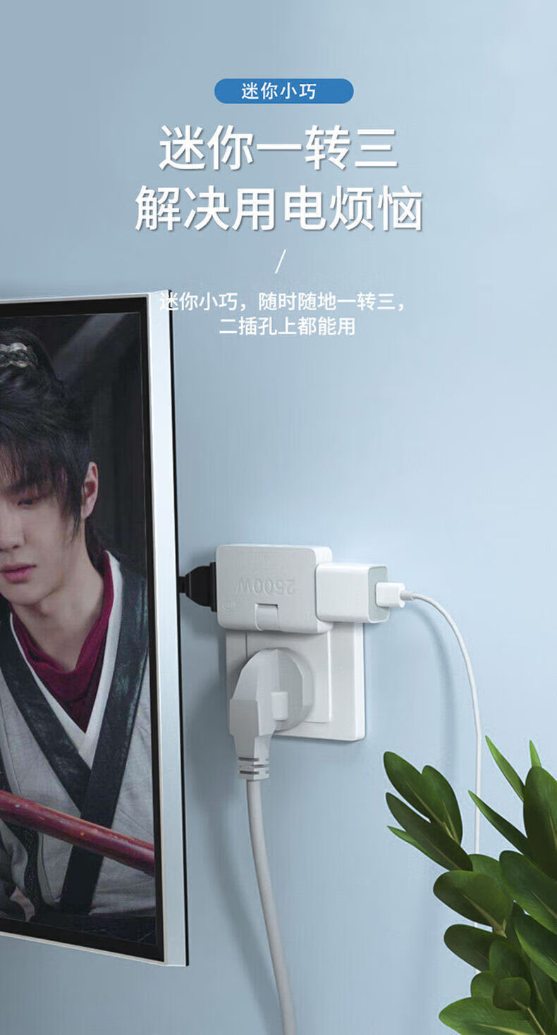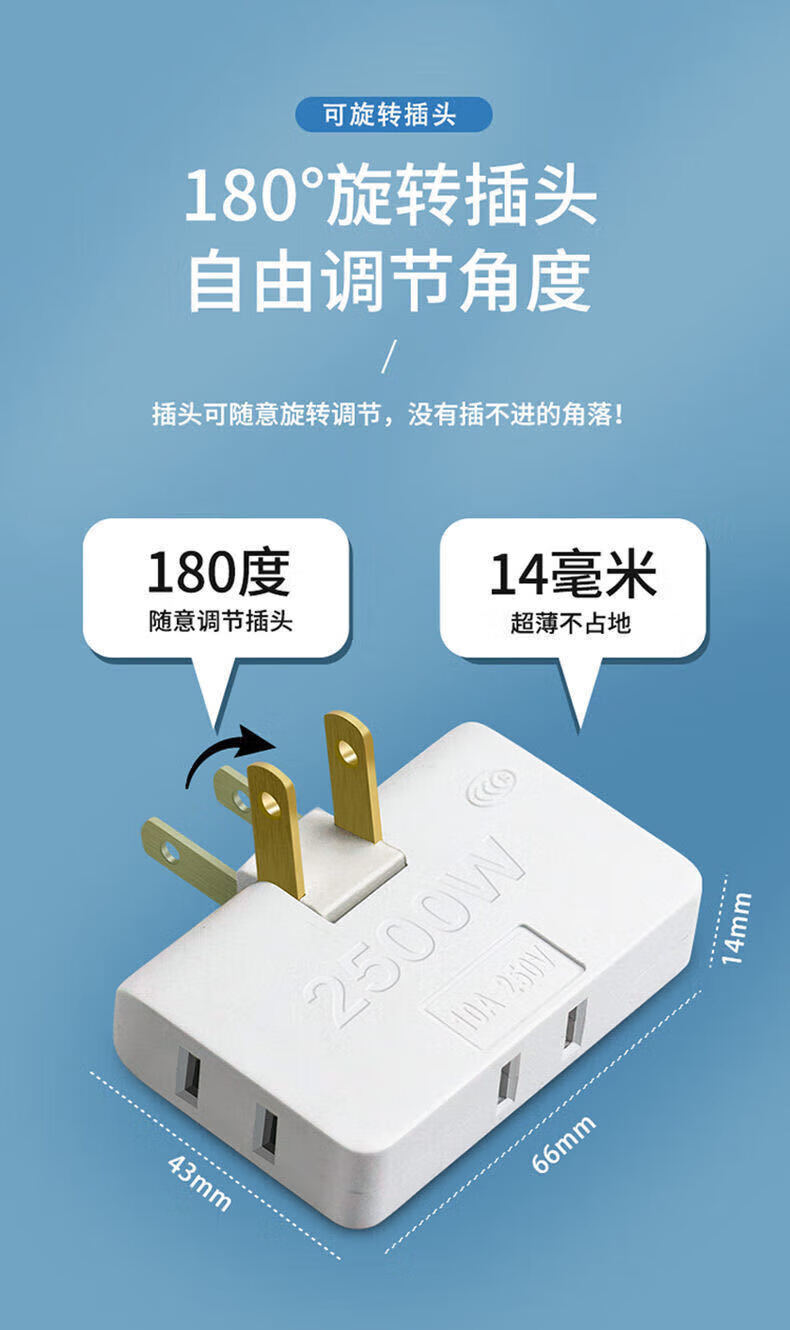 Socket converter two-hole multi-function socket rotating 360-degree folding plug multi-purpose strip white upgraded single piece