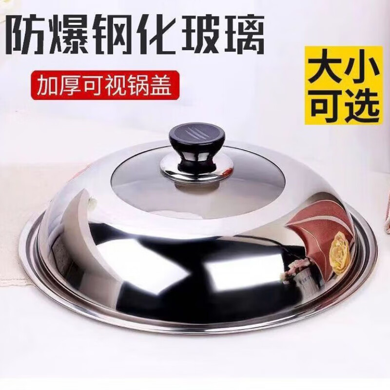 Runhuanian 304 pot lid thickened stainless steel household high temperature resistant explosion-proof visual glass combination lid wok anti-fall electric pot lid 32cm suitable for pots with an inner diameter of 30-31.5cm