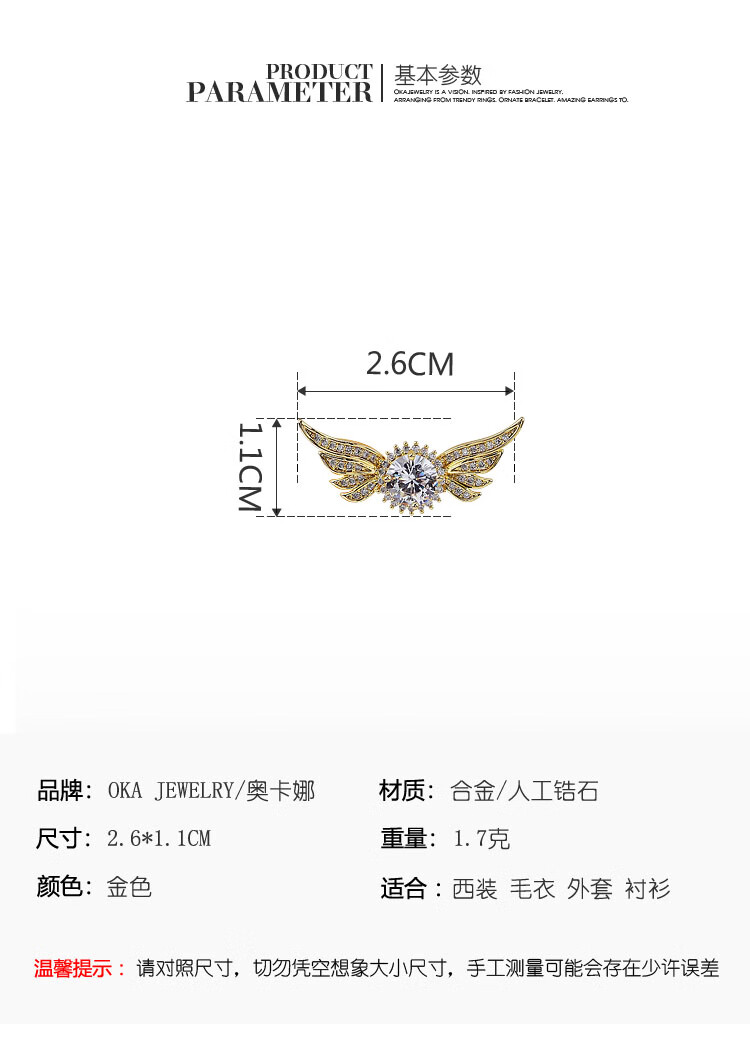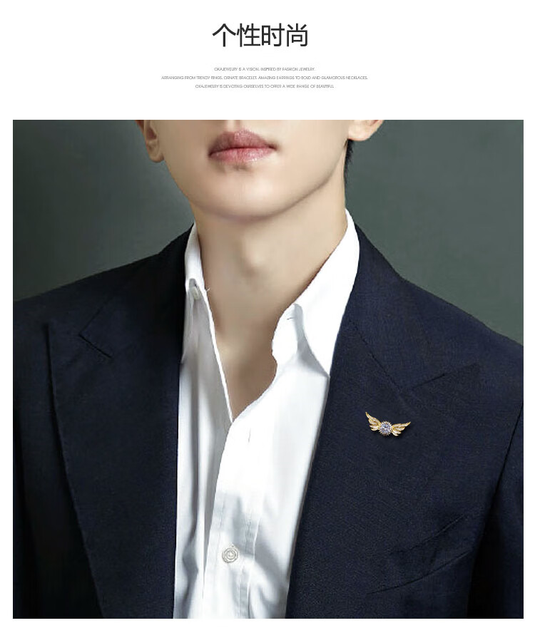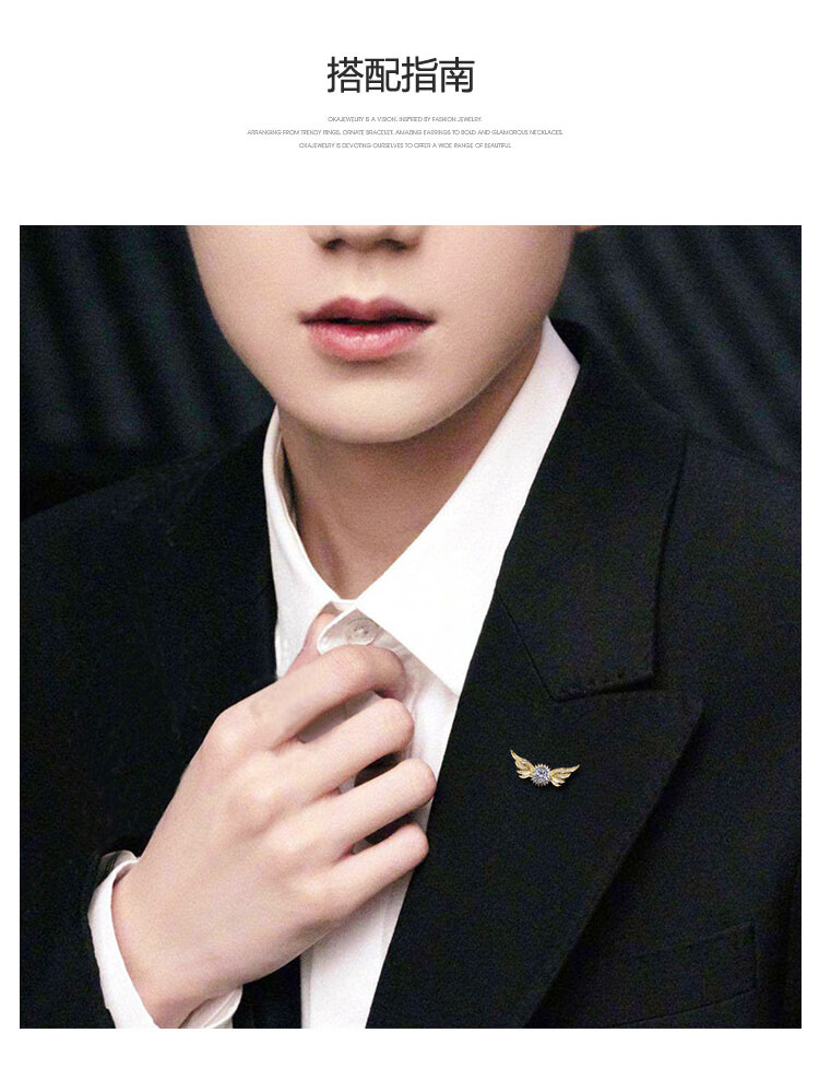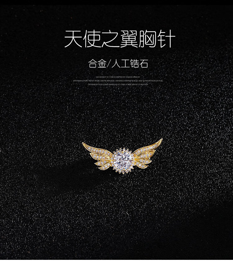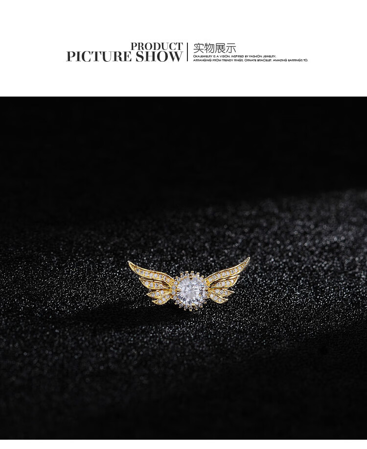 Angel Wings Men's Brooch Light Luxury High-end Corsage Simple Suit Decoration Lapel Pin Creative Pin Badge Accessories Gold One