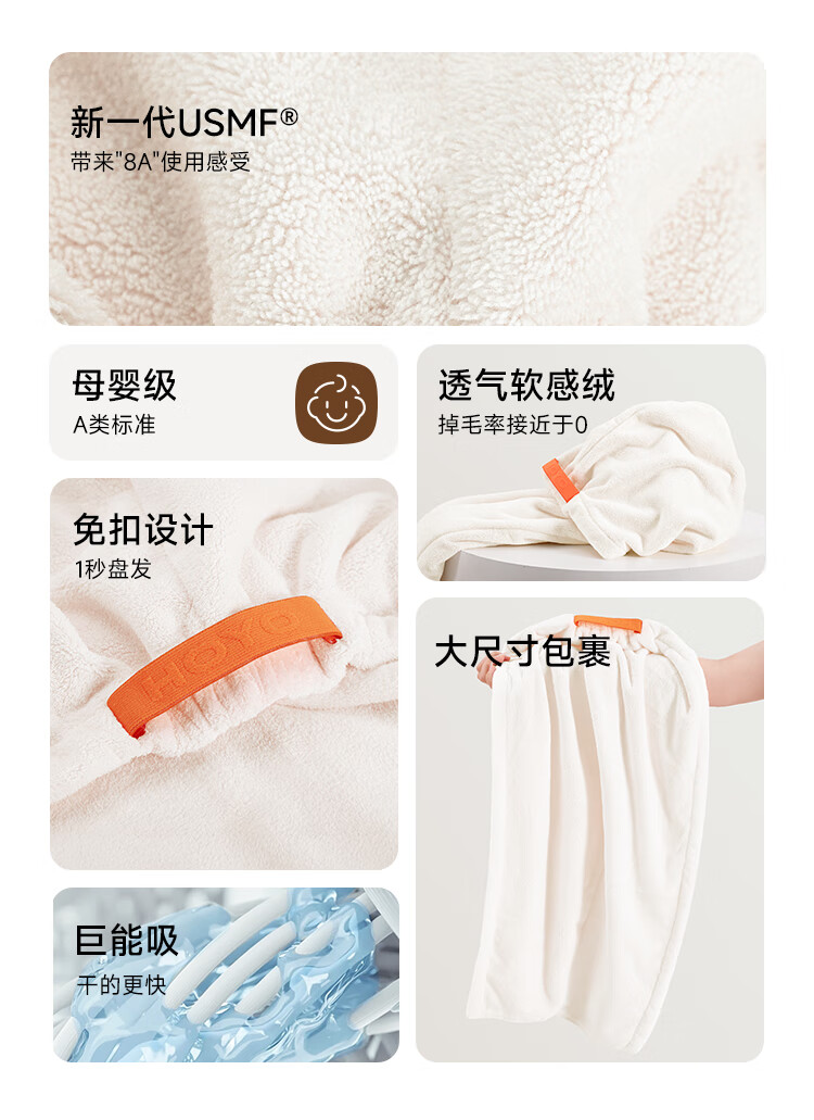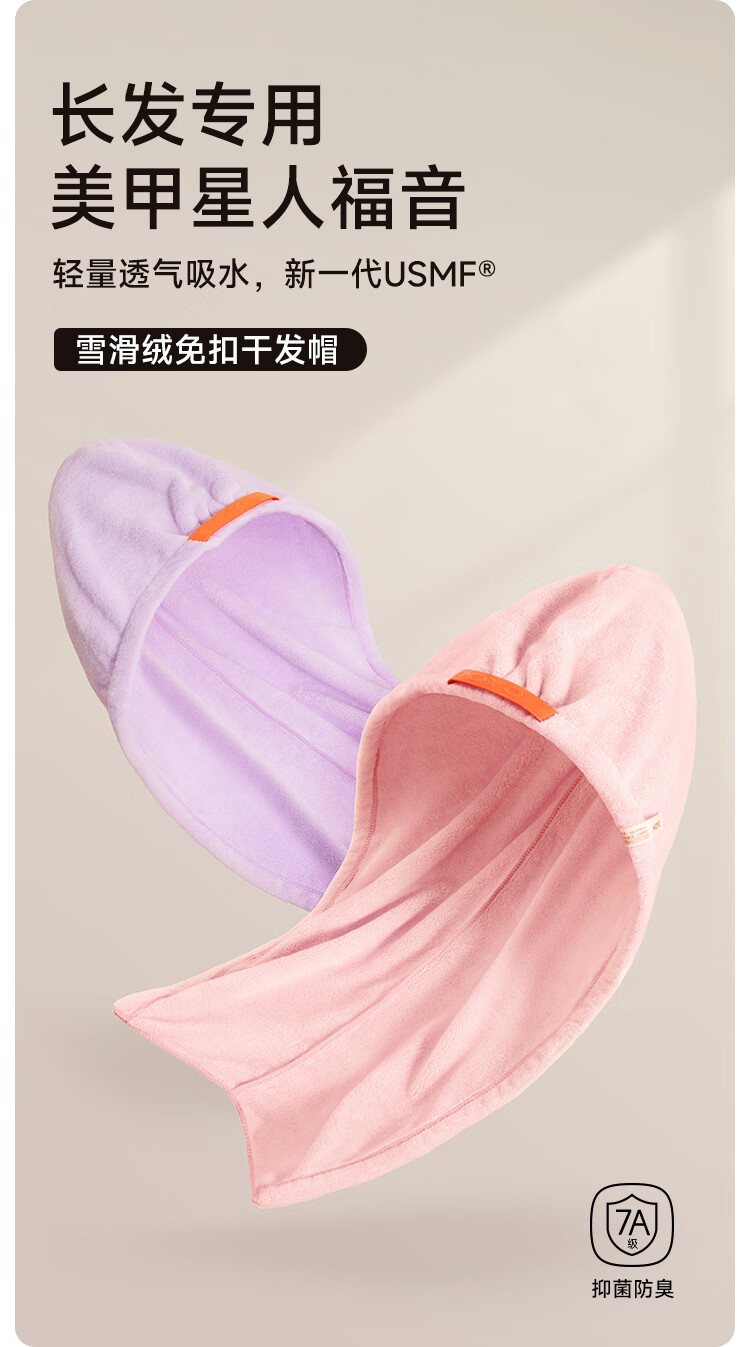 HOYO Japanese wide tail hair drying cap 7A grade antibacterial, thickened, water-absorbent, quick-drying head wipe, type A turban, head wipe towel, flower fairy purple, maternal and infant grade, type A + super absorbent