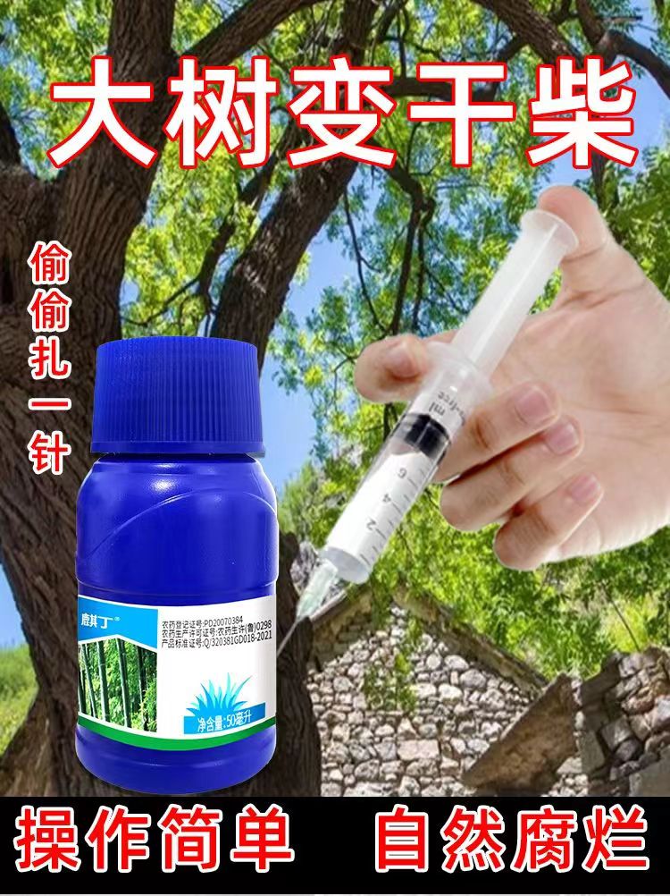 Cyclazinone aqueous agent is used to remove rotten roots of large trees in one shot. It is a special quick-drying and rotten root cleaning herbicide for obstructed trees. 100ml comes with syringe + 2 bags of auxiliaries.