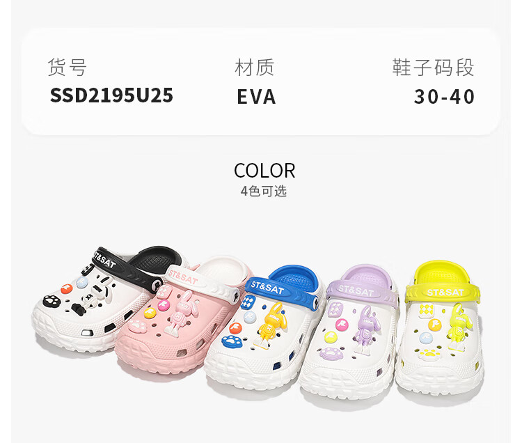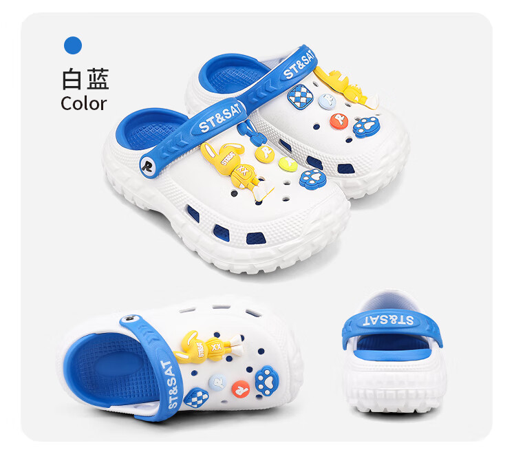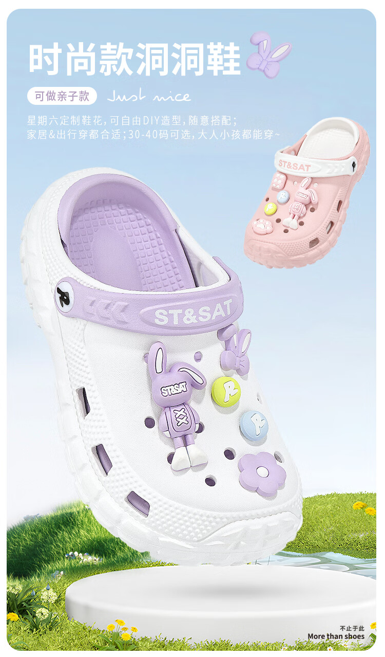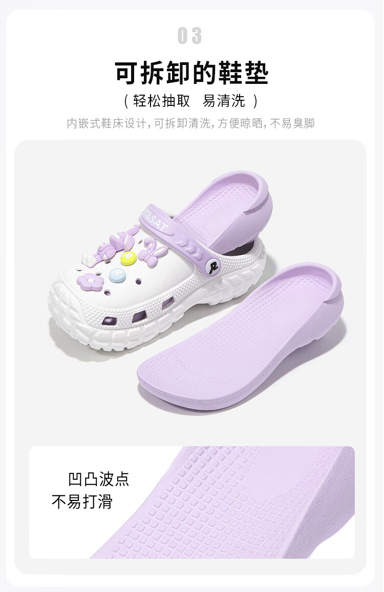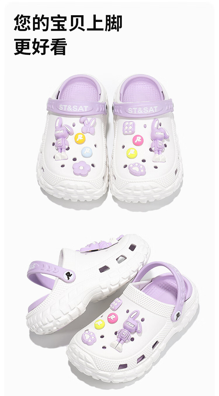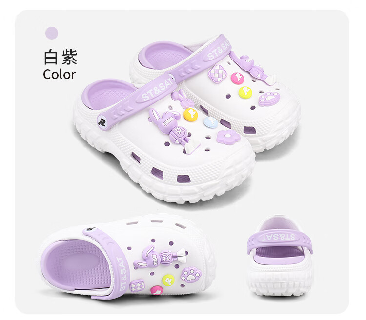 Saturday (St&Sat) children's shoes, children's clogs, new summer girls' sports sandals, boys' beach slippers, white and purple, sizes 35-36 (suitable for feet 22.2cm long)