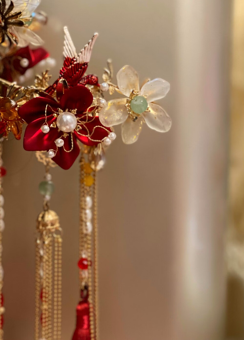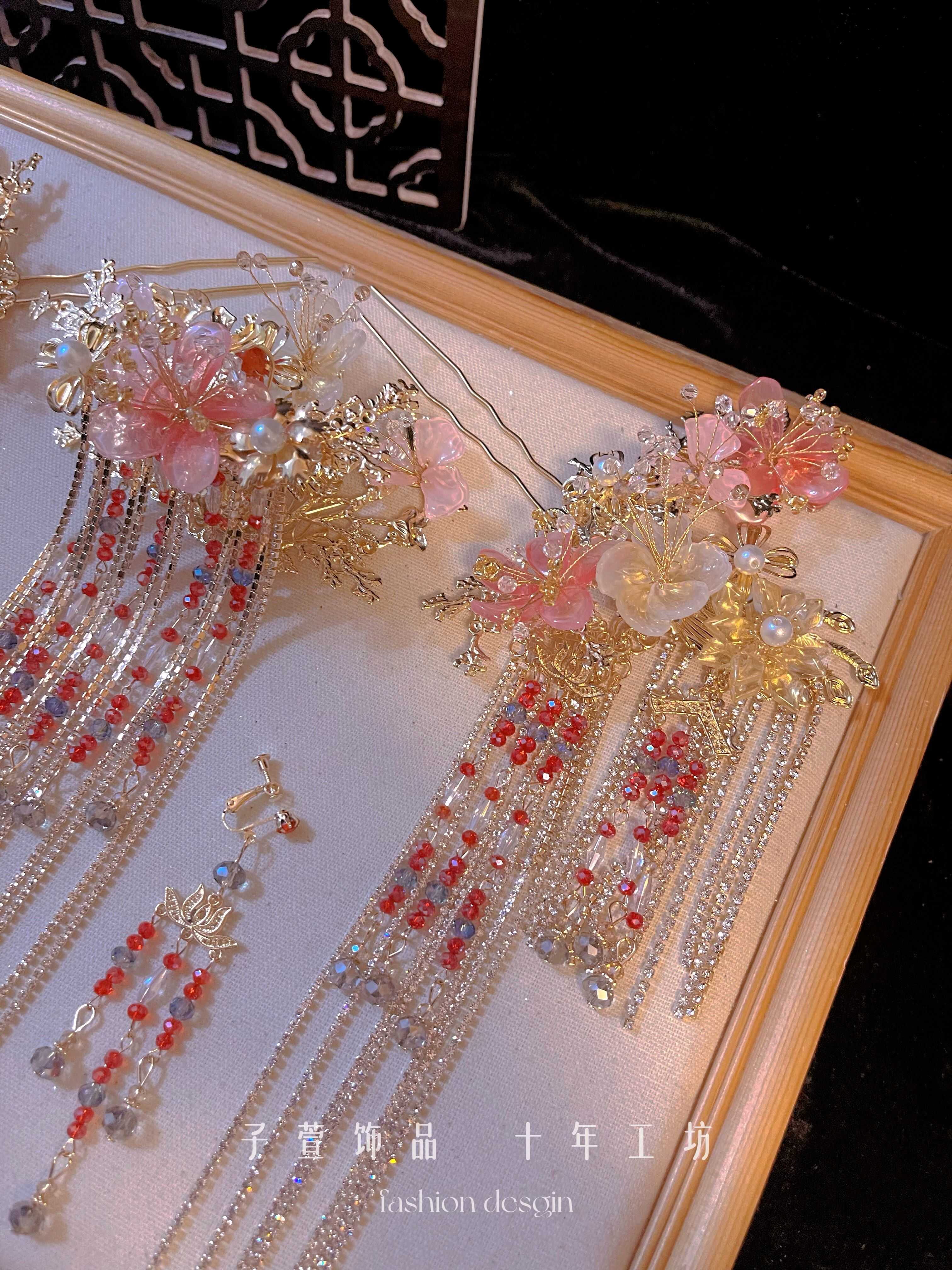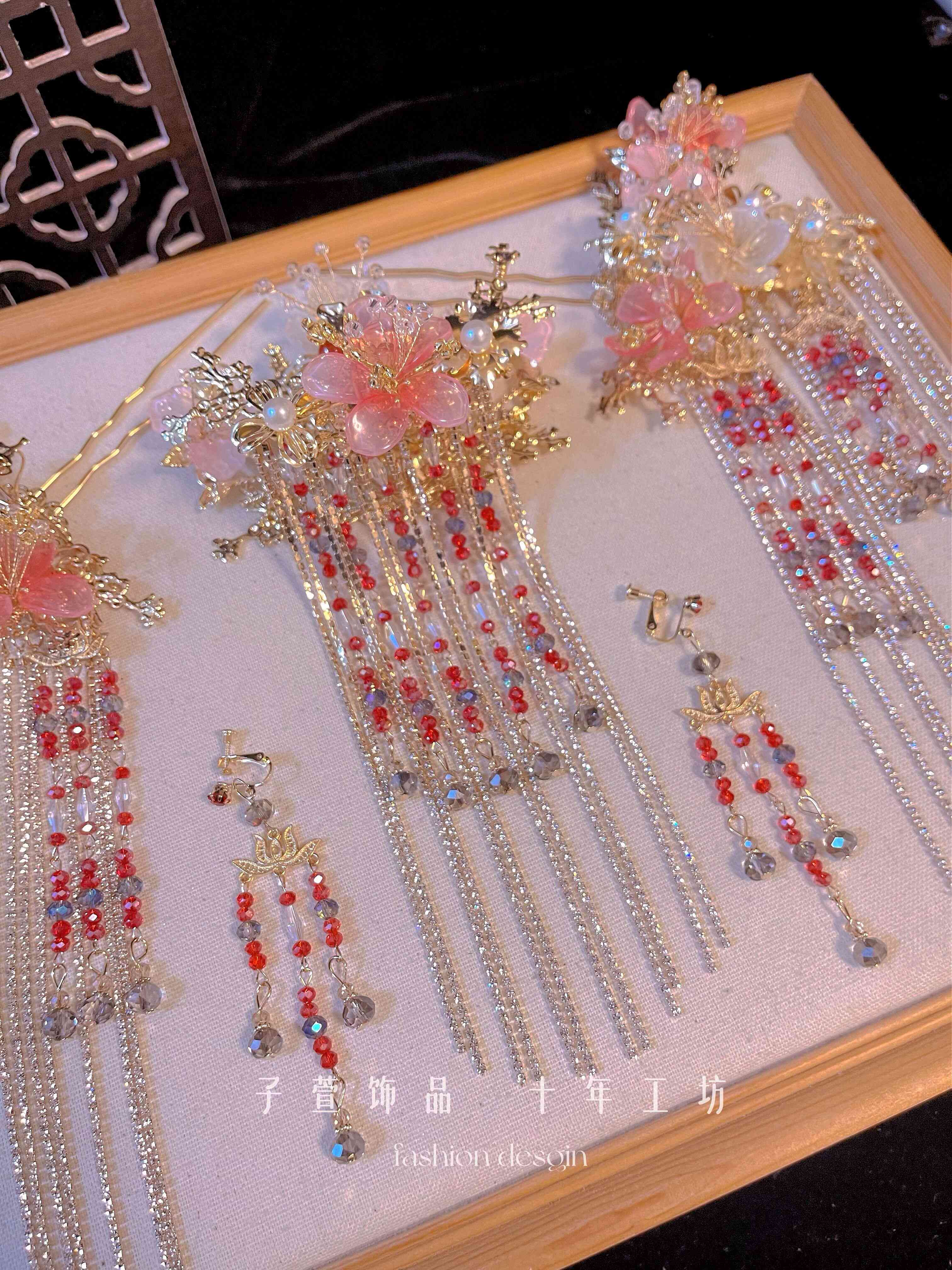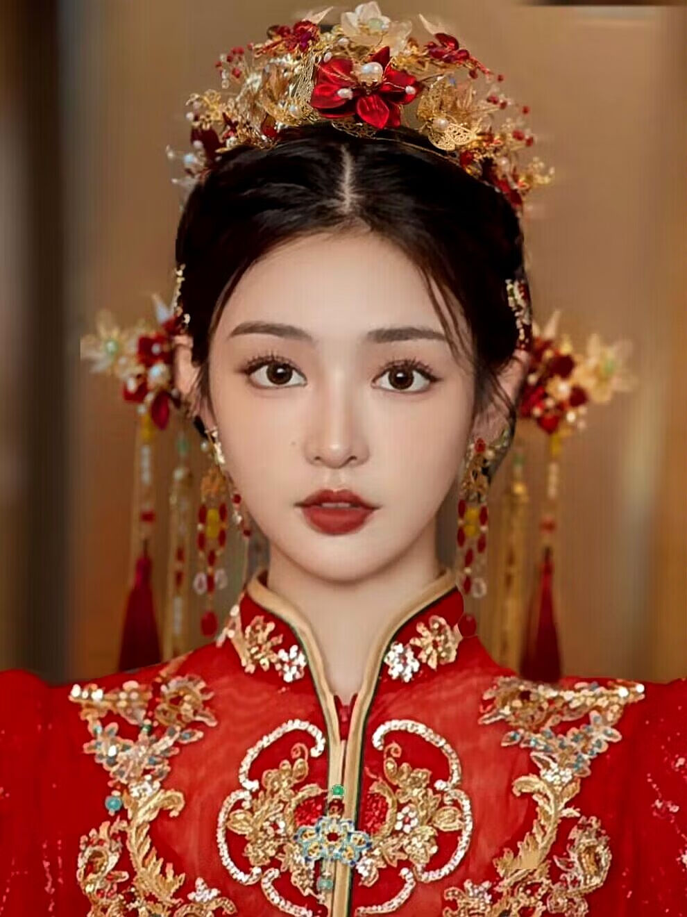 Chishe Xiuhe clothing headdress Chinese style bridal phoenix crown 2025 new red bow glazed hair crown ancient style wedding hair accessories C main crown + back area + hairpin + earrings gift box