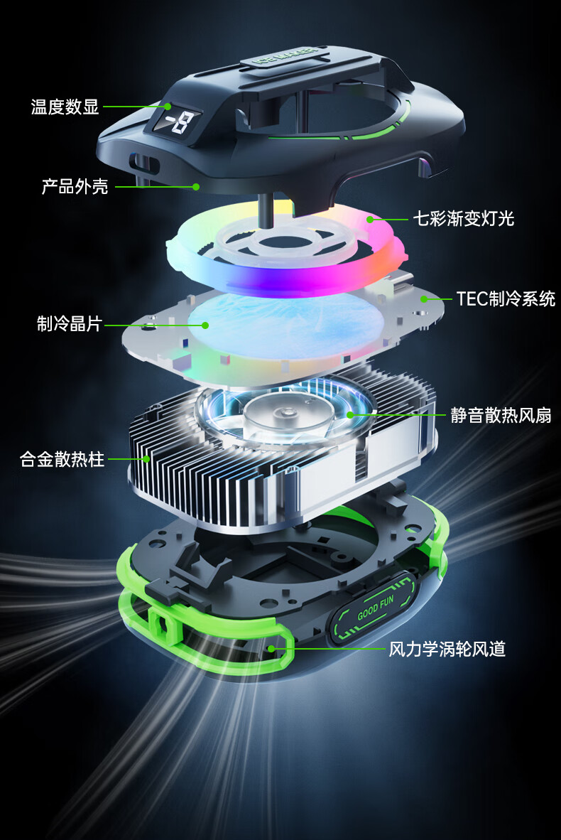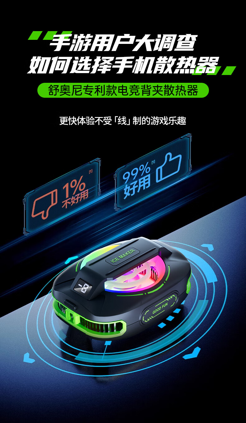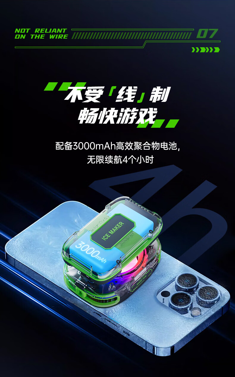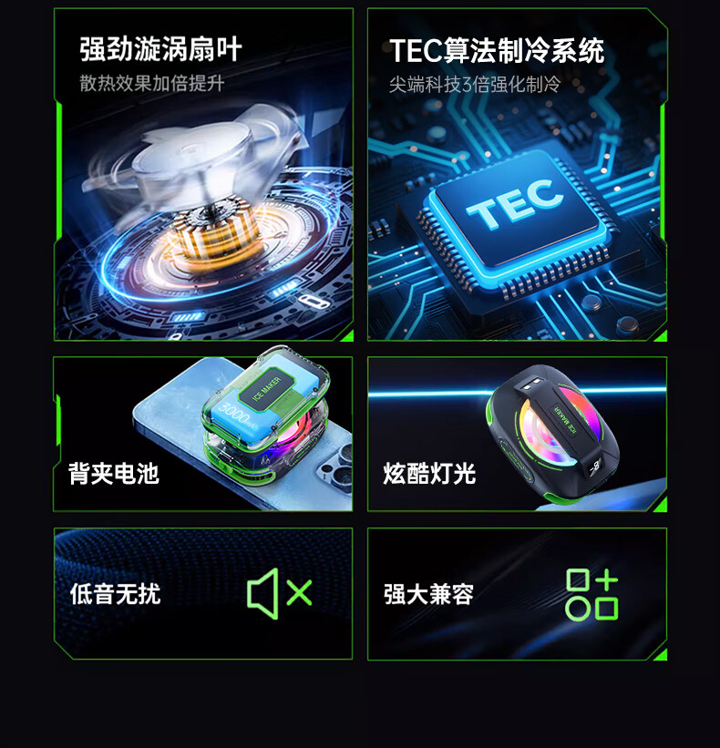 Shuoni External Battery丨E-Sports Grade Mobile Phone Radiator Magnetic Wireless Semiconductor Refrigeration Game Live Cooling Unplugged Suitable for Apple IQOO Xiaomi Huawei Red Magic Real Freeze丨External Battery丨Magnetic Back Clip Dual-Purpose 3000MAH