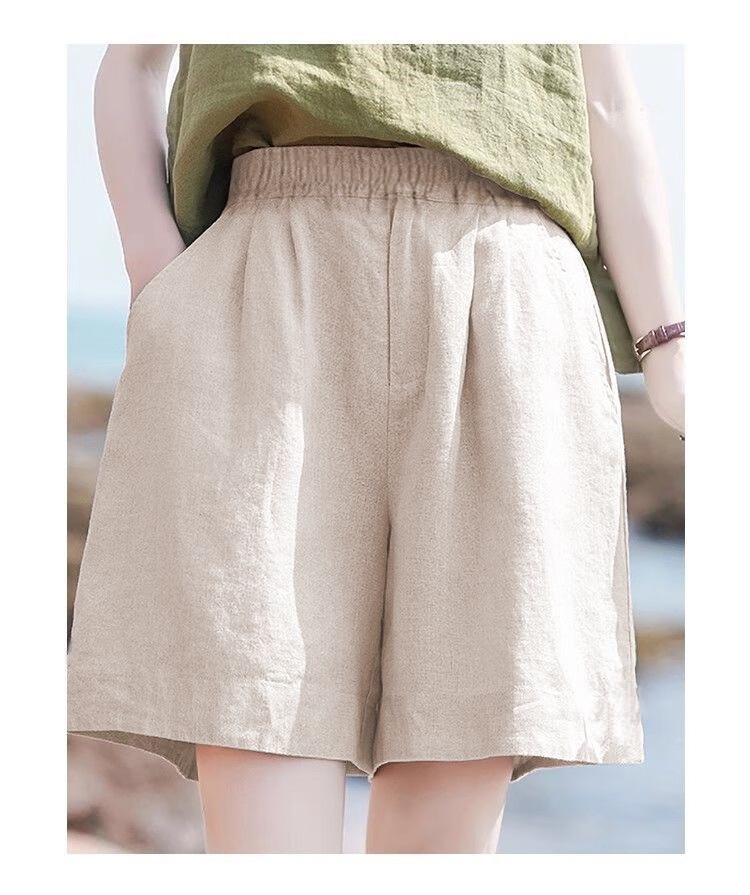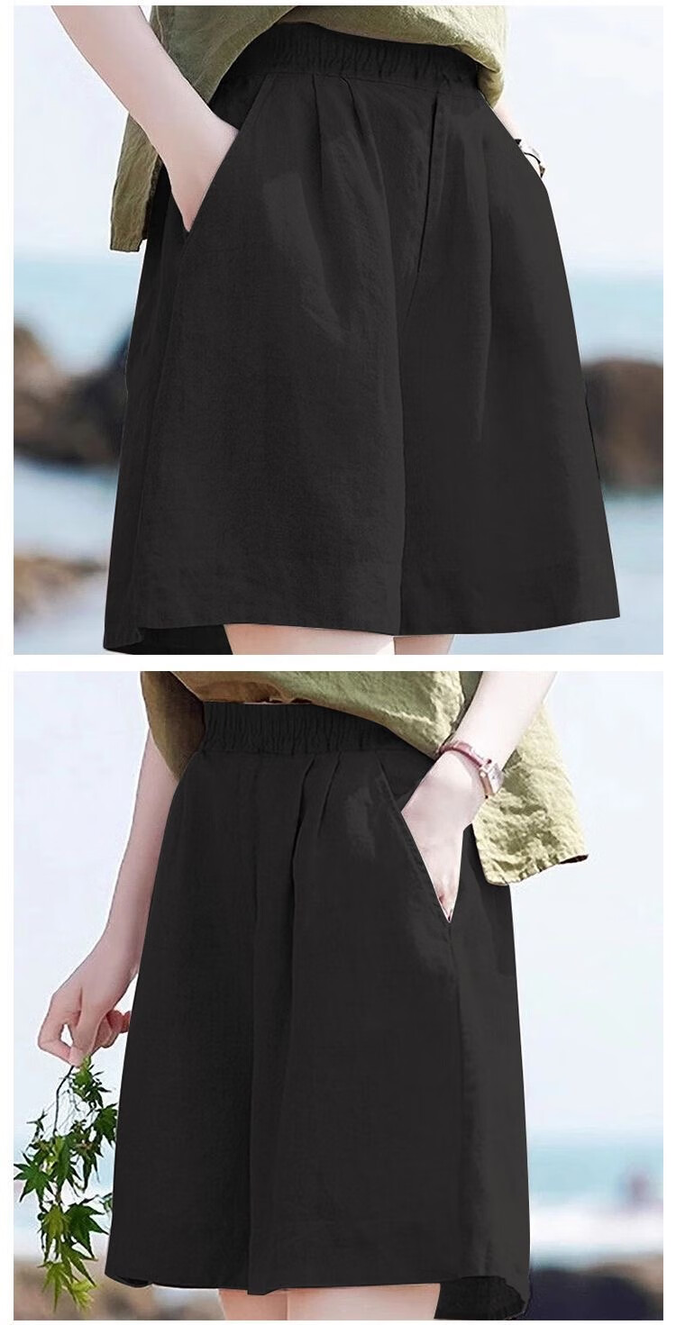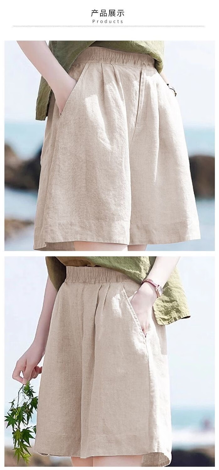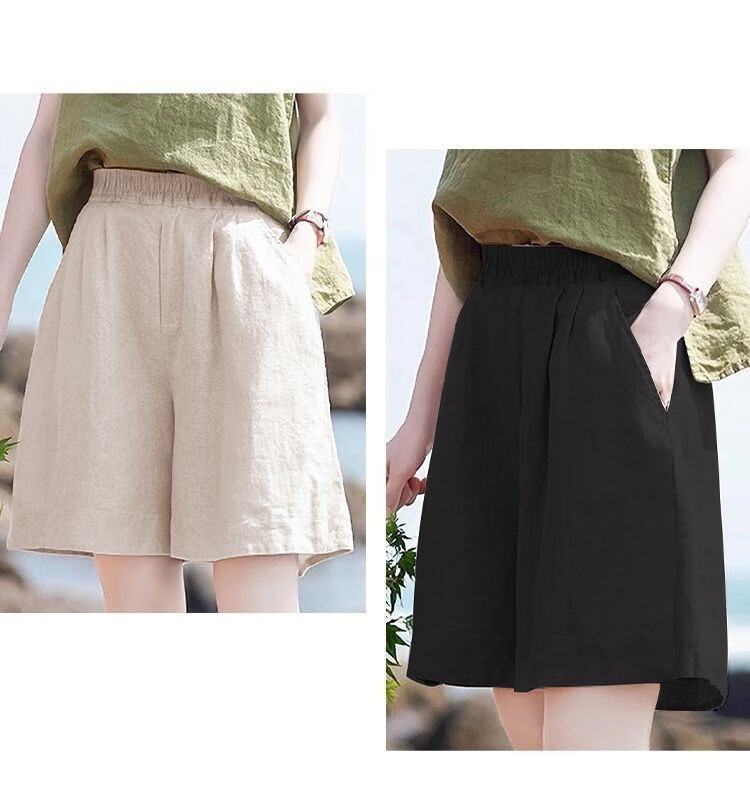 Summer elastic high-waisted linen five-quarter pants loose retro casual shorts cotton and linen slimming high-pocket women's pants black XL recommended 120-130Jin Jin equals 0.5 kg