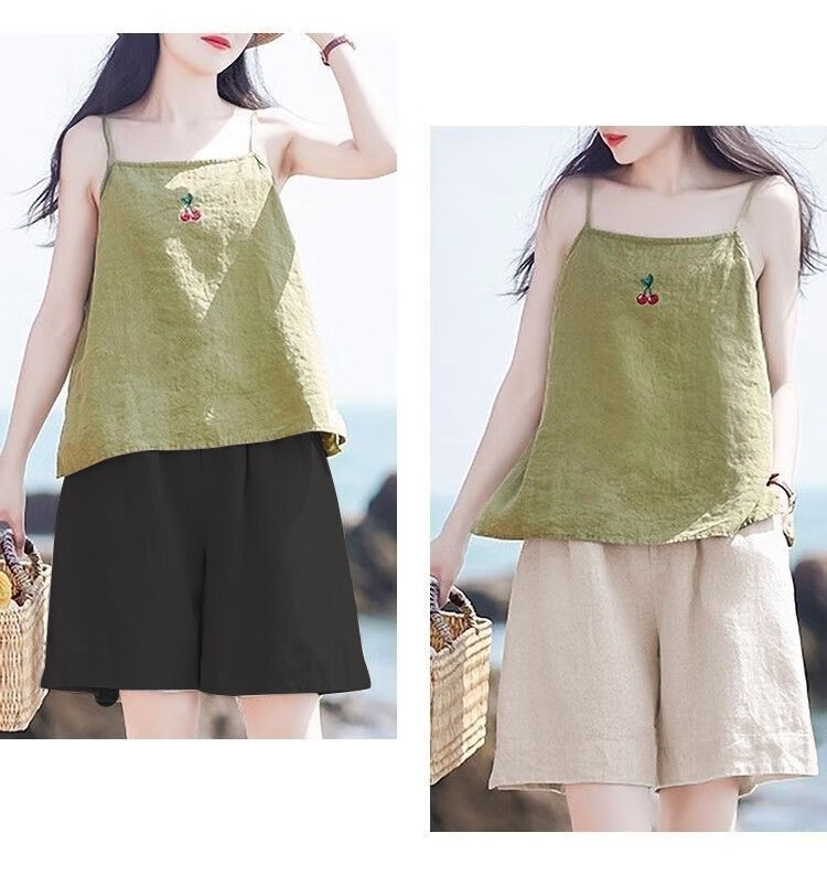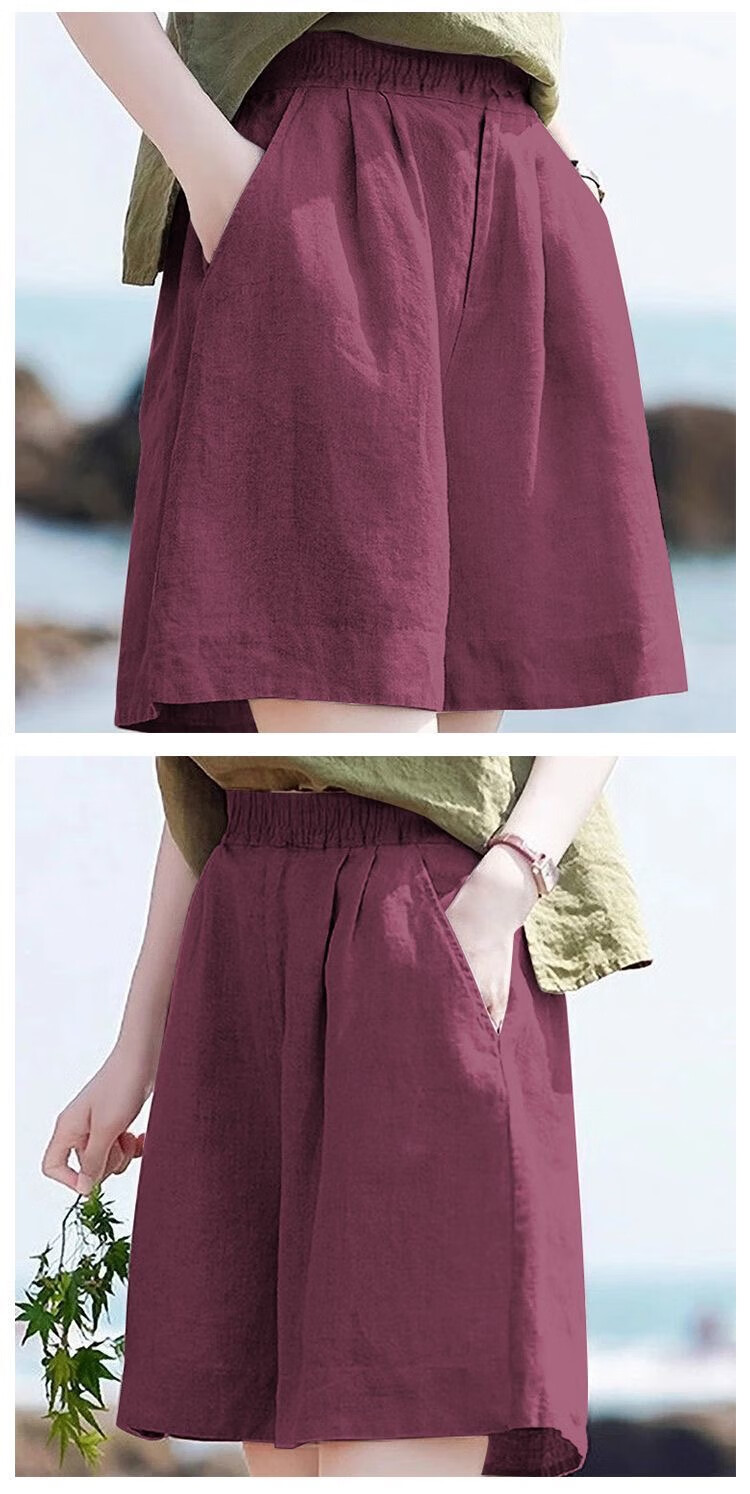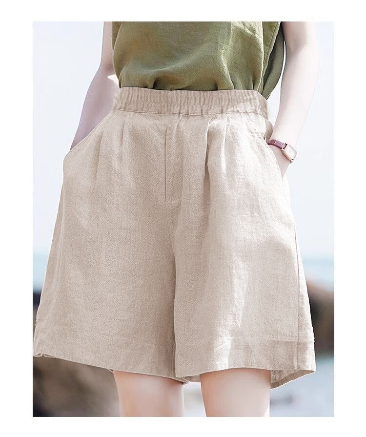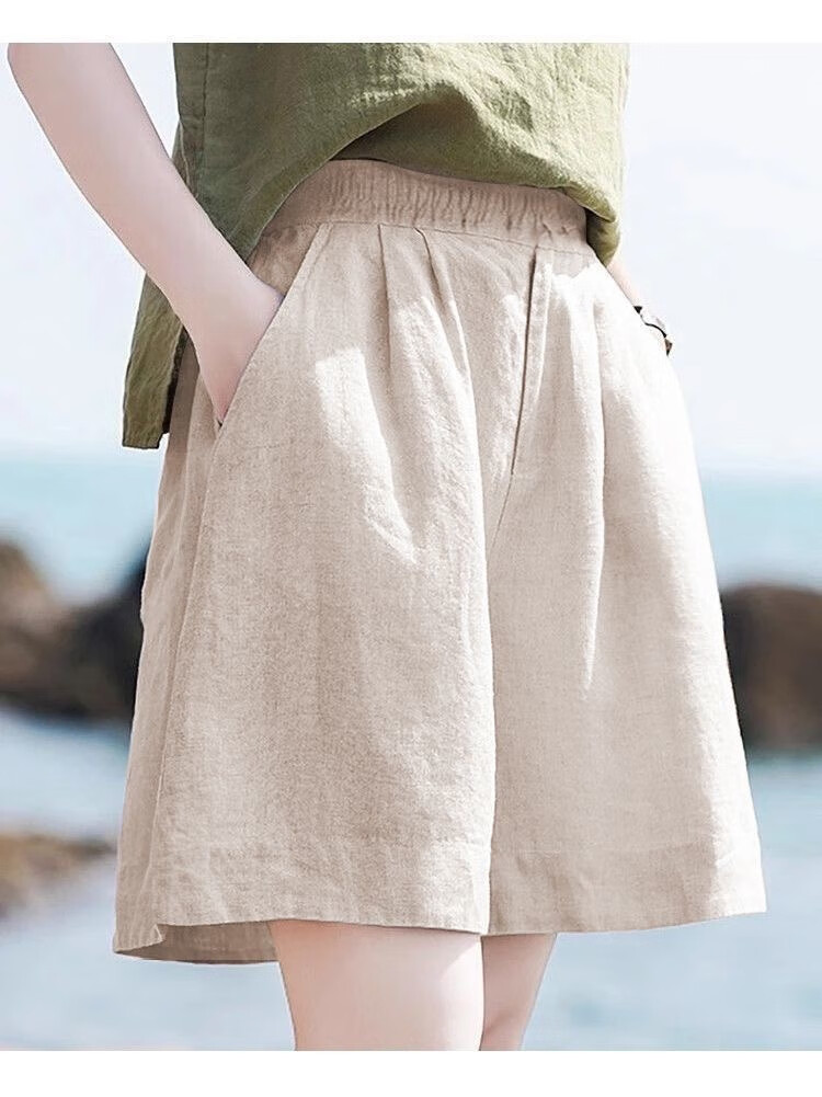 Summer elastic high-waisted linen five-quarter pants loose retro casual shorts cotton and linen slimming high-pocket women's pants black XL recommended 120-130Jin Jin equals 0.5 kg