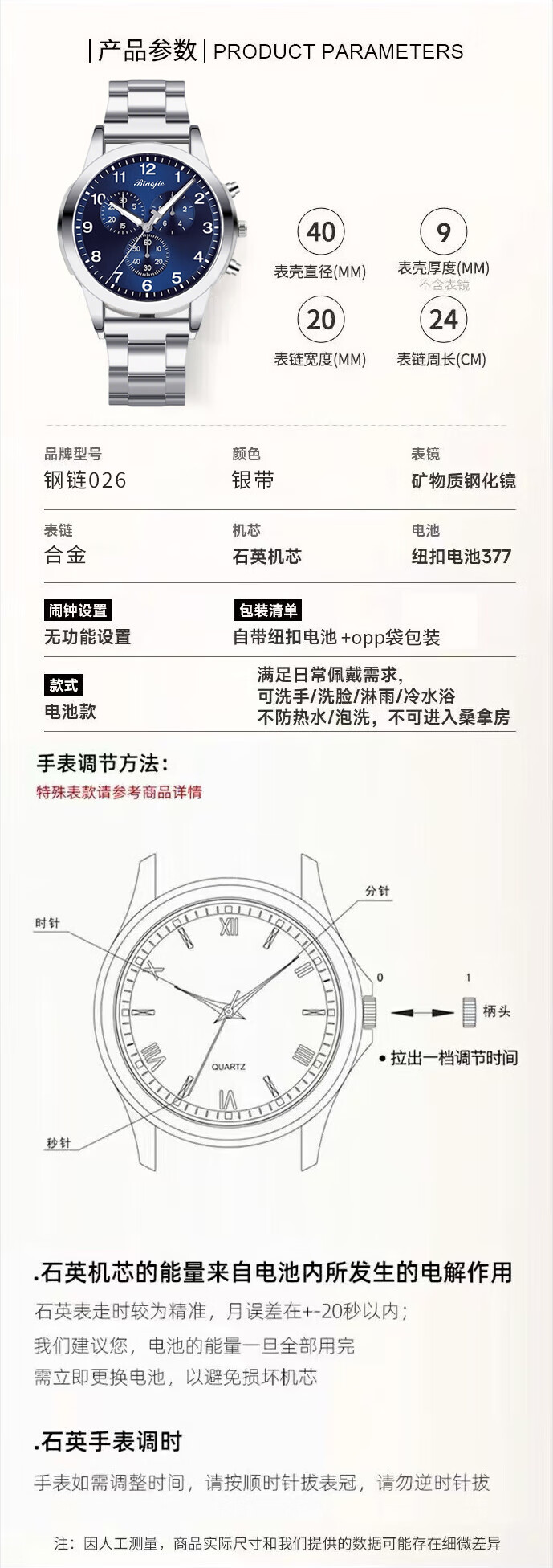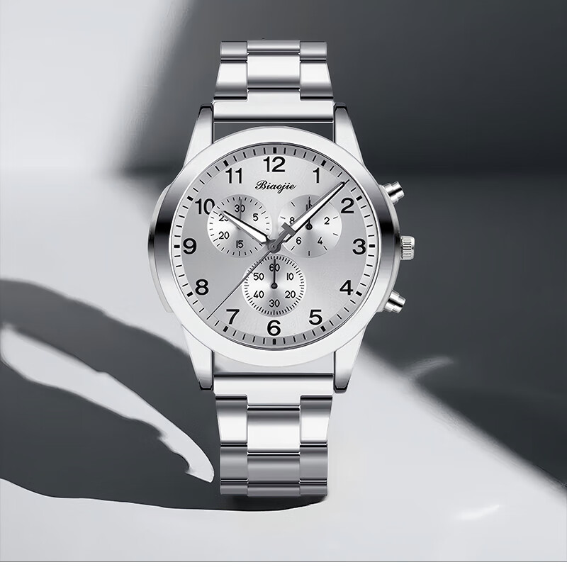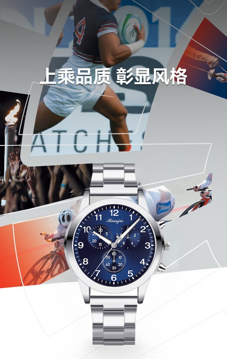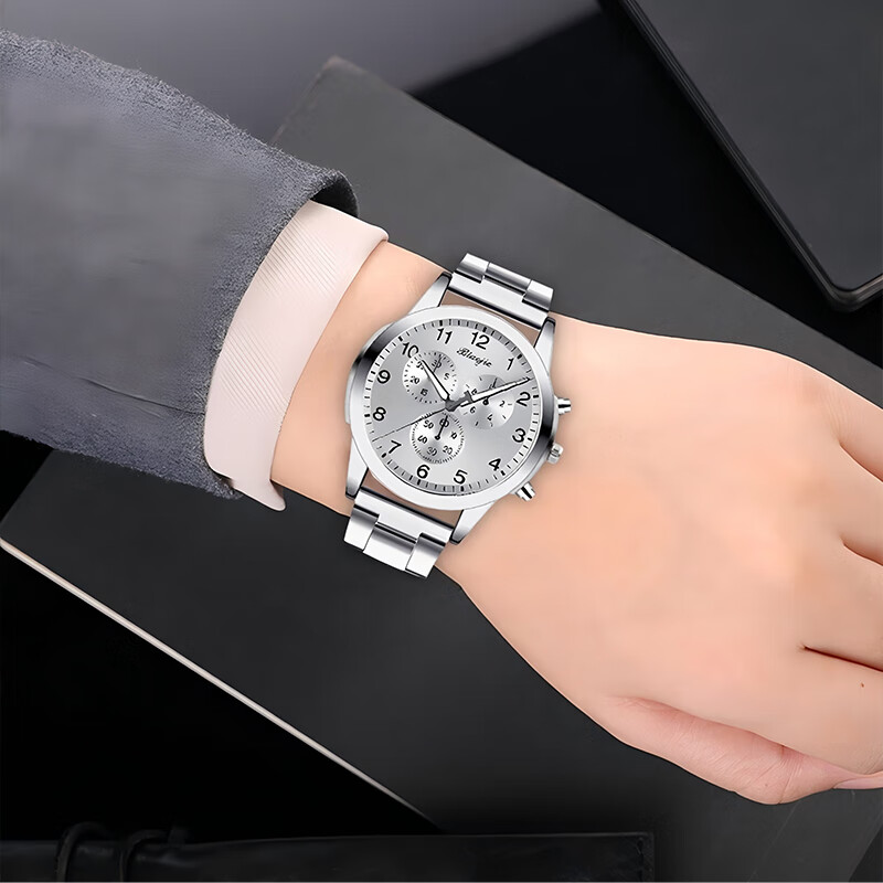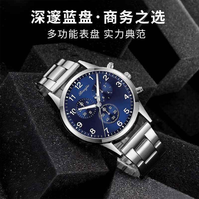 Men's Fashion Business Watch Three-hand Digital Scale Dial Trendy Steel Strap Youth Watch Quartz Watch Blue Watch + Adjuster