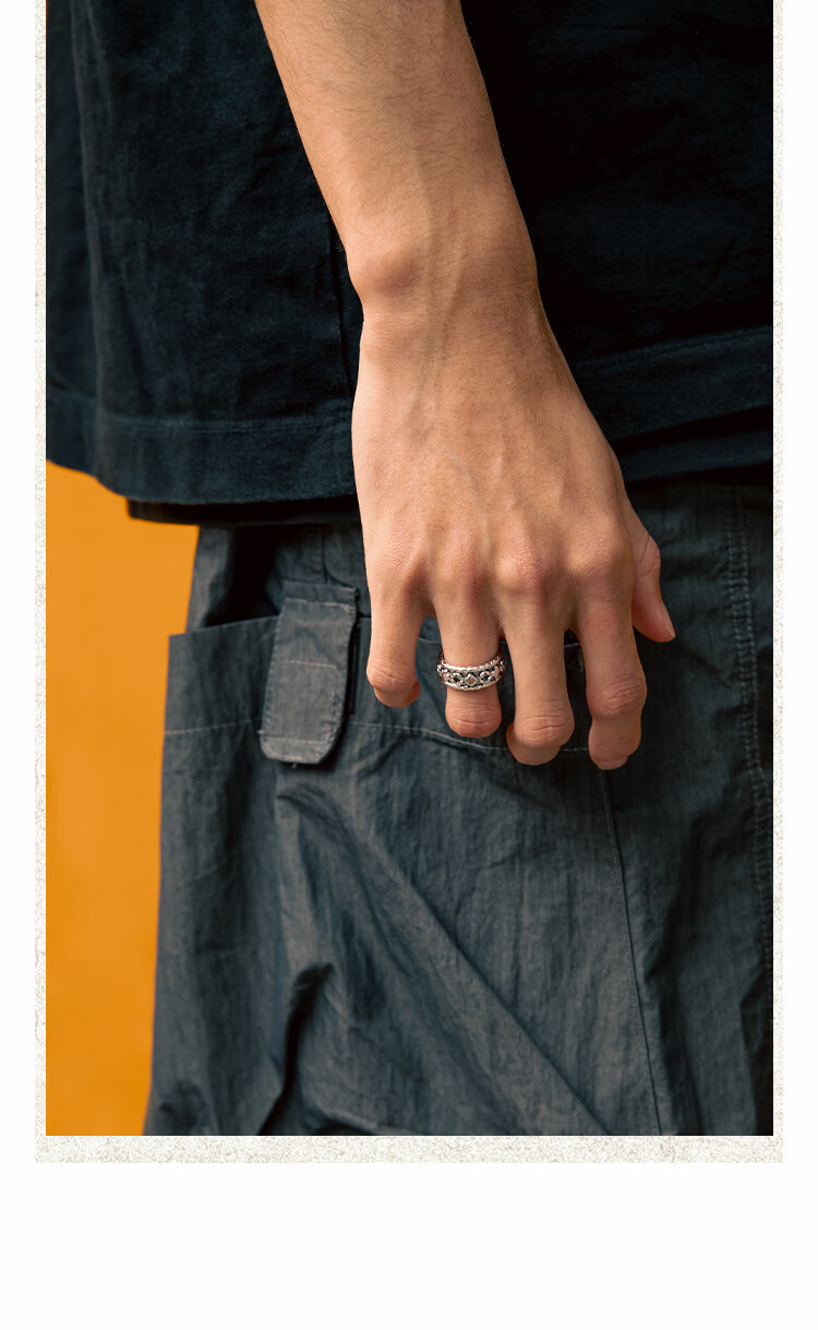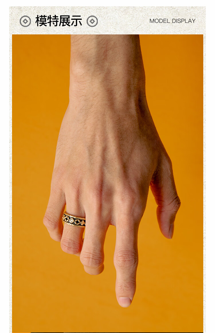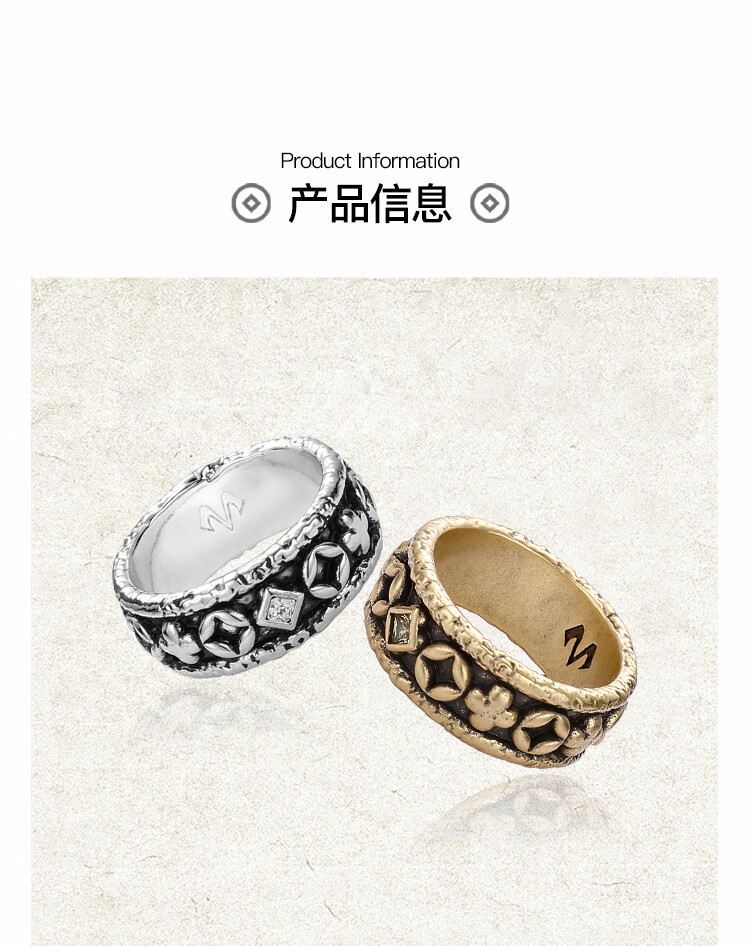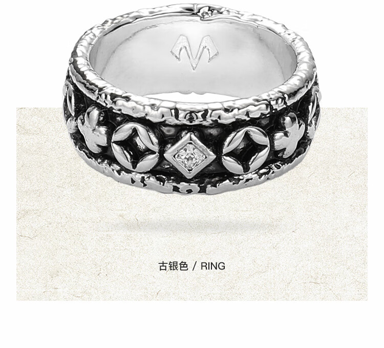 BABAMA Wuxing Series Rich Flower Double Flower Ring Men's Retro Old Copper Plated Platinum Ring Couple's Same Style Birthday Gift Ancient Gold Men's Style 59mm