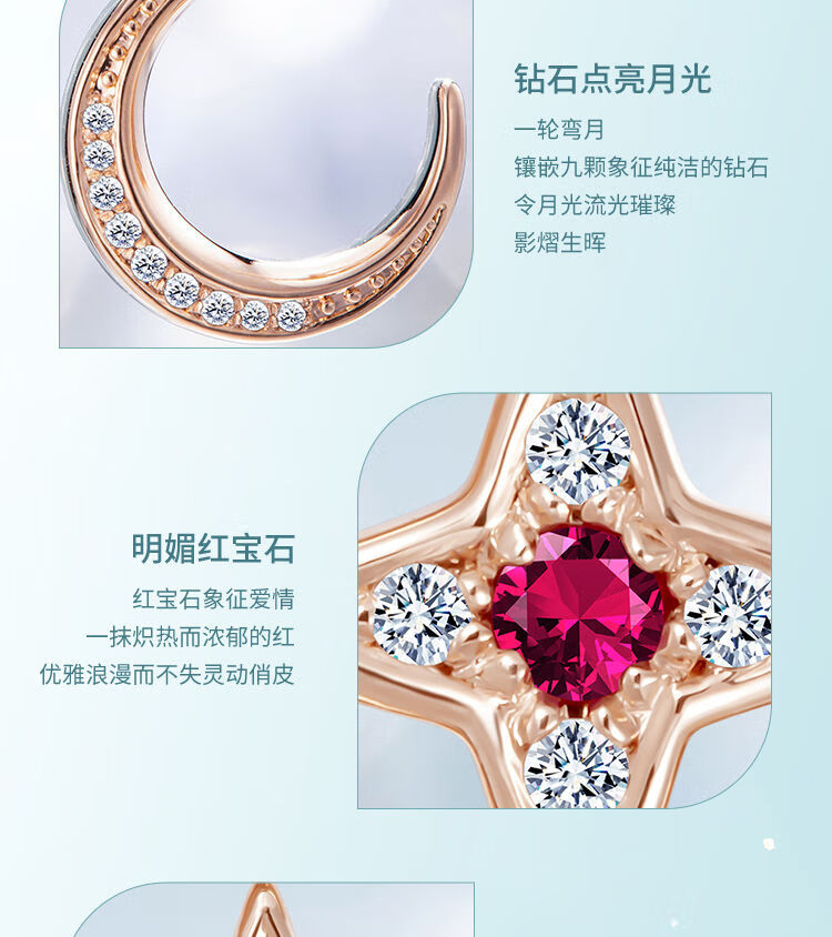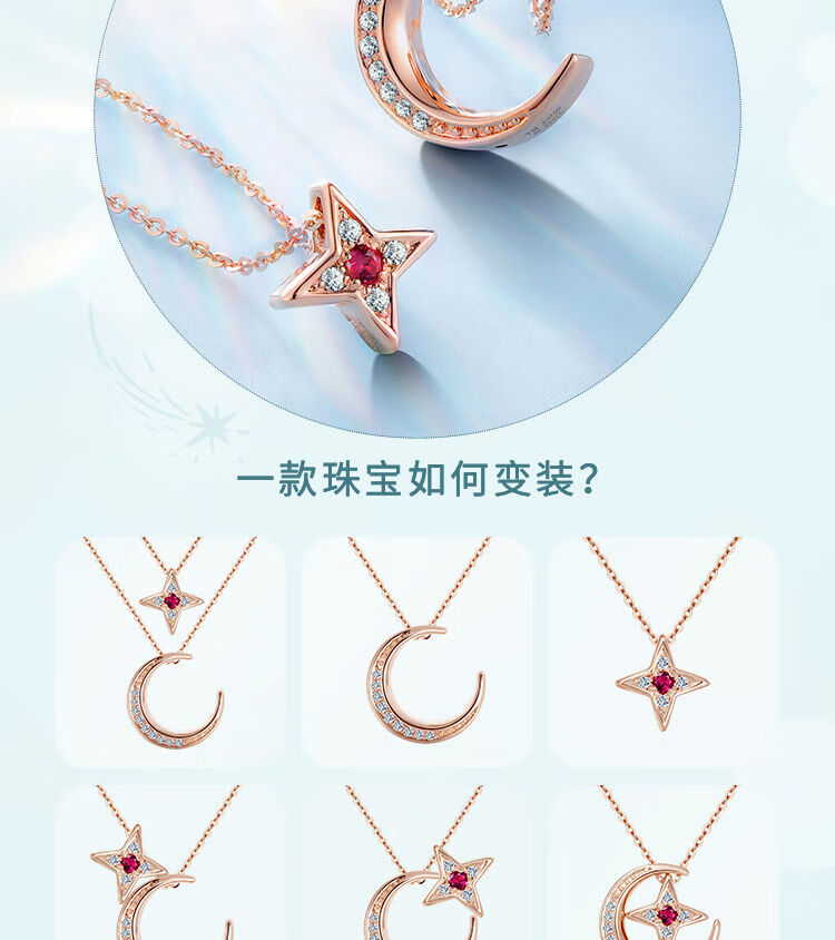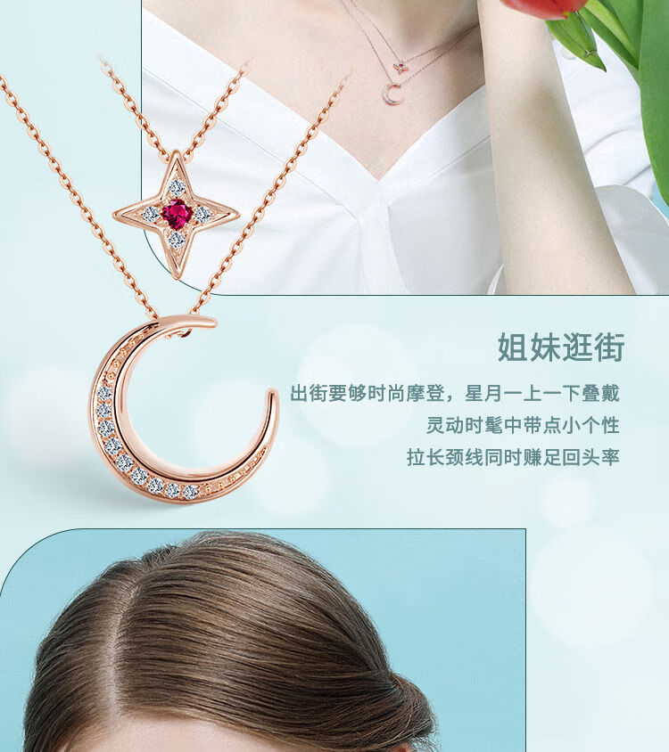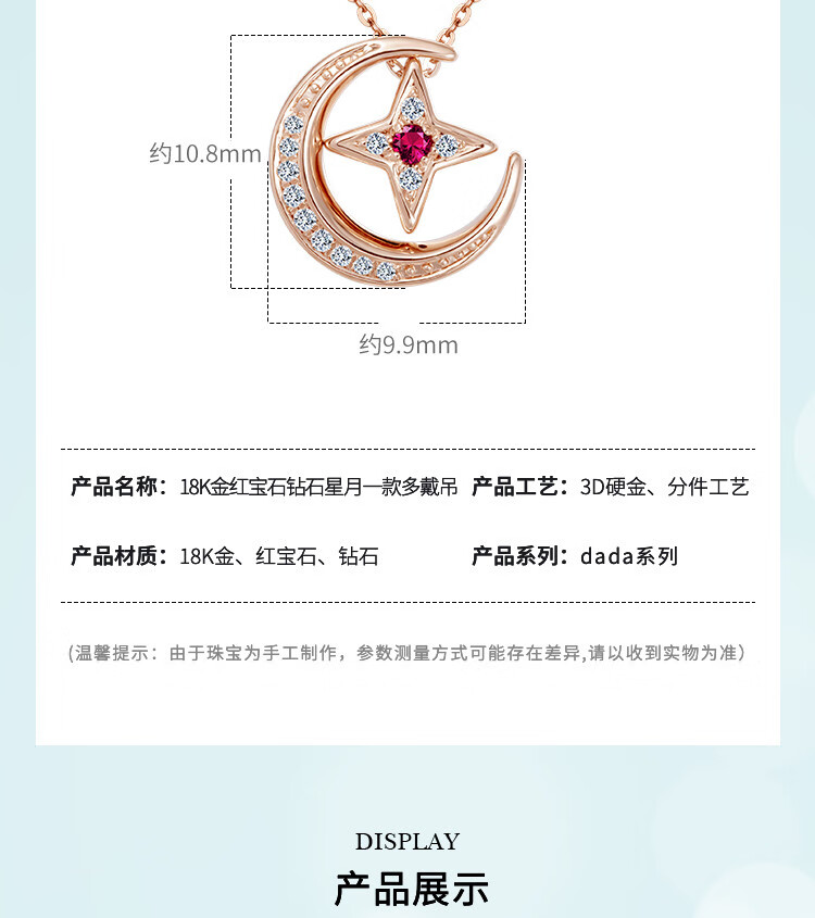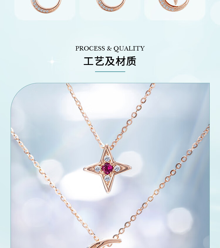 Junpo Jewelry 18K gold ruby diamond pendant fashionable sparkling star and moon necklace neck gift for girlfriend ten The total weight of the pendant is about 0.4g