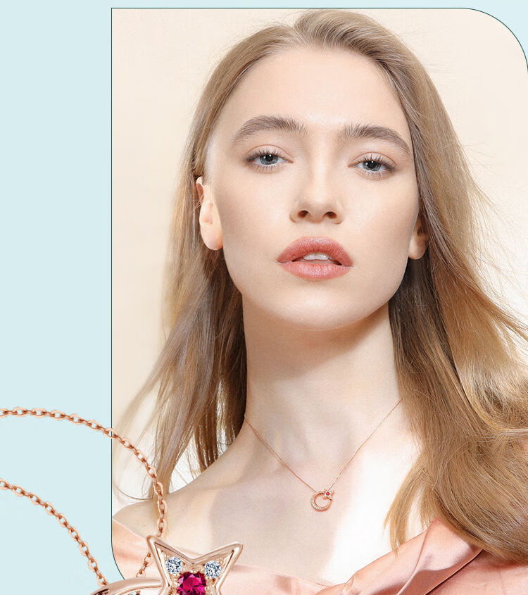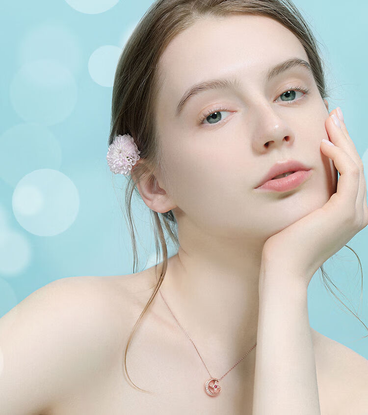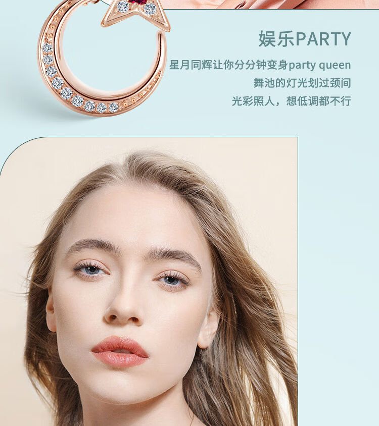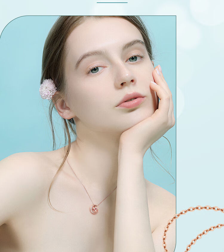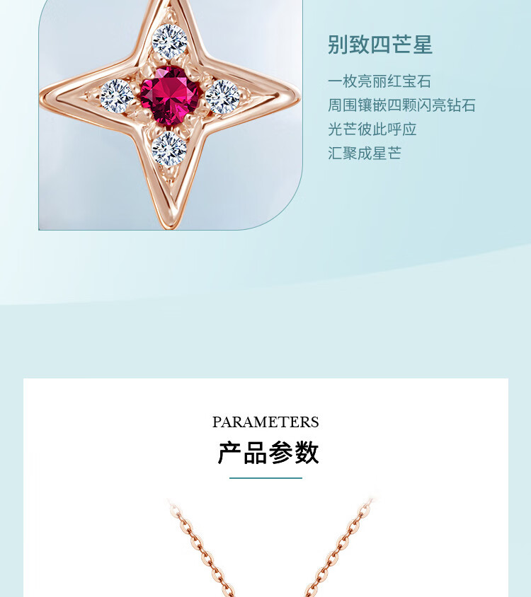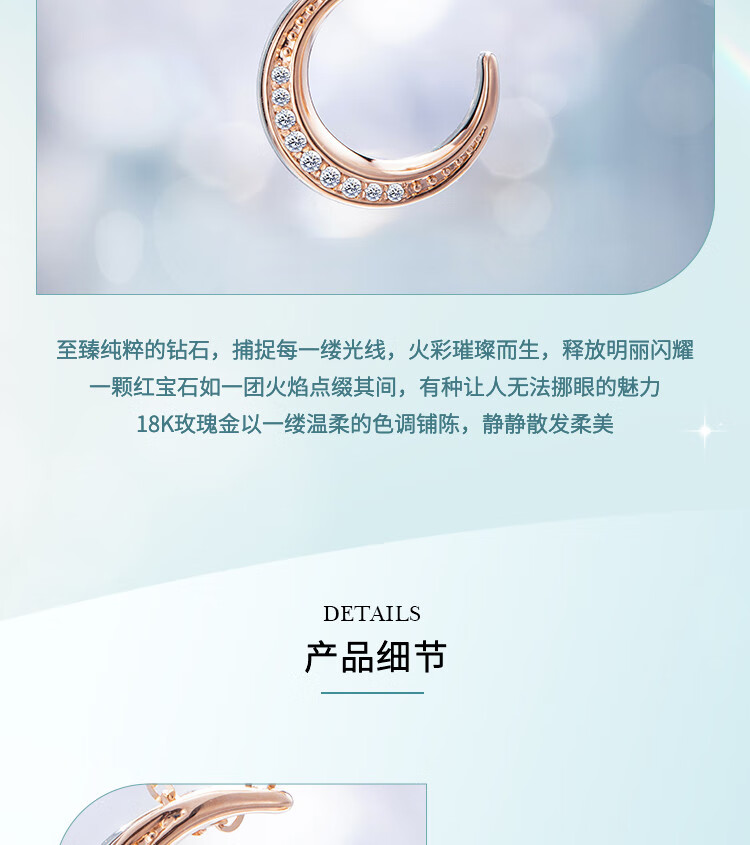 Junpo Jewelry 18K gold ruby diamond pendant fashionable sparkling star and moon necklace neck gift for girlfriend ten The total weight of the pendant is about 0.4g