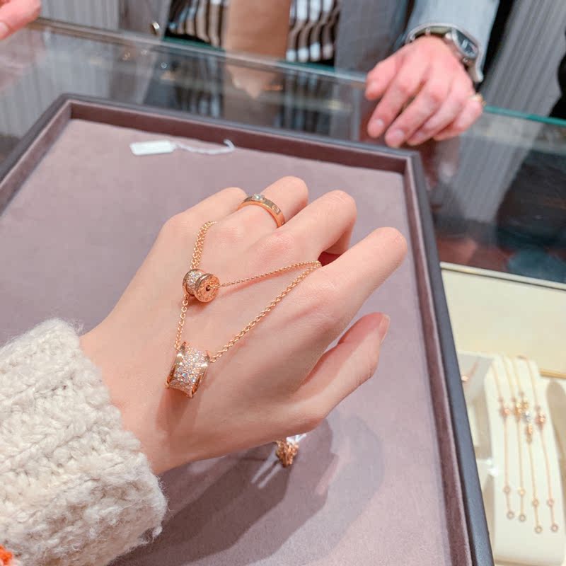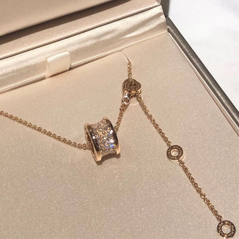 Junpo 18K gold small waist necklace for women classic rose gold full diamond platinum pendant clavicle chain rose gold small waist
