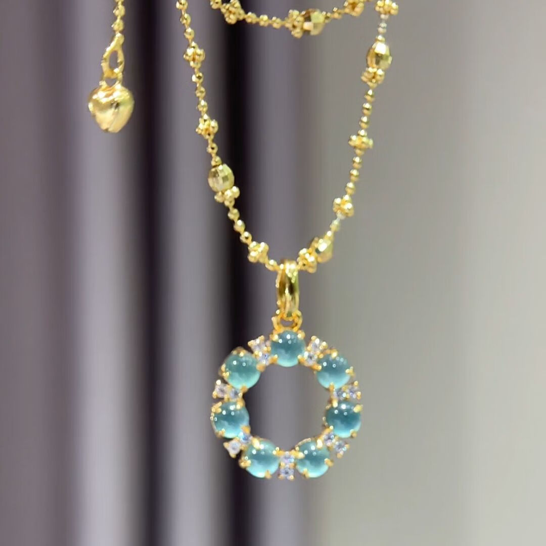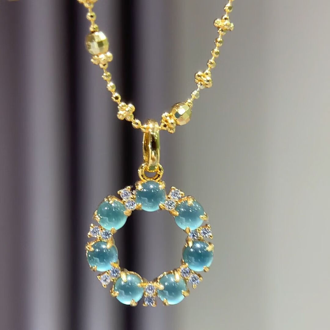 Junpo Rakkaania blue water donut necklace 18k gold inlaid pendant for women
