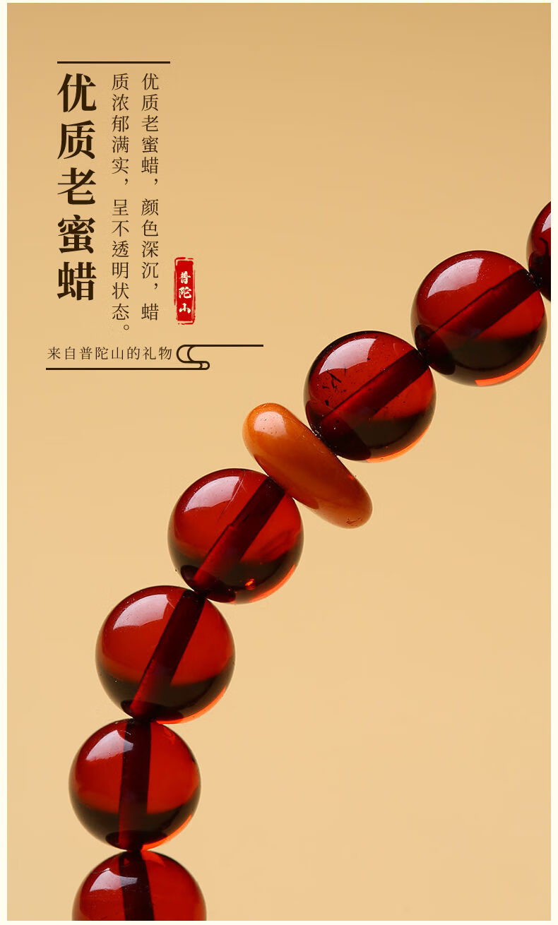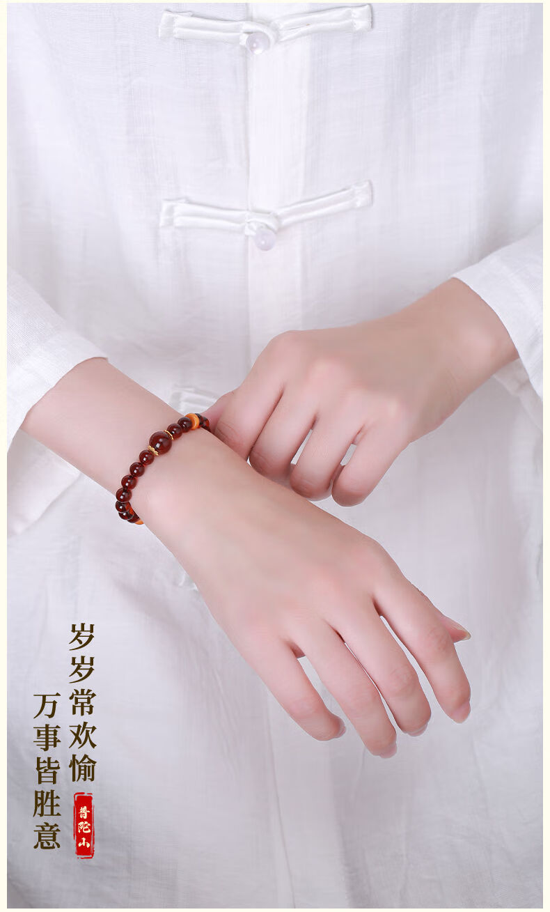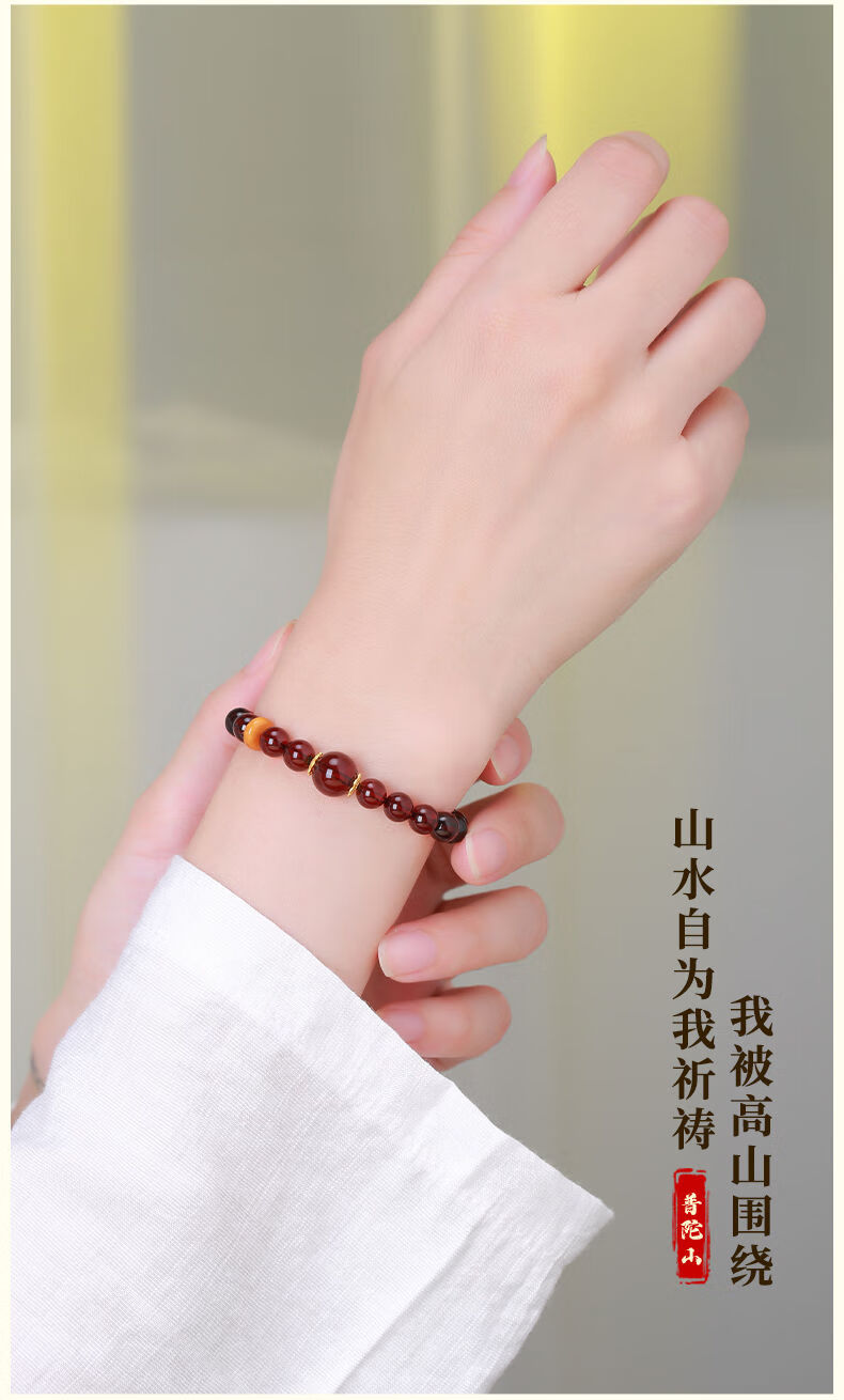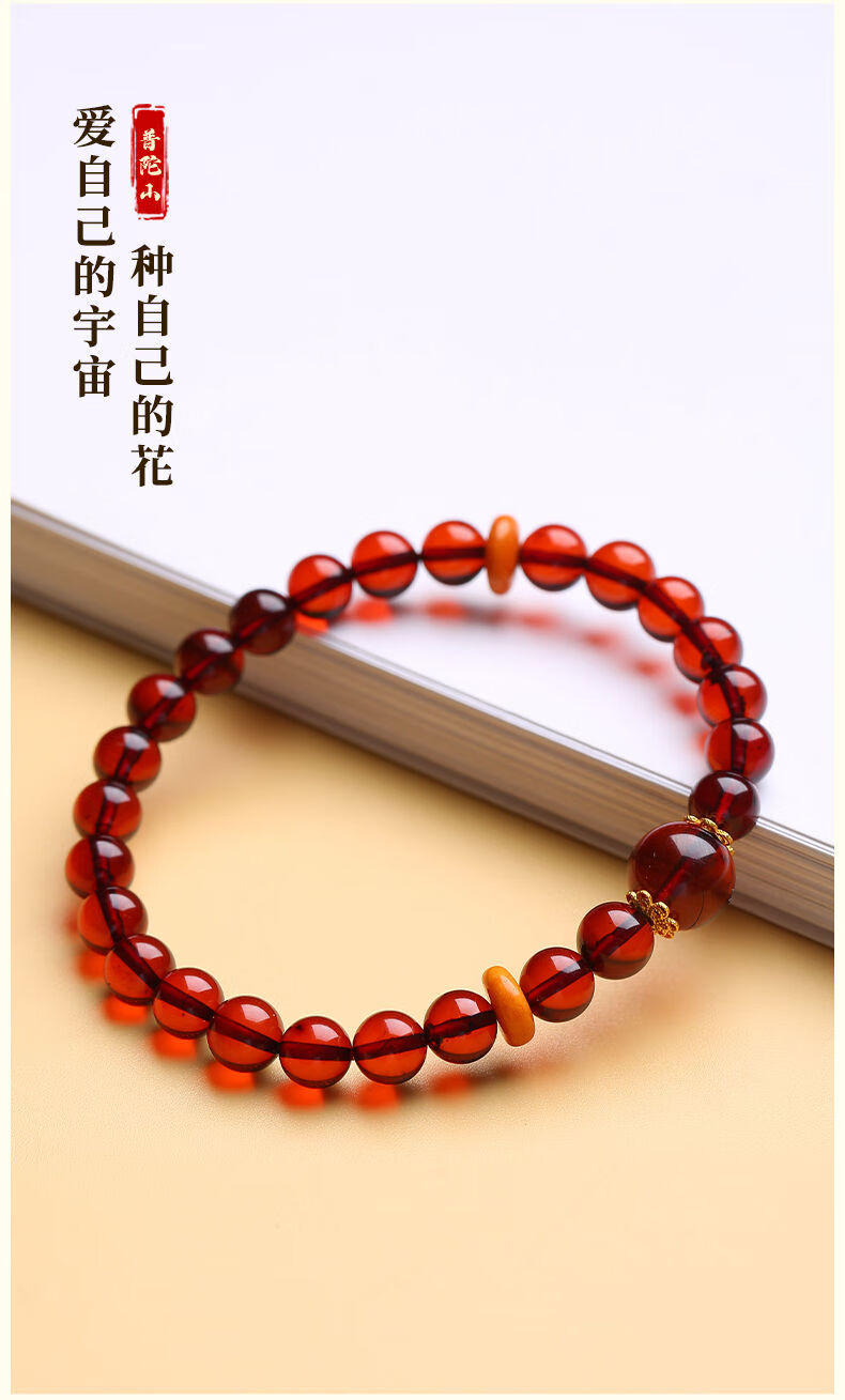 Yardige Putuo Mountain Natural Blood Amber Bracelet Wine Red Amber Buddha Beads Good Luck Beeswax Ethnic Style Bracelet Women's Original Beads Blood Amber Bracelet - Bead Diameter About 6mm