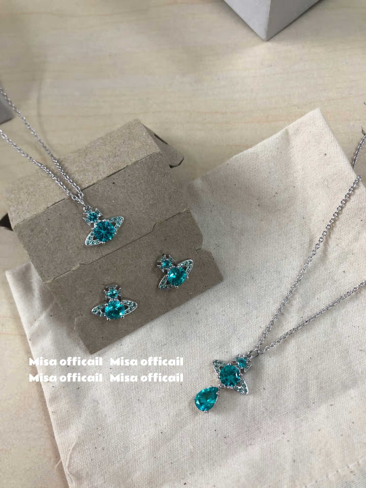 Yadige design emerald new color mermaid tears saturn zircon necklace earrings for women light luxury high-end emerald single diamond saturn earrings