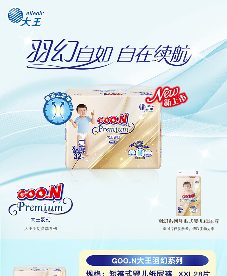 Dawang (GOO.N) Feather Fantasy Series Baby Friendly Room Special Offer Baby Diaper Pull-up Pants Lightweight Breathable Multiple Sizes 3XL 1 Pack 24 Pieces Pull-up Pants 18-35kg