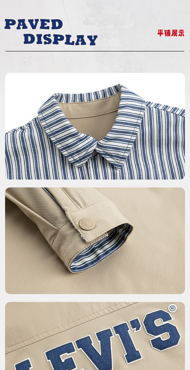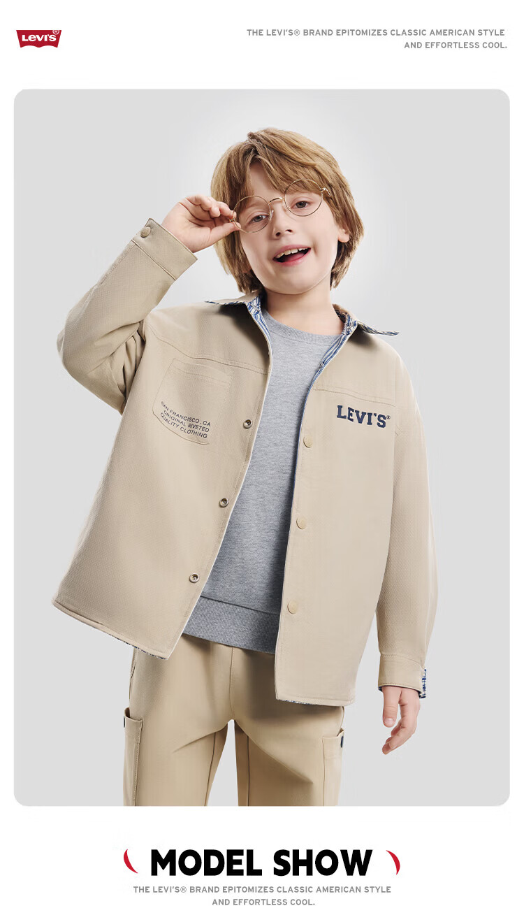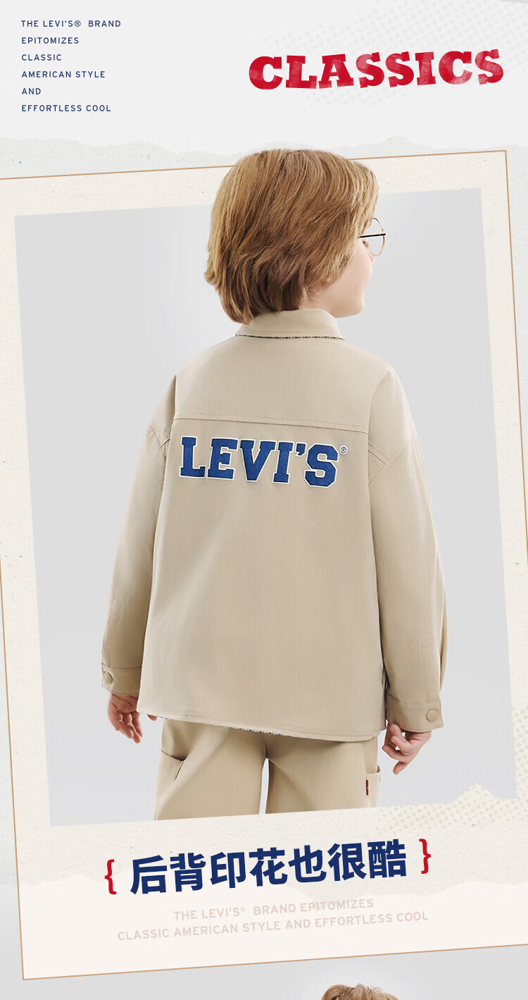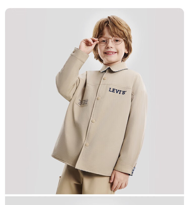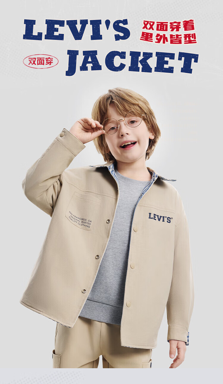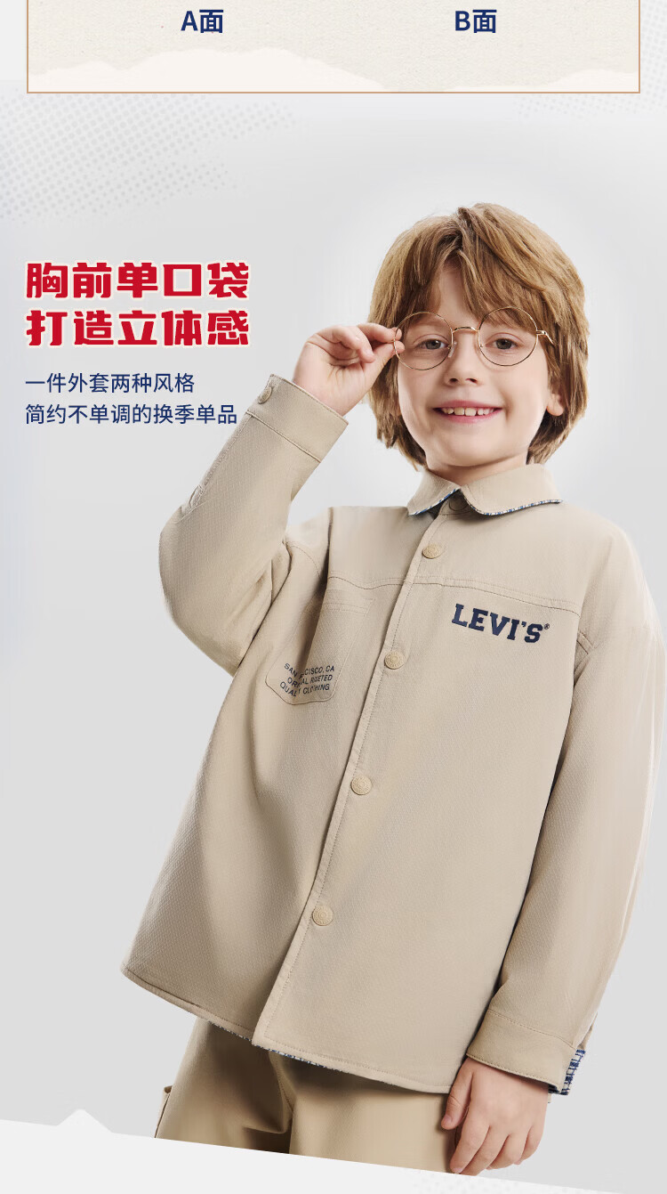 Levi s Reversible Levi's Children's Shirt Boys Jacket 2026 Spring Medium and Large Children's Top Children's Clothing Pepper Color 160/76 Recommended Height 152-158cm