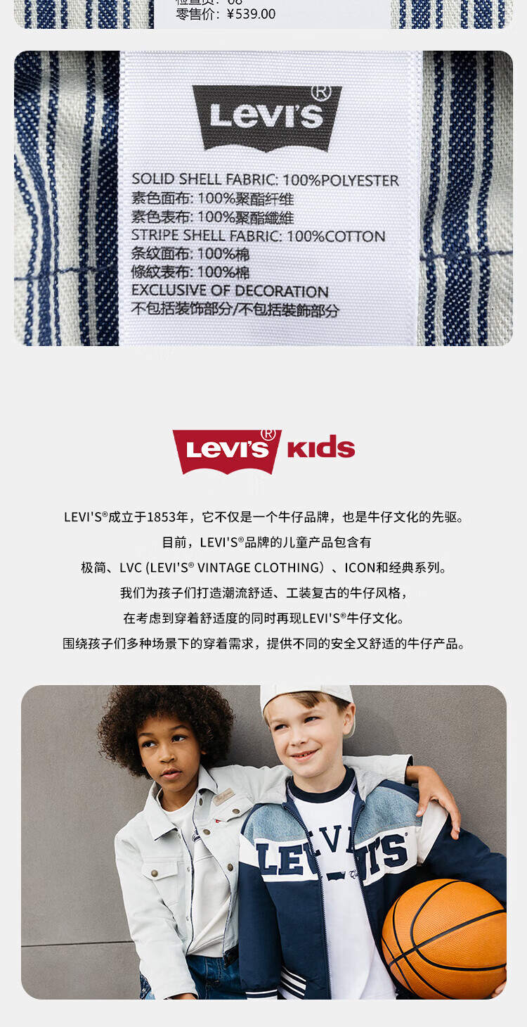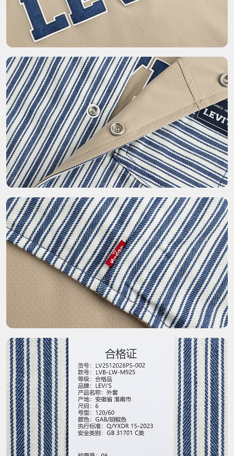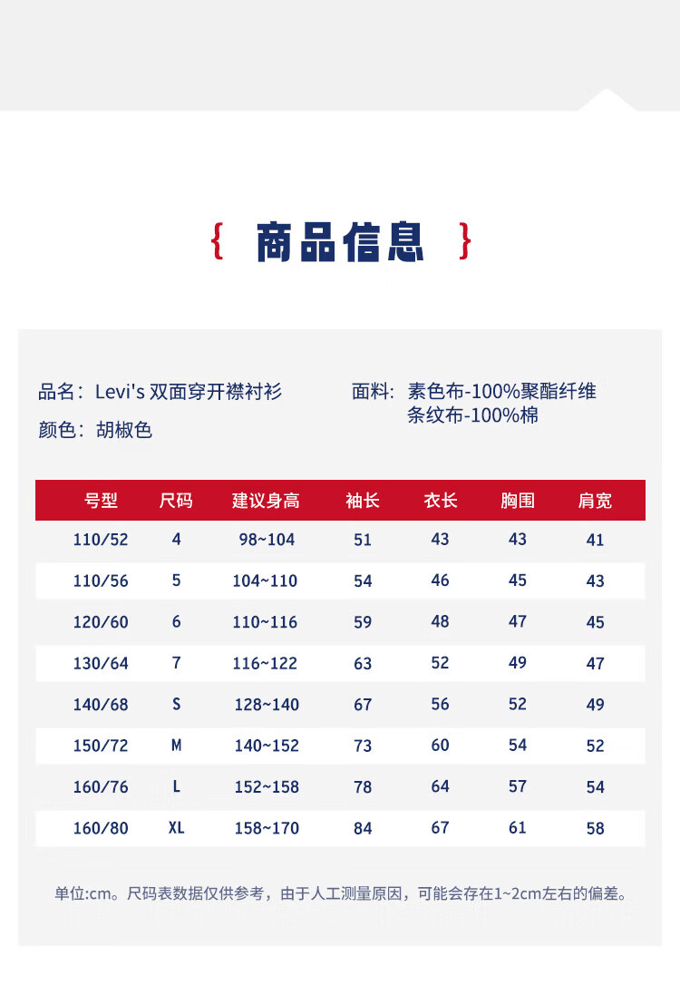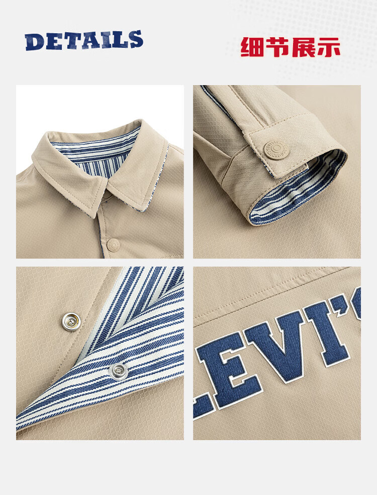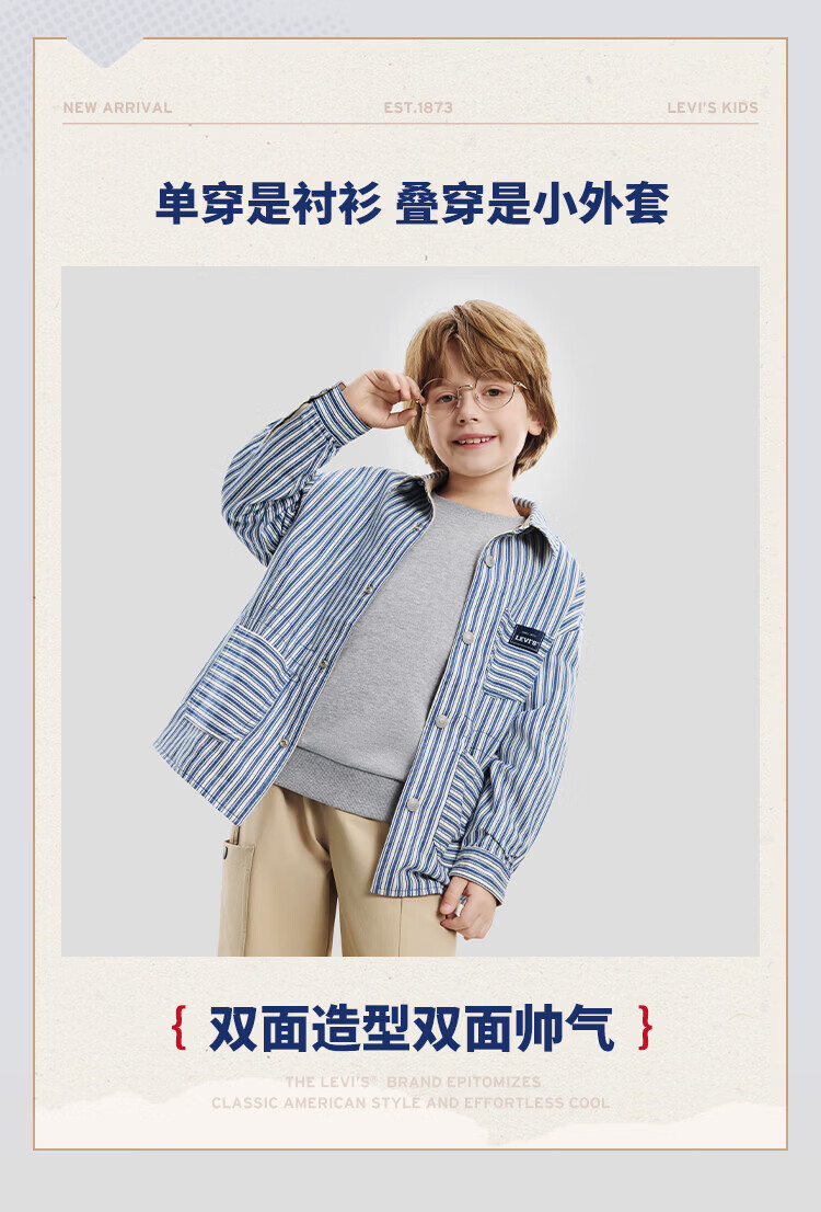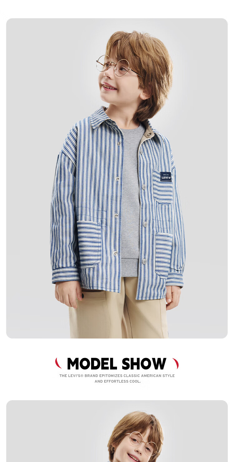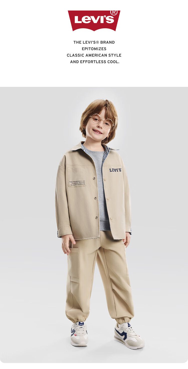 Levi s Reversible Levi's Children's Shirt Boys Jacket 2026 Spring Medium and Large Children's Top Children's Clothing Pepper Color 160/76 Recommended Height 152-158cm