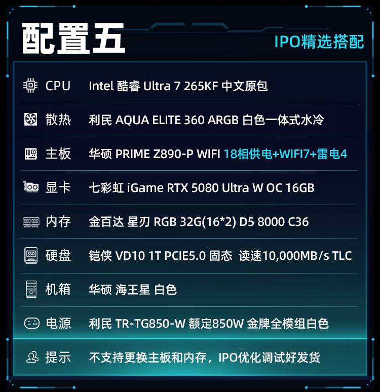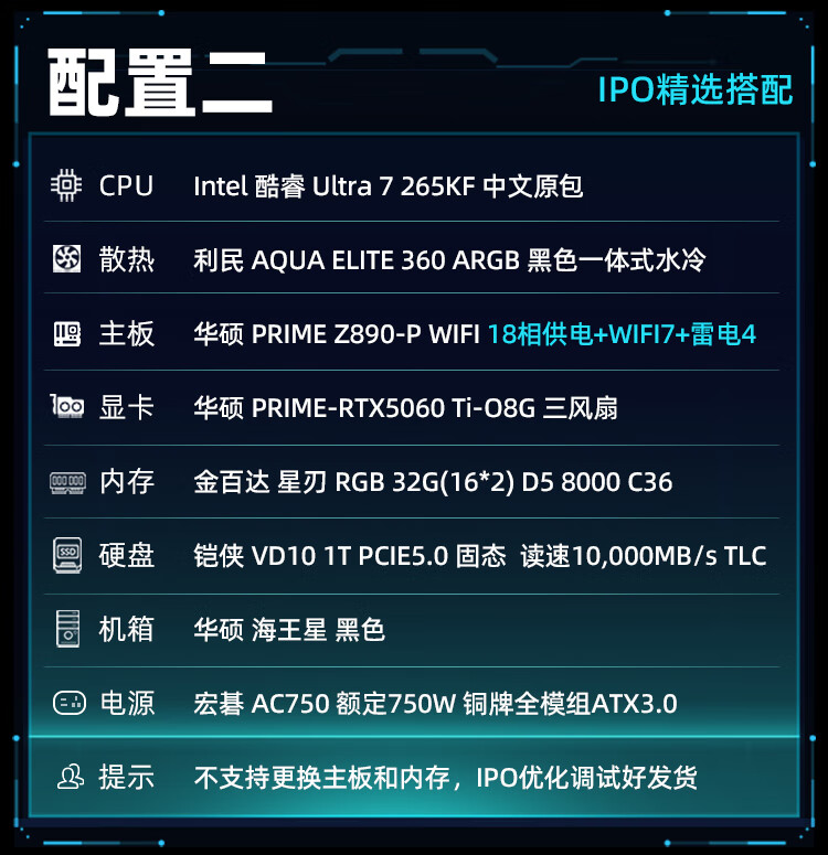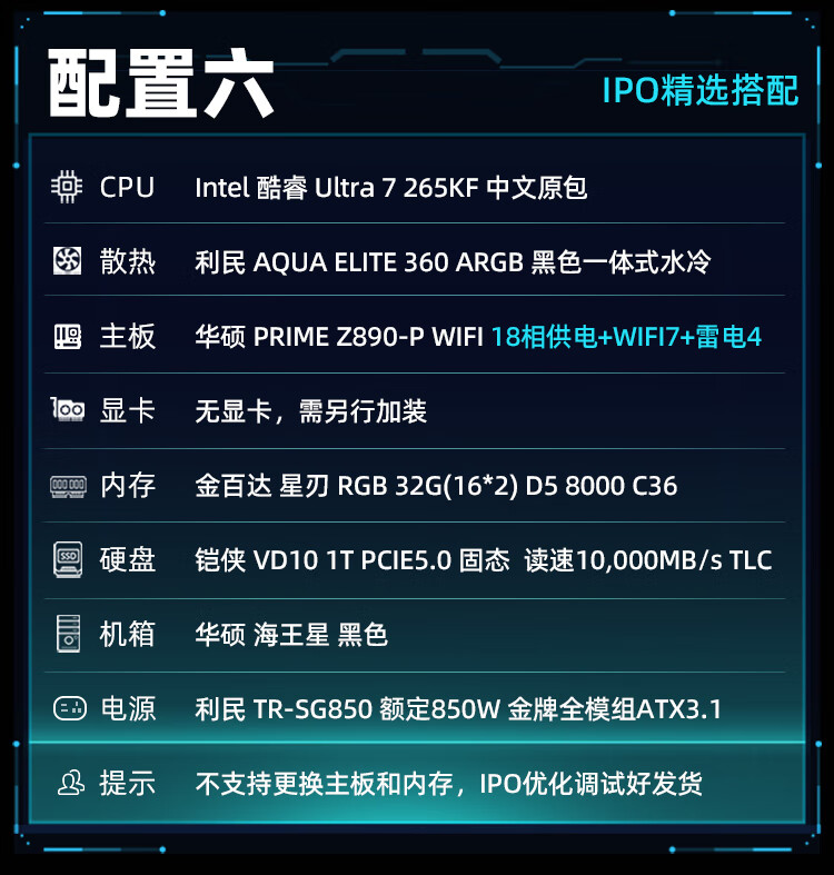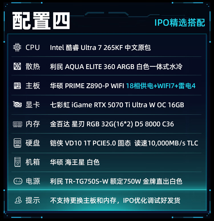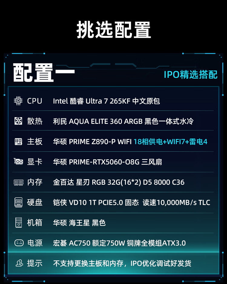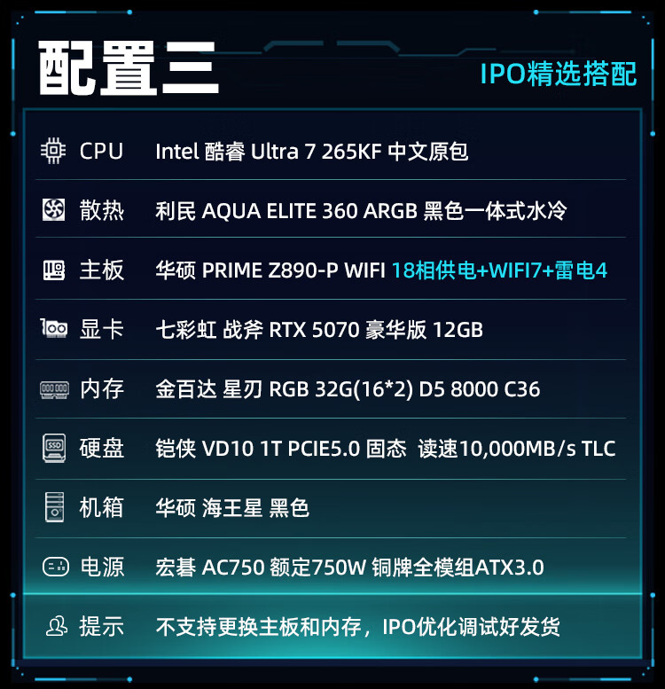 Intel IPO series Core Ultra 7 265KF/RTX5070Ti IPO optimized game AI rendering designer host assembly computer complete machine DIY assembly desktop configuration six U7 265KF+no graphics card+32G+1T