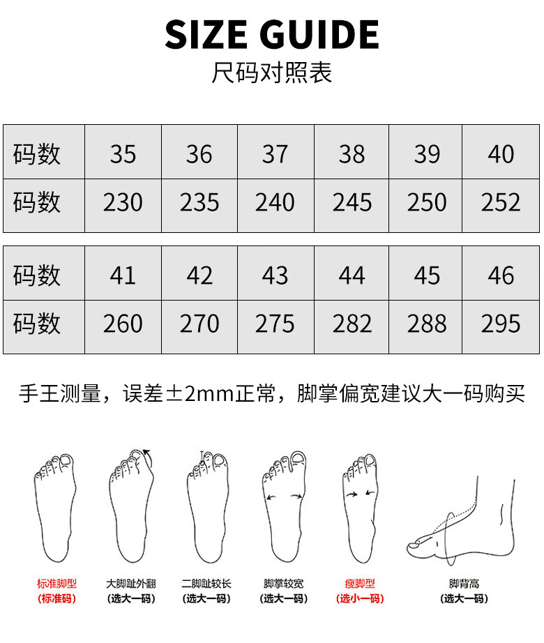 China (cm) 36 - 37 38 - 39 40 - 42 43 - 44 45 - 47