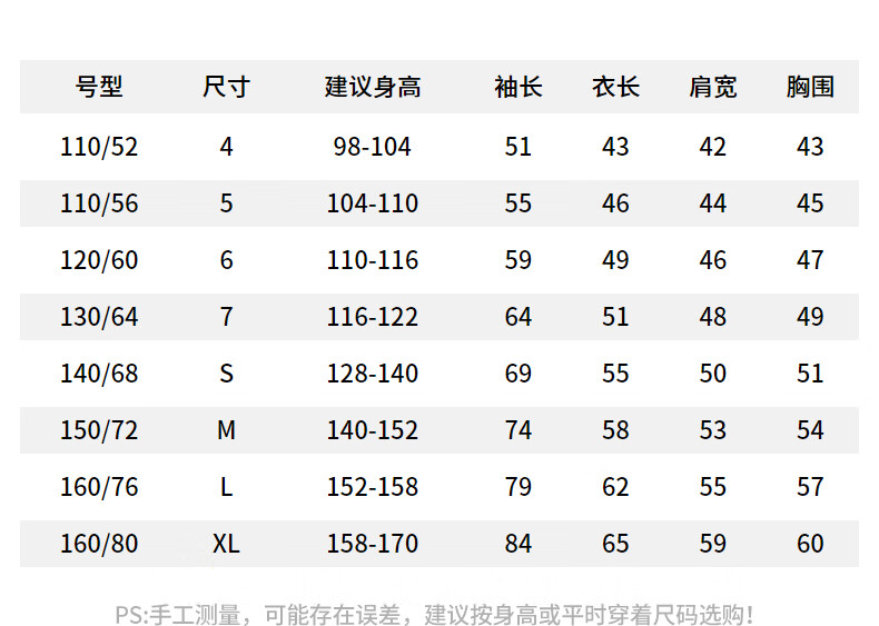 China(cm) 72-76 76-81 81-87 87-93 93-98