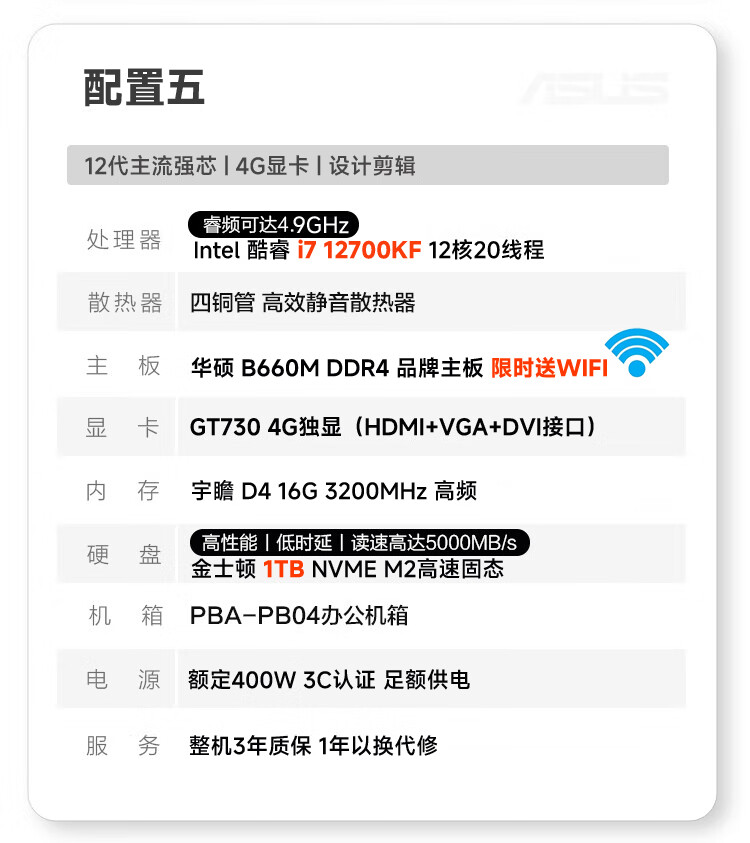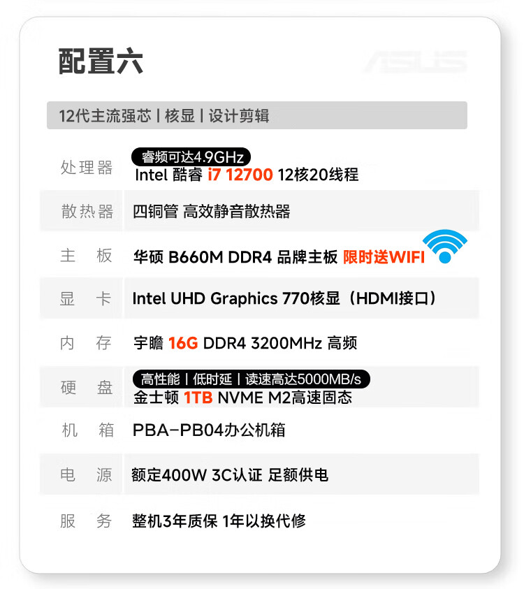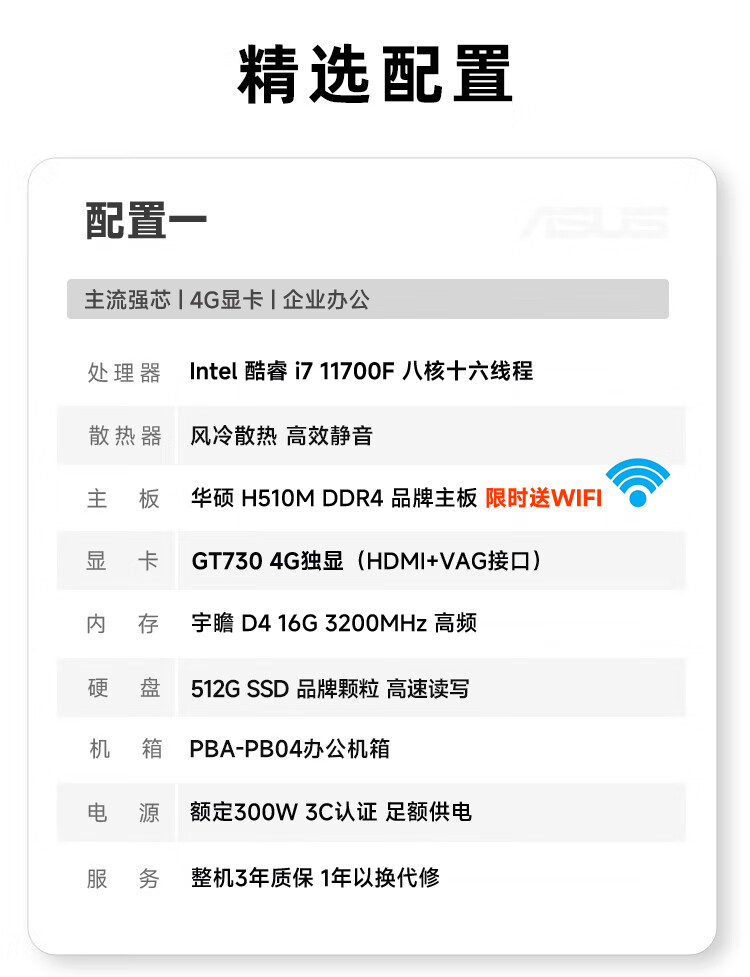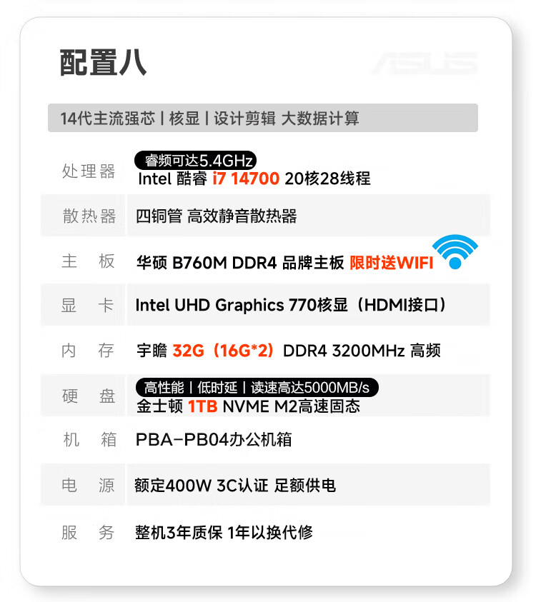 ASUS 2025 Core i7 14700/12700 enterprise purchase commercial office audio-visual entertainment desktop computer host home design high-performance full set DIY assembly machine configuration seven i7 14700|16G|1TB