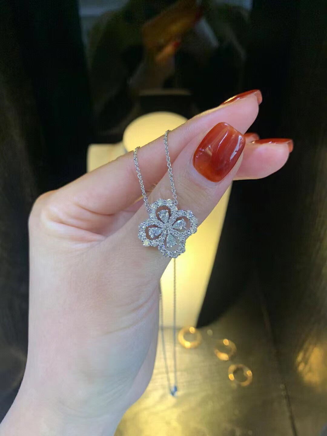 Junpo Harry Winston HW water drop necklace 18K gold platinum real diamond four-leaf clover Loop full diamond pendant clavicle chain for women 18k gold