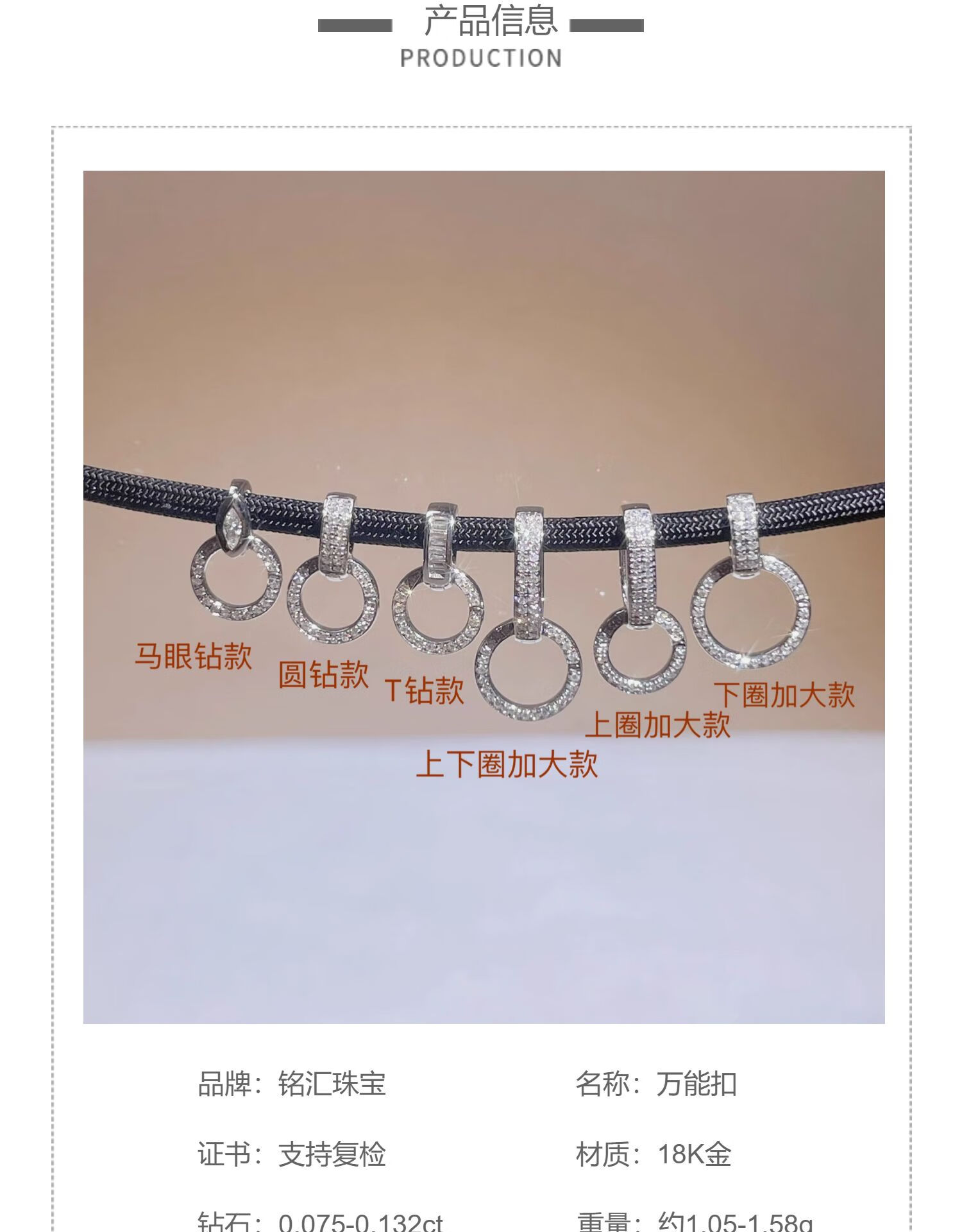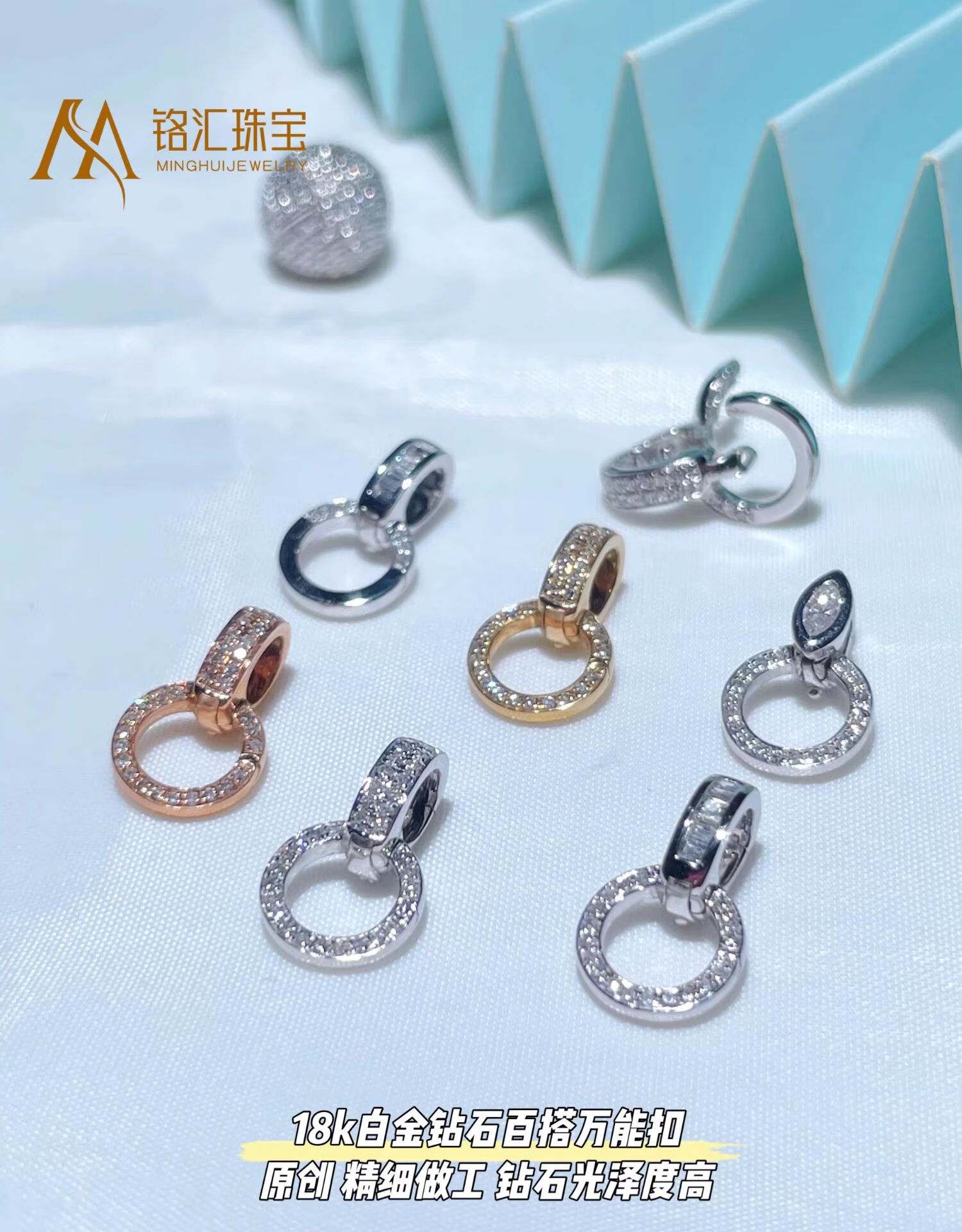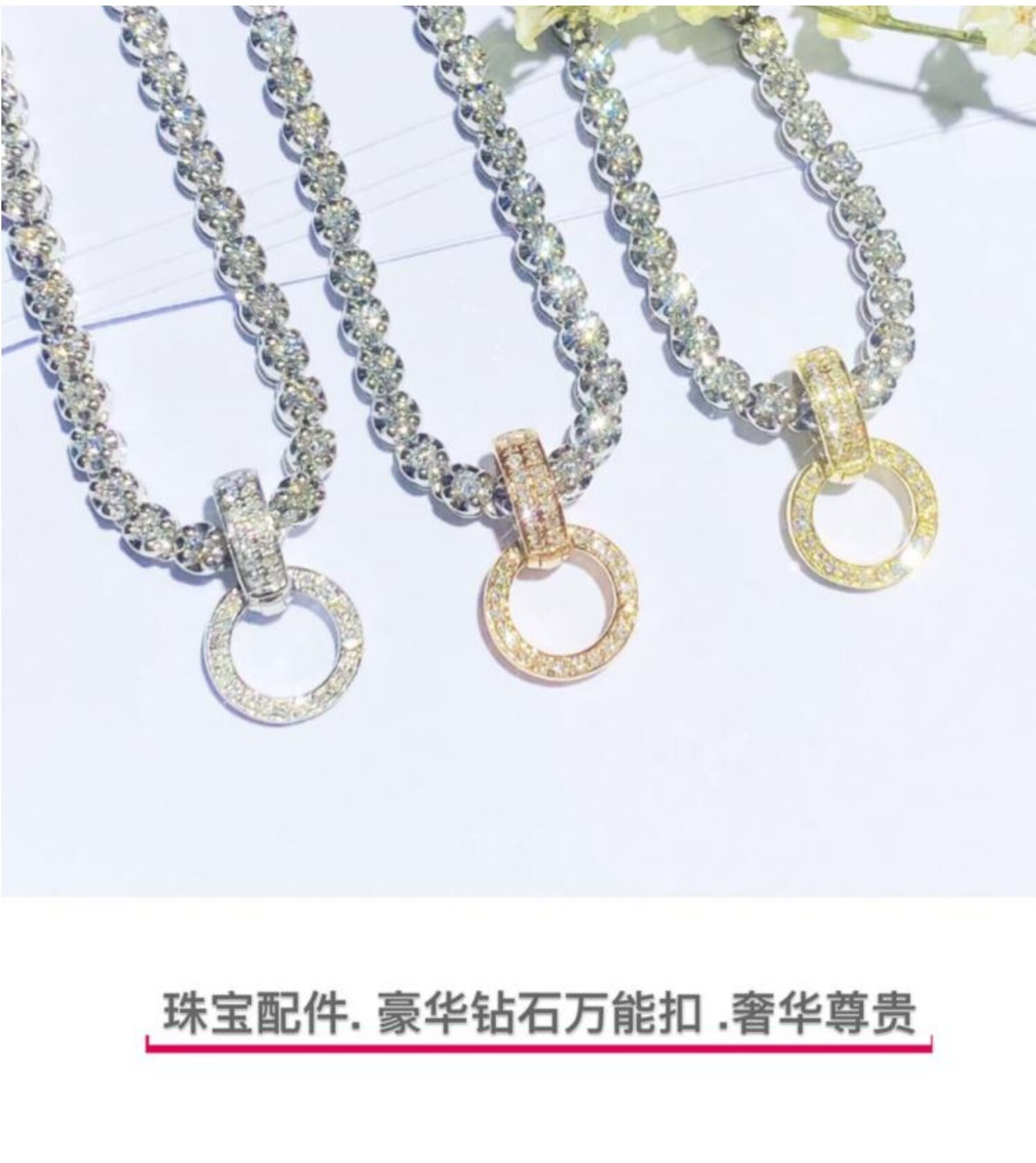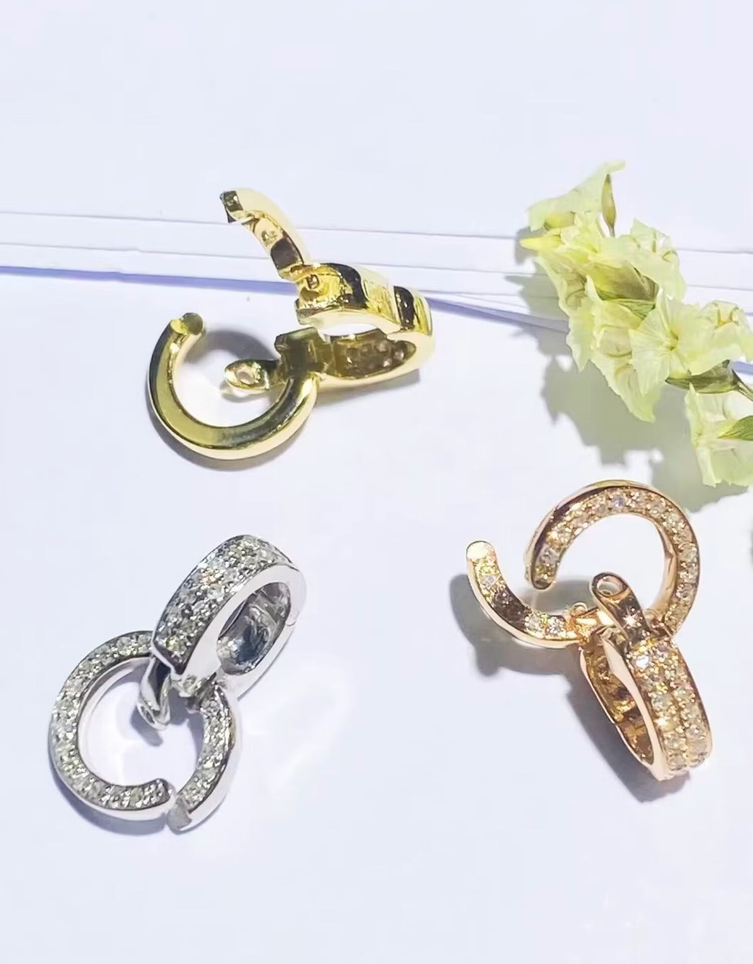 Junpo 18K gold inlaid with diamond high cargo rope movable pendant connecting buckle accessories jewelry versatile AU750 detachable 18K gold platinum universal buckle half diamond model with certificate