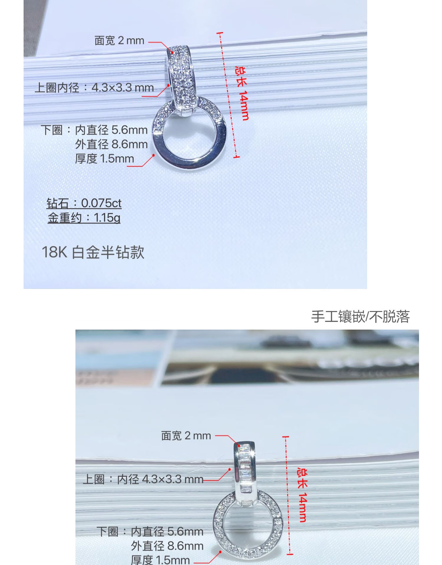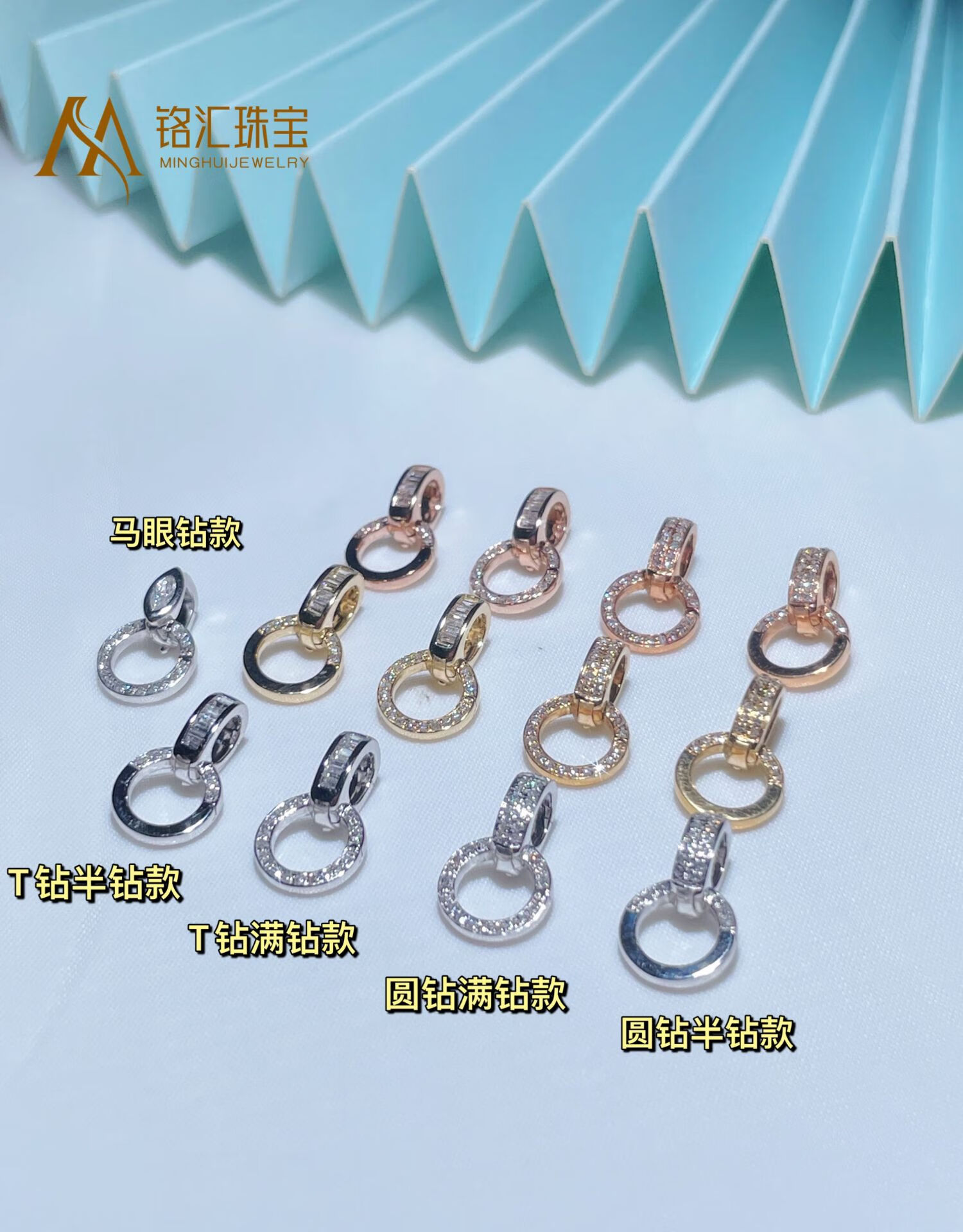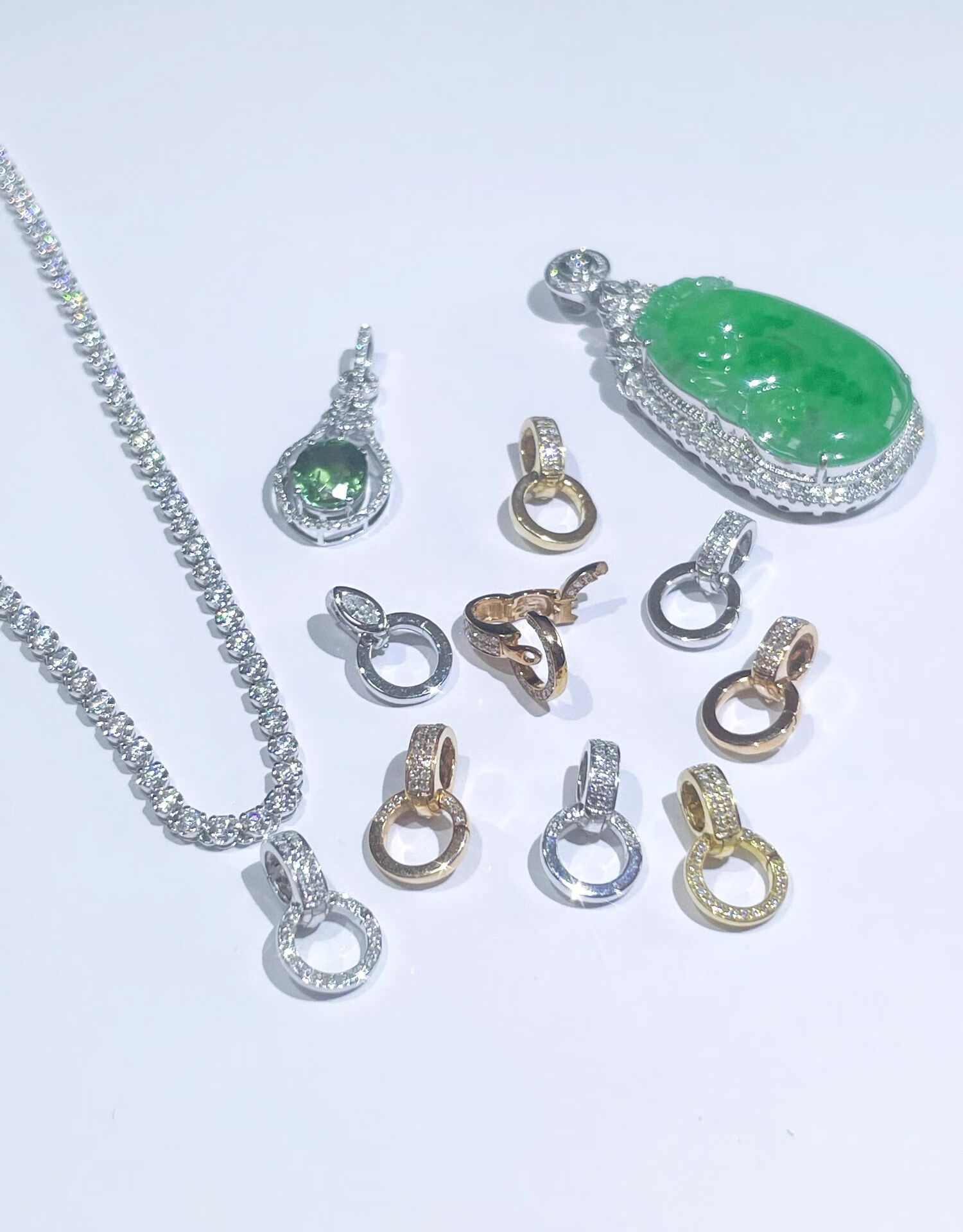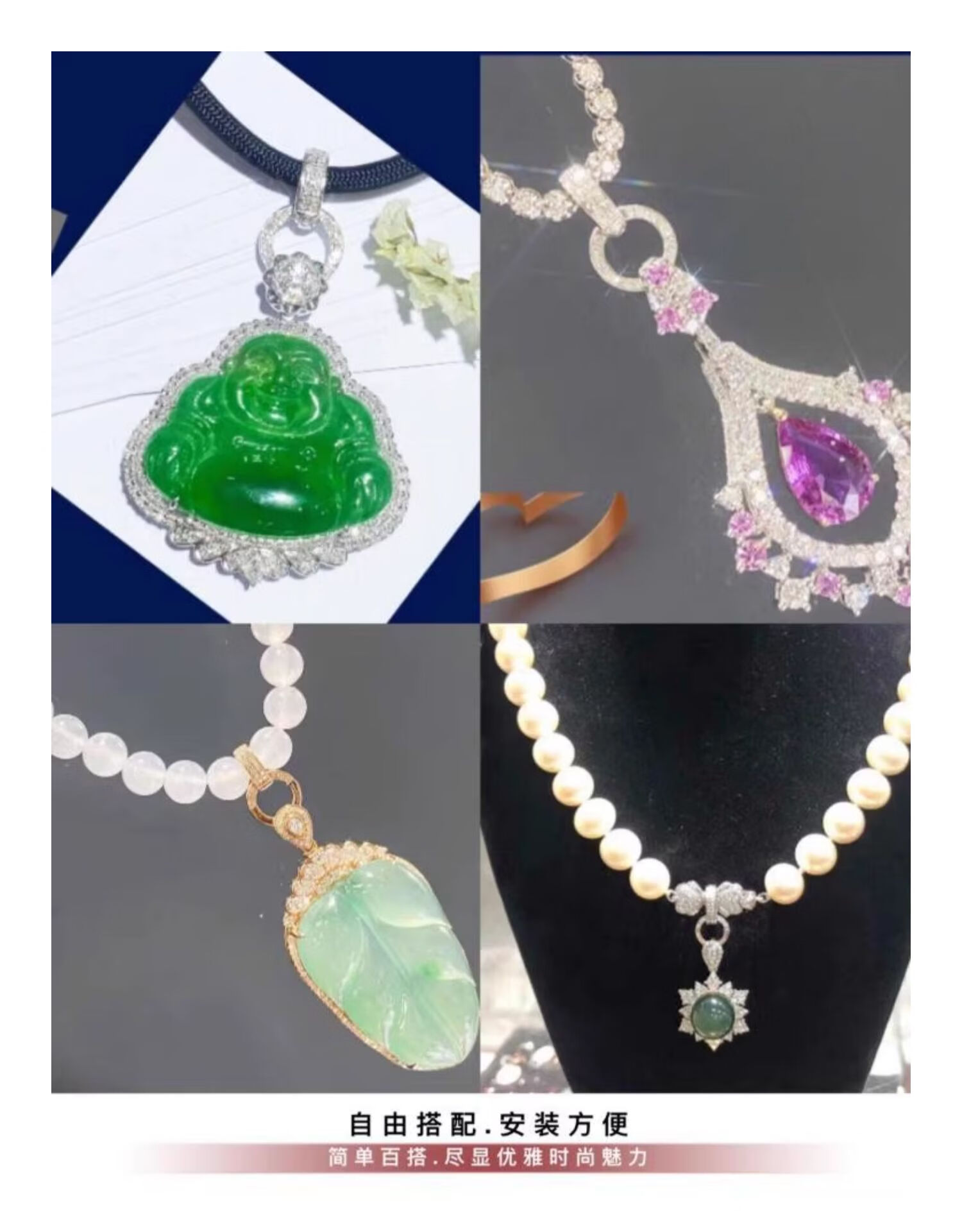 Junpo 18K gold inlaid with diamond high cargo rope movable pendant connecting buckle accessories jewelry versatile AU750 detachable 18K gold platinum universal buckle half diamond model with certificate