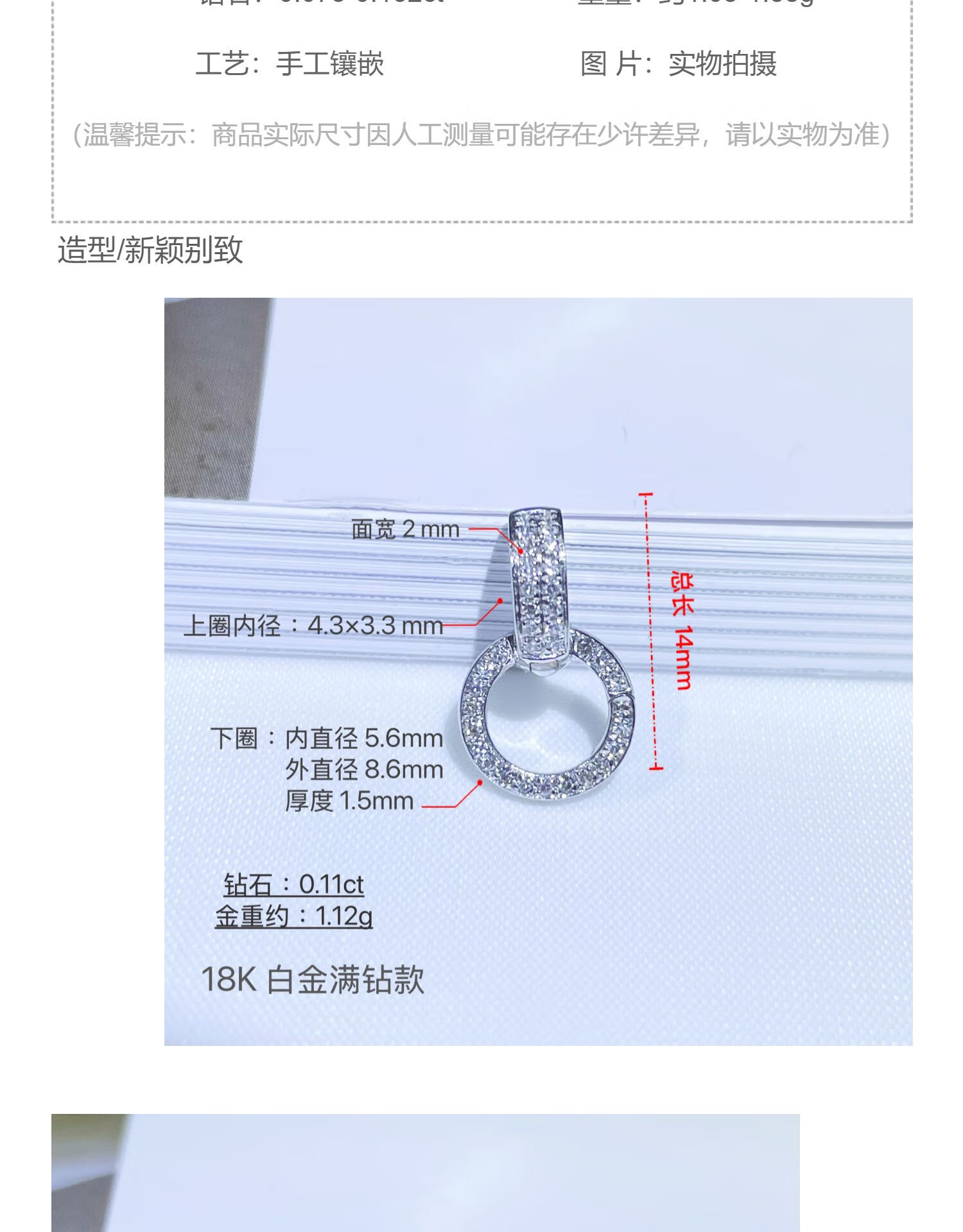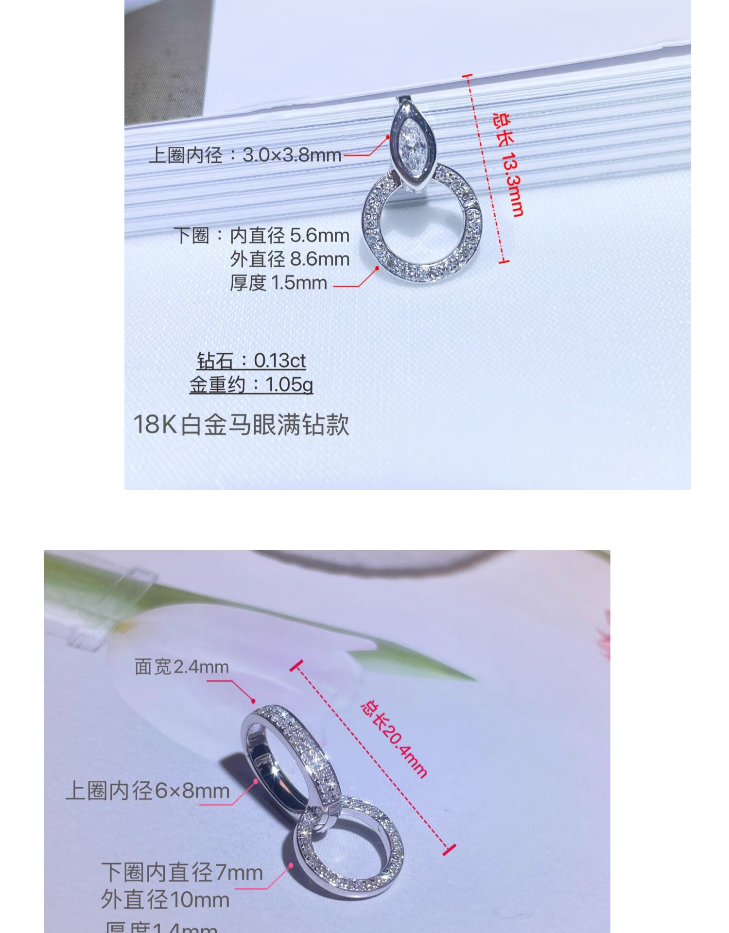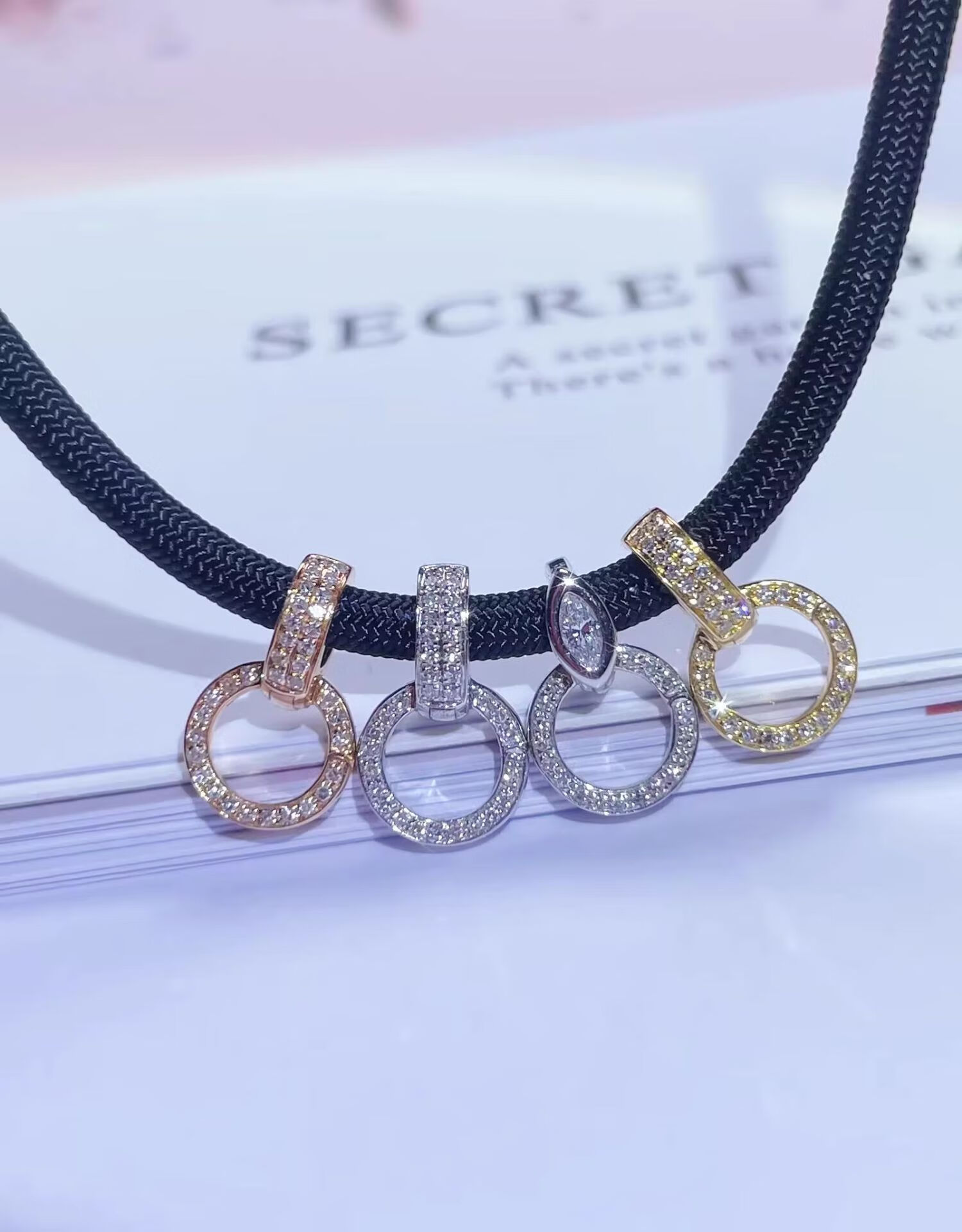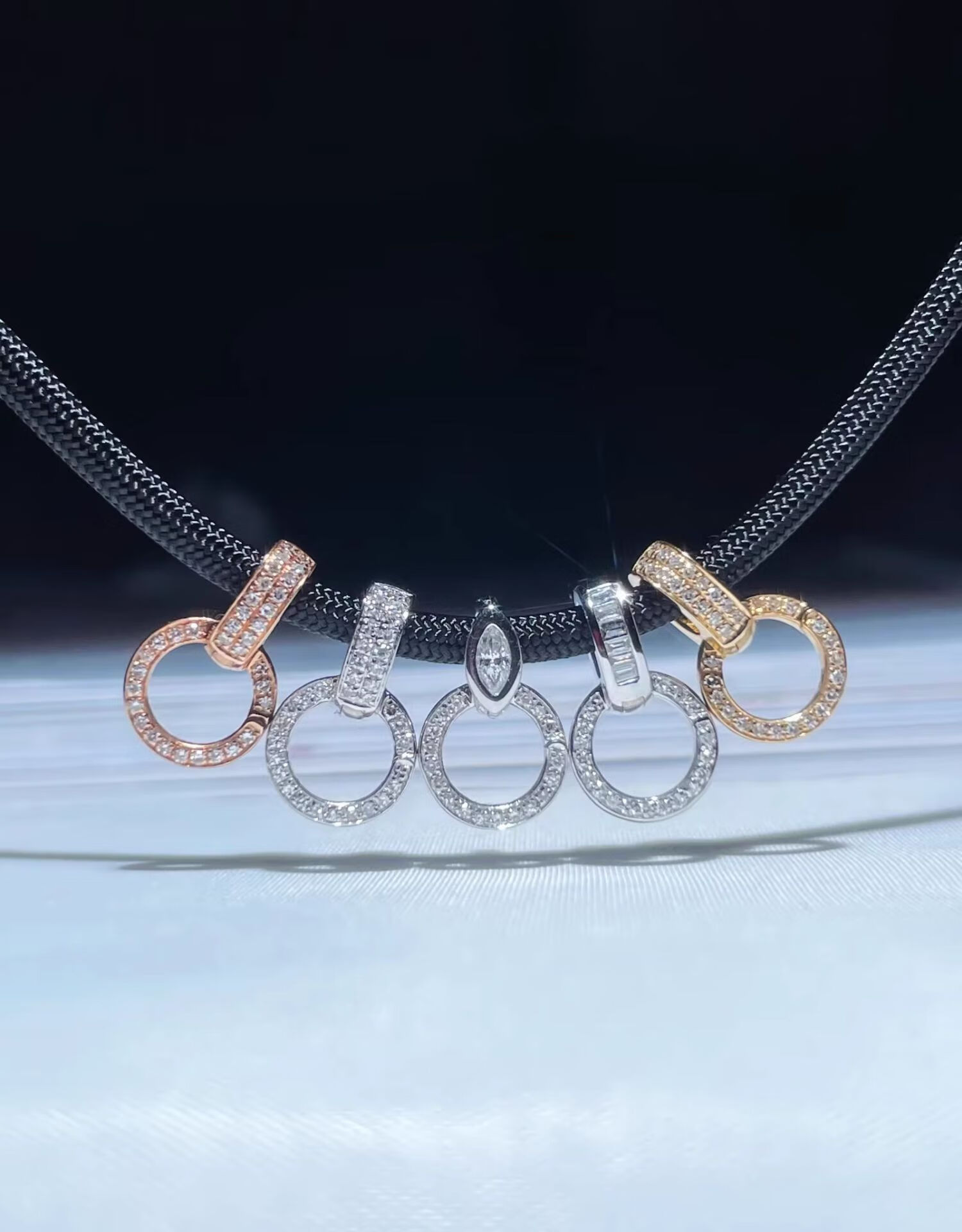 Junpo 18K gold inlaid with diamond high cargo rope movable pendant connecting buckle accessories jewelry versatile AU750 detachable 18K gold platinum universal buckle half diamond model with certificate