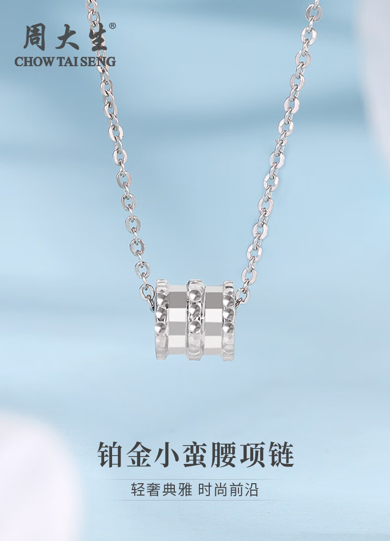 Zhou Taisheng platinum necklace PT950 small waist necklace exquisite light luxury high-end gift for girlfriend and wife birthday gift for women small waist necklace about 4g