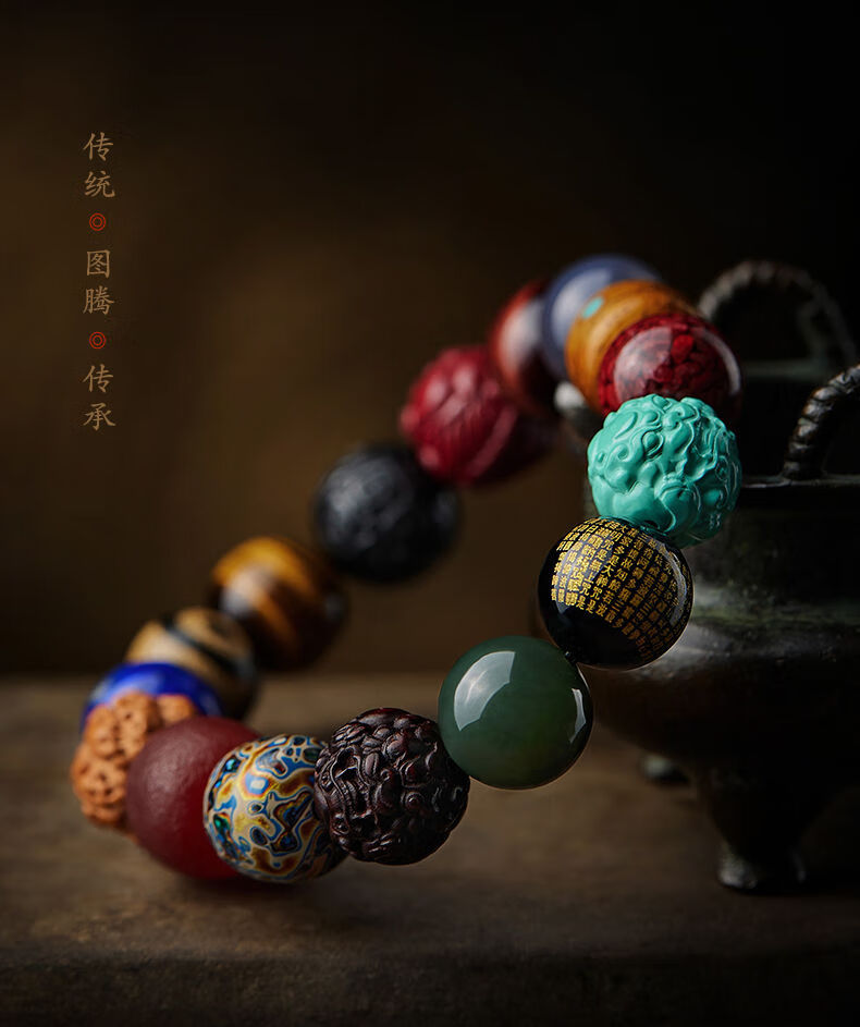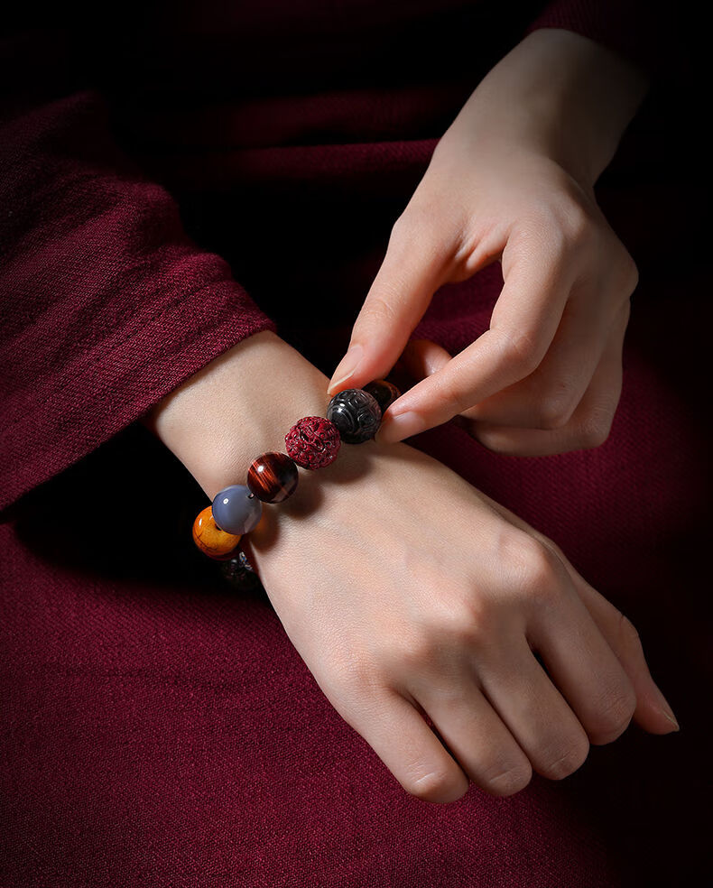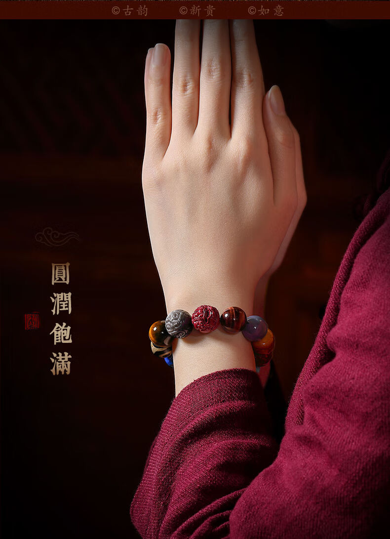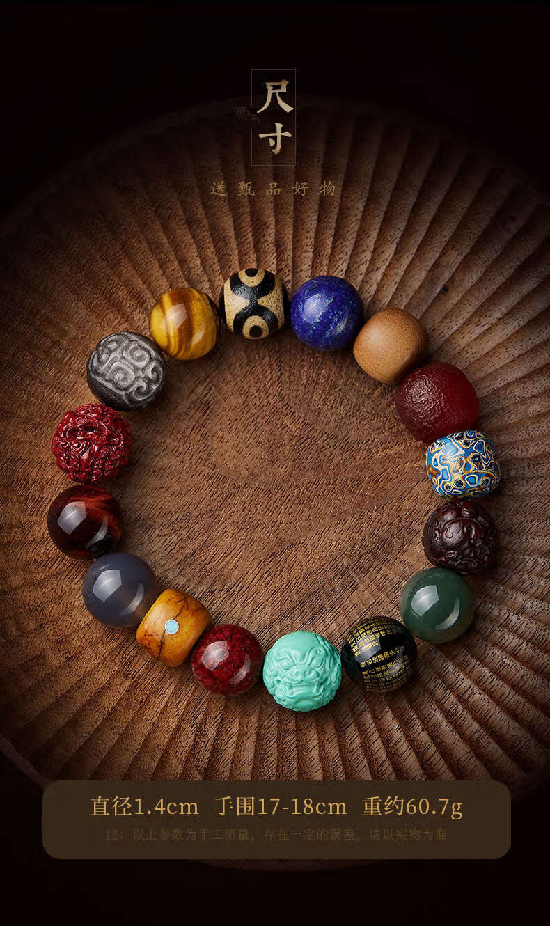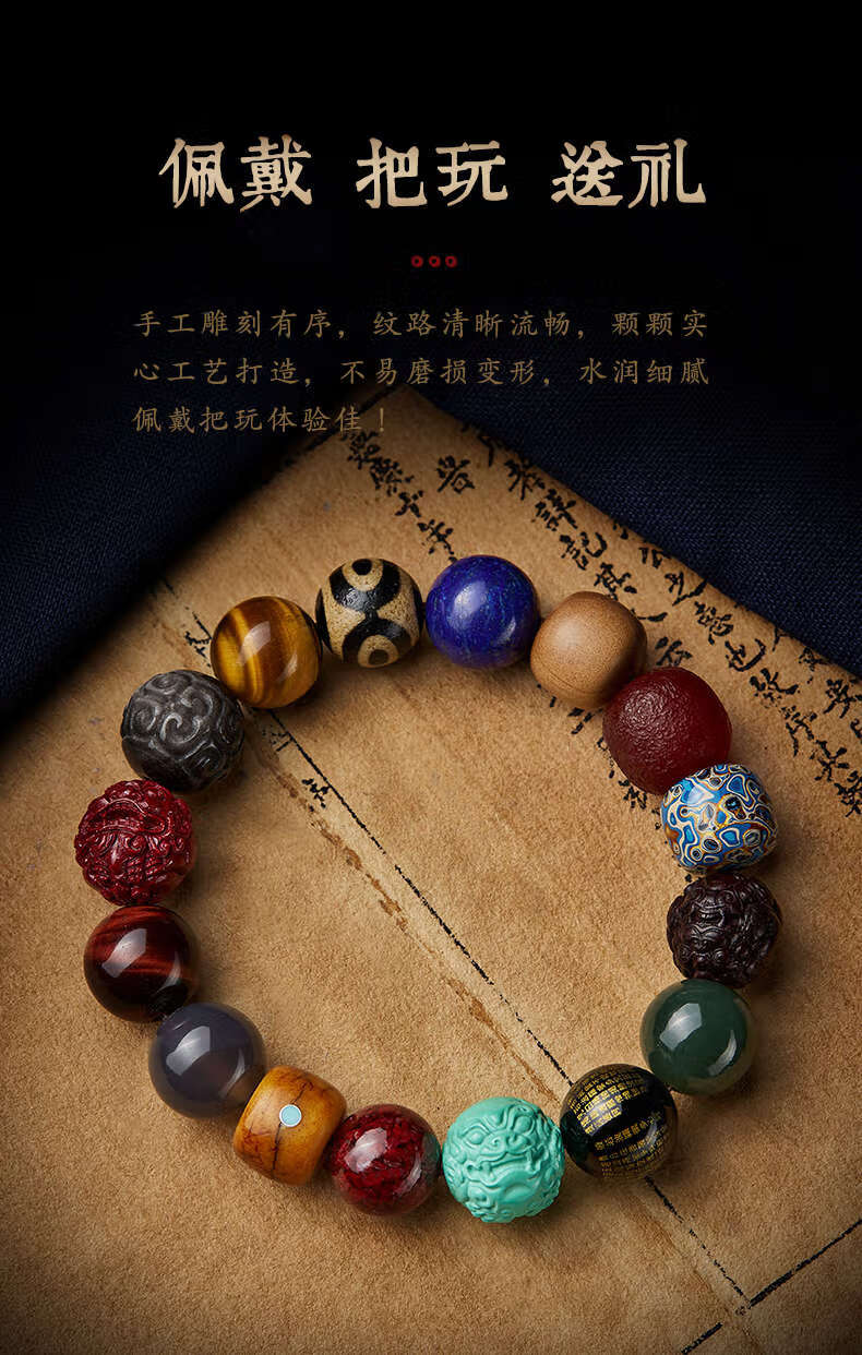 Yadige Duobao Bracelet Men's Transfer Beads Pixiu Bracelet Women's Eighteen Seeds Cinnabar Leaf Red Sandalwood Bodhi Large Lacquer Buddha Beads Rosary Zodiac Tiger Bead Diameter 2.0cm-Duobao Bracelet