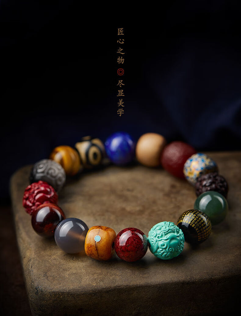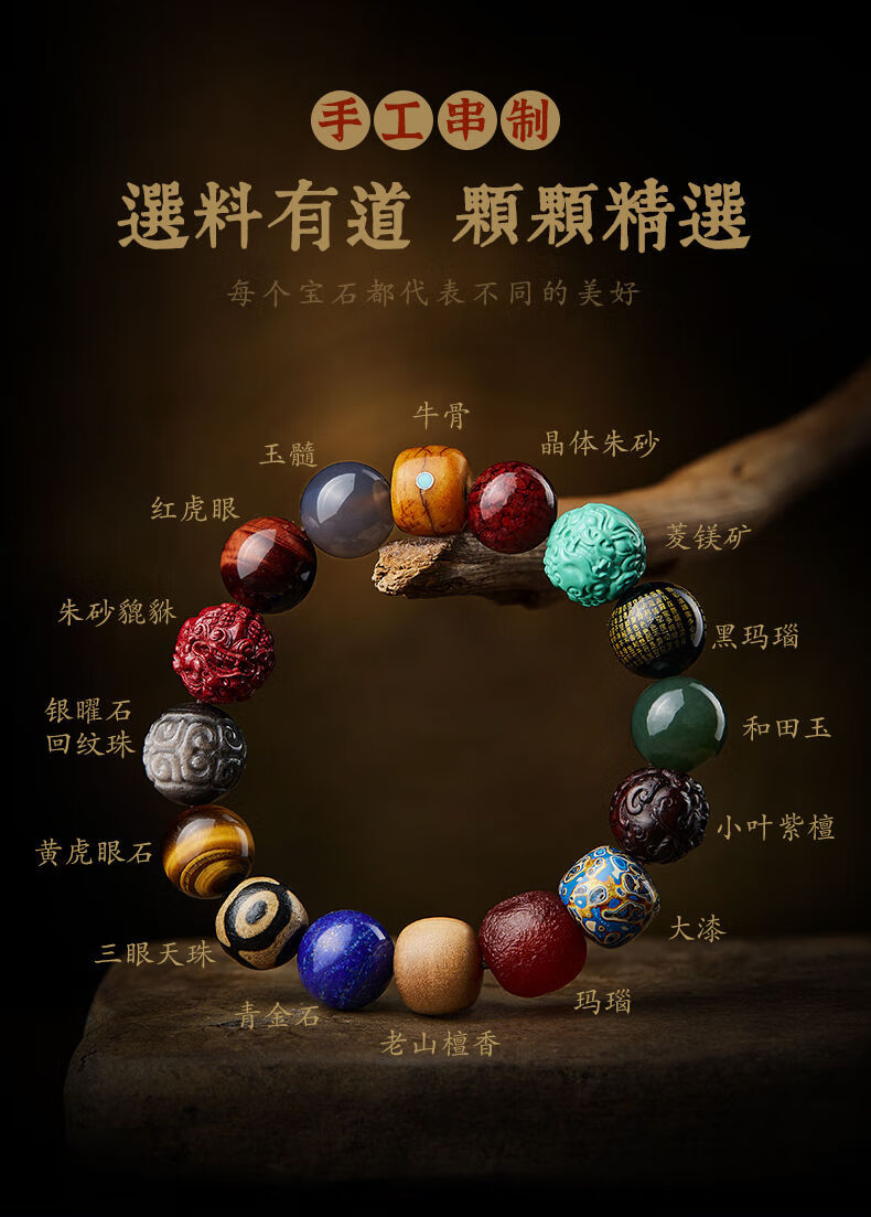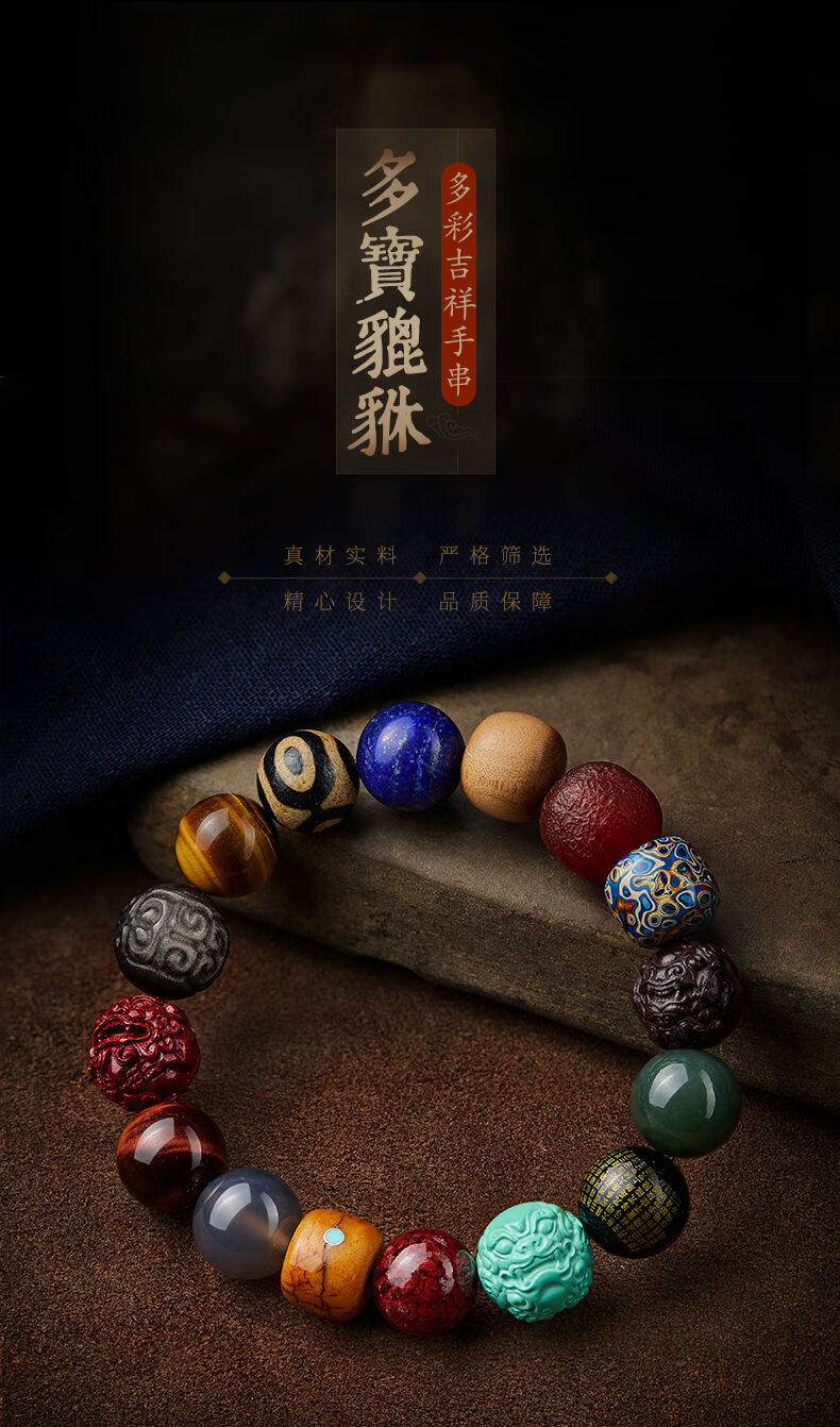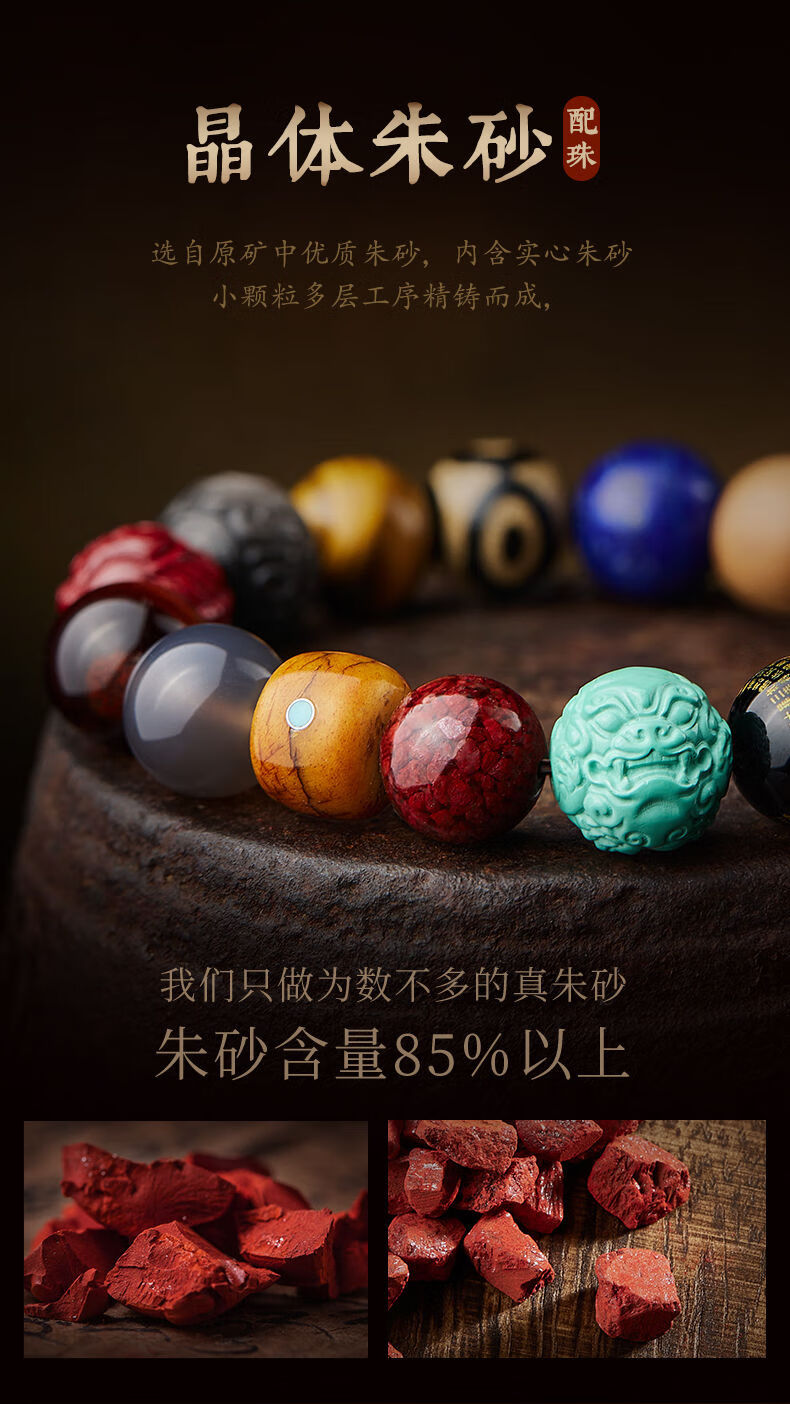 Yadige Duobao Bracelet Men's Transfer Beads Pixiu Bracelet Women's Eighteen Seeds Cinnabar Leaf Red Sandalwood Bodhi Large Lacquer Buddha Beads Rosary Zodiac Tiger Bead Diameter 2.0cm-Duobao Bracelet