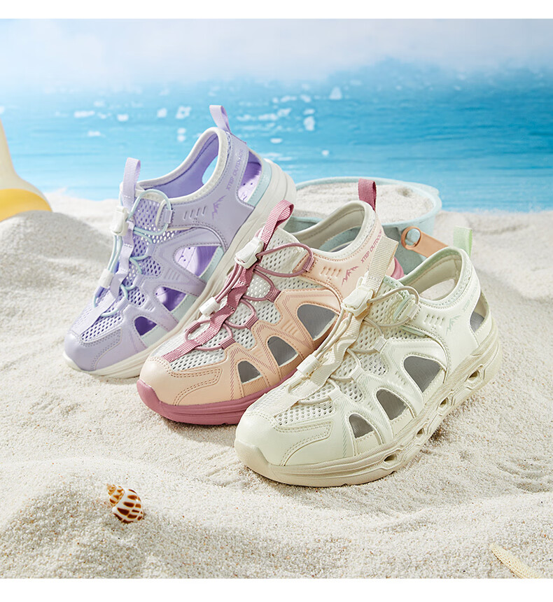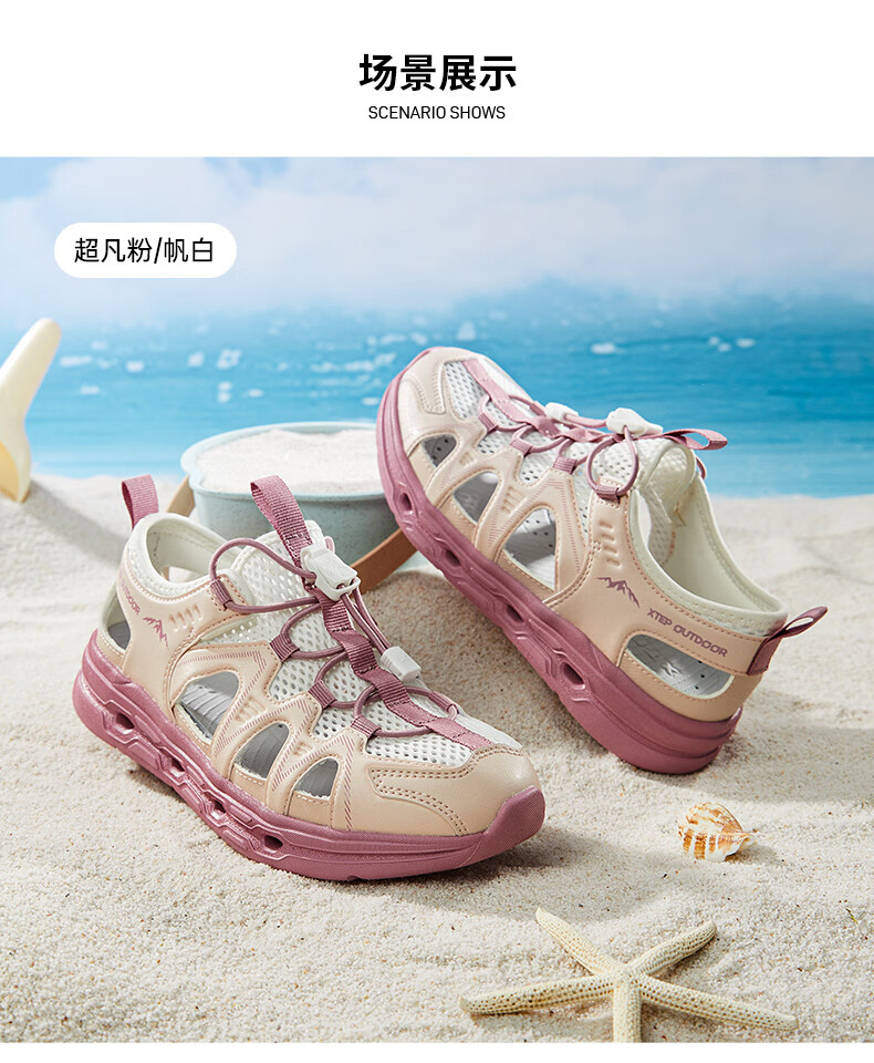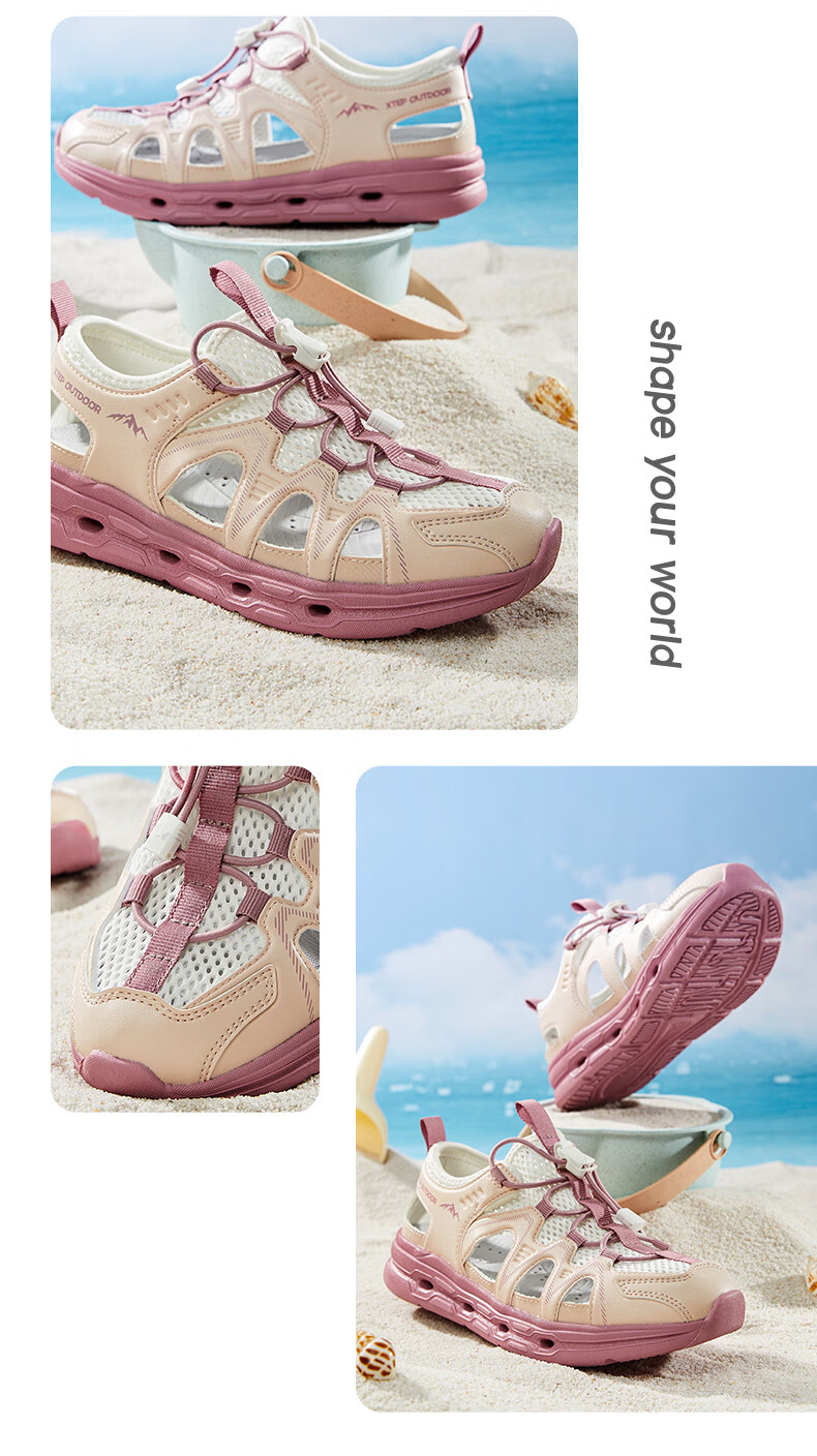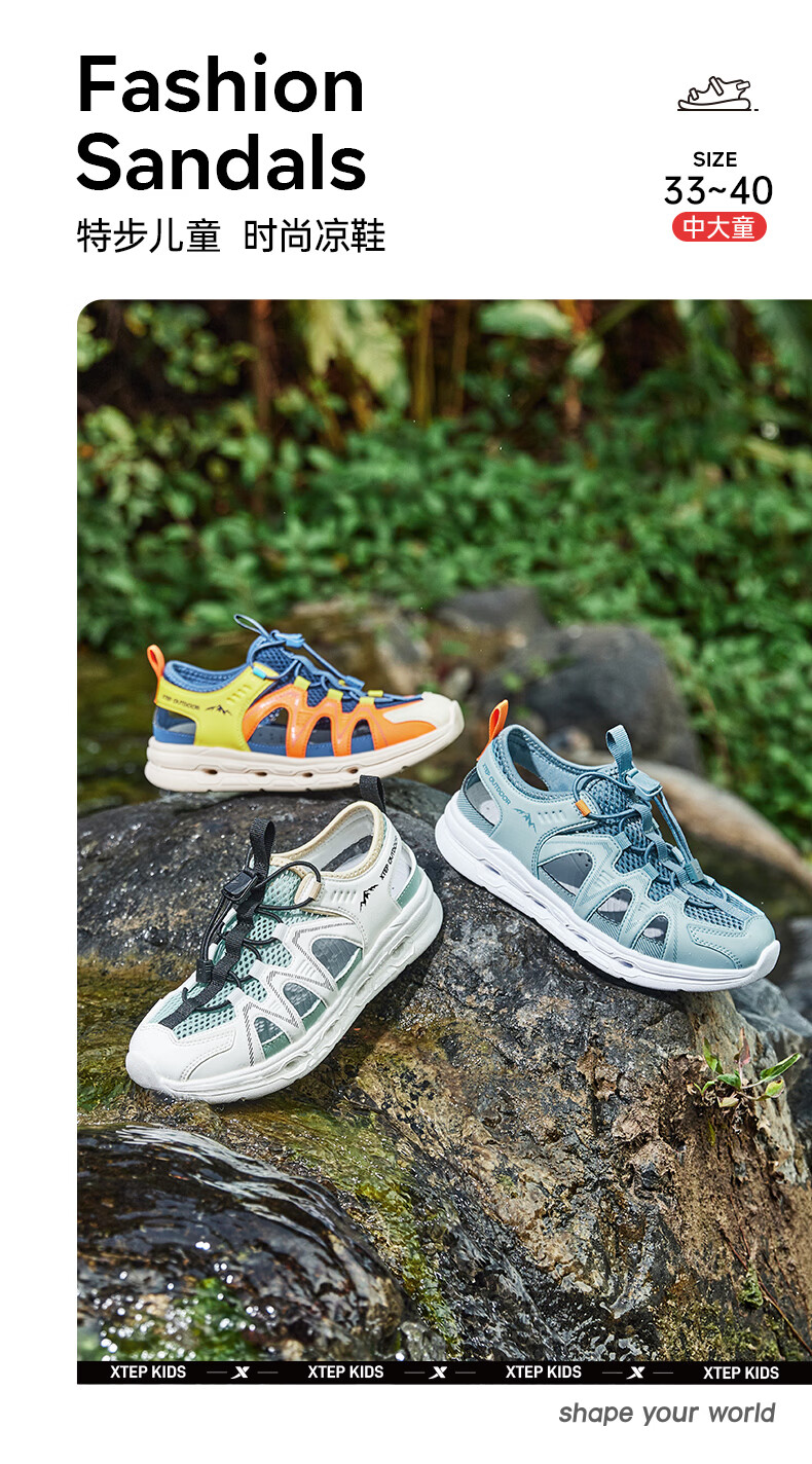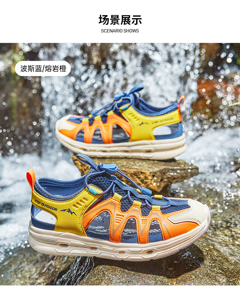 Xtep children's beach shoes, boys' summer small, medium and large children, breathable and comfortable, tail buckle lace-up mid-sole hollow sandals, Persian blue/lava orange 31