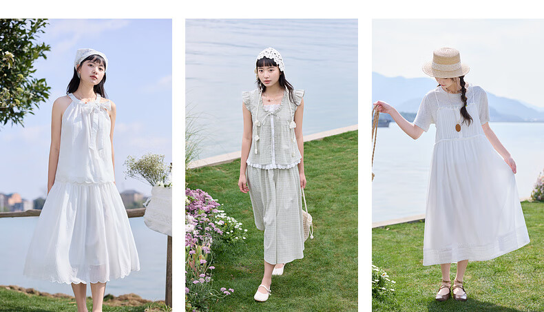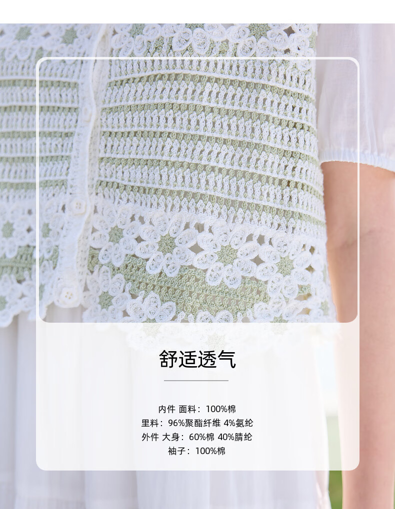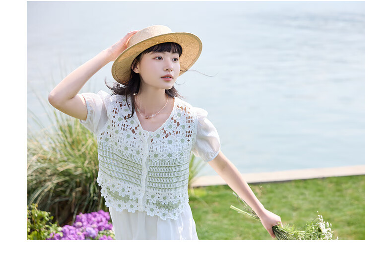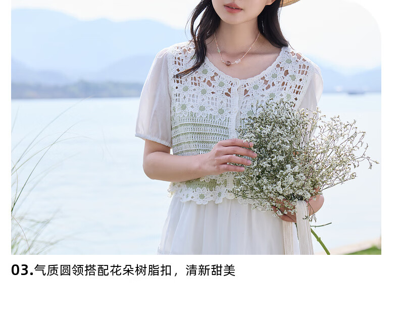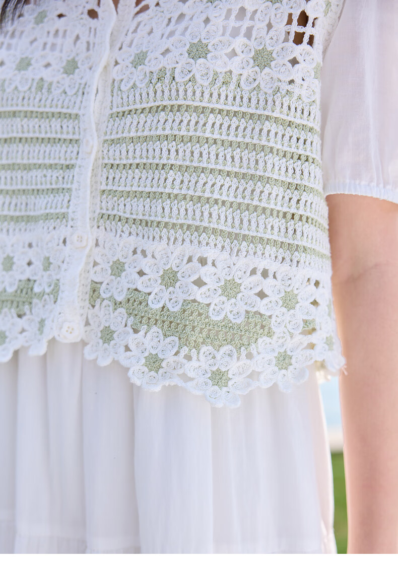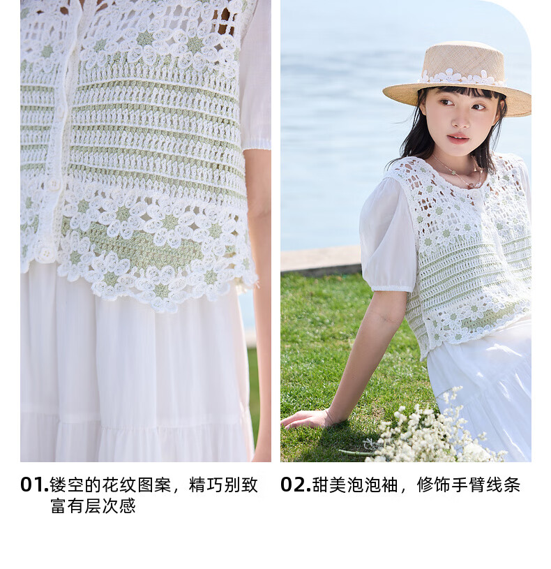 Zihan (ZIHAN) Zihan pastoral style hollow pattern puff sleeve shirt suspender dress two-piece suit for women 2025 summer new style off-white S