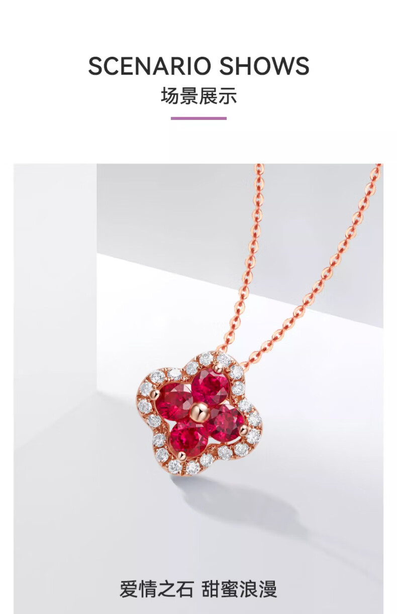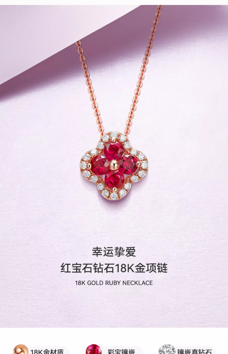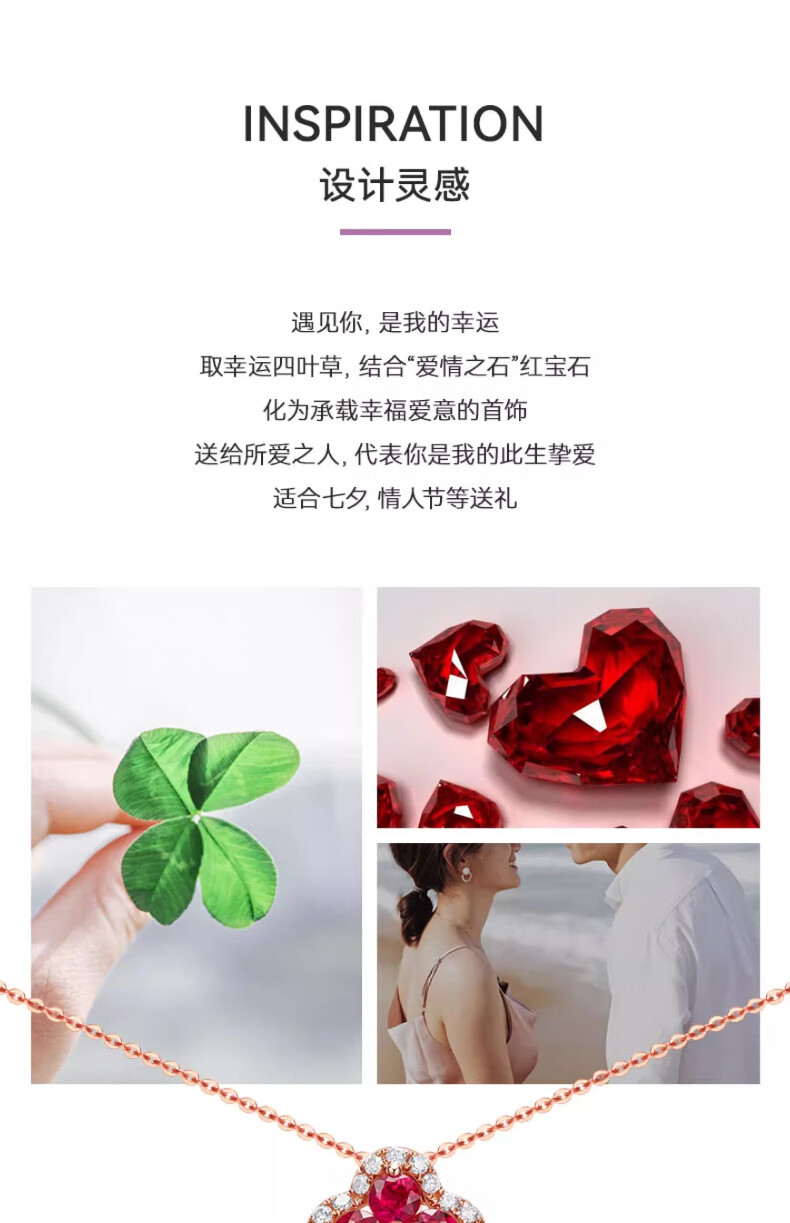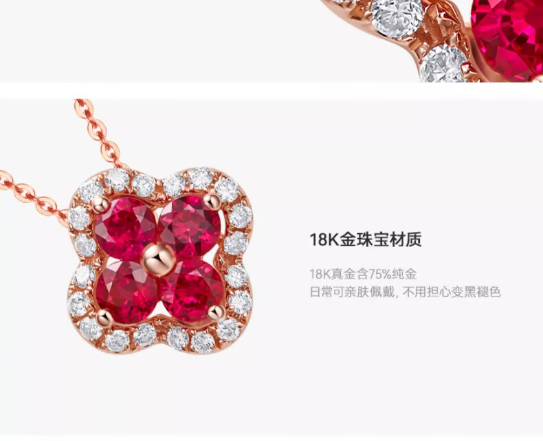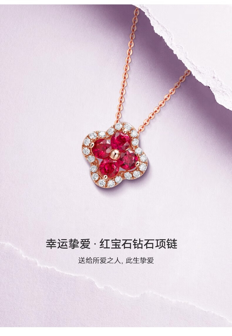 Lirokini necklace for women 18k color gold four-leaf clover ruby pendant high-end jewelry Valentine's Day birthday gift for girls 18k gold diamond ruby necklace brand gift box
