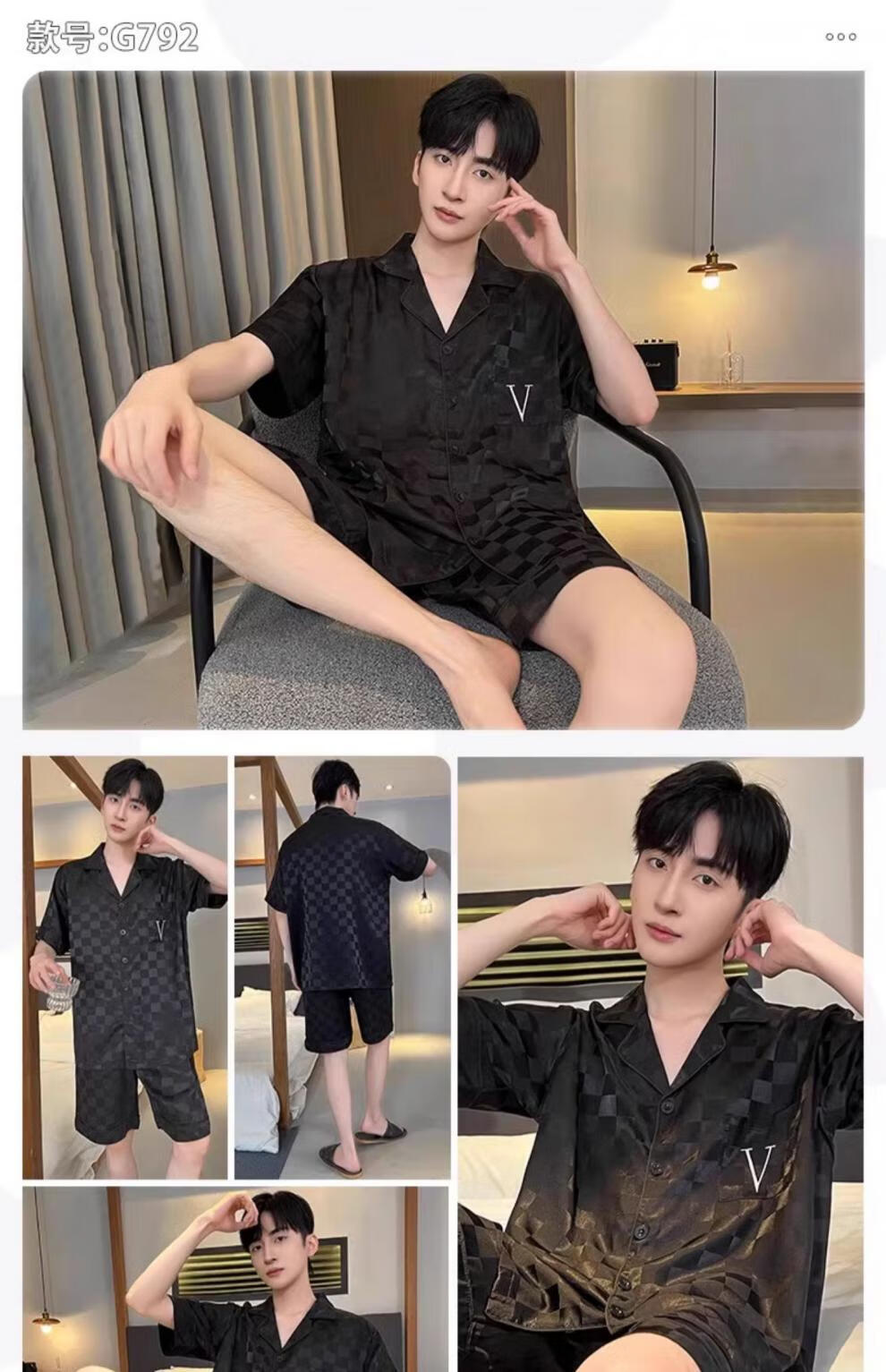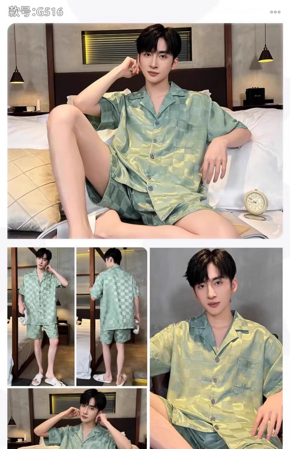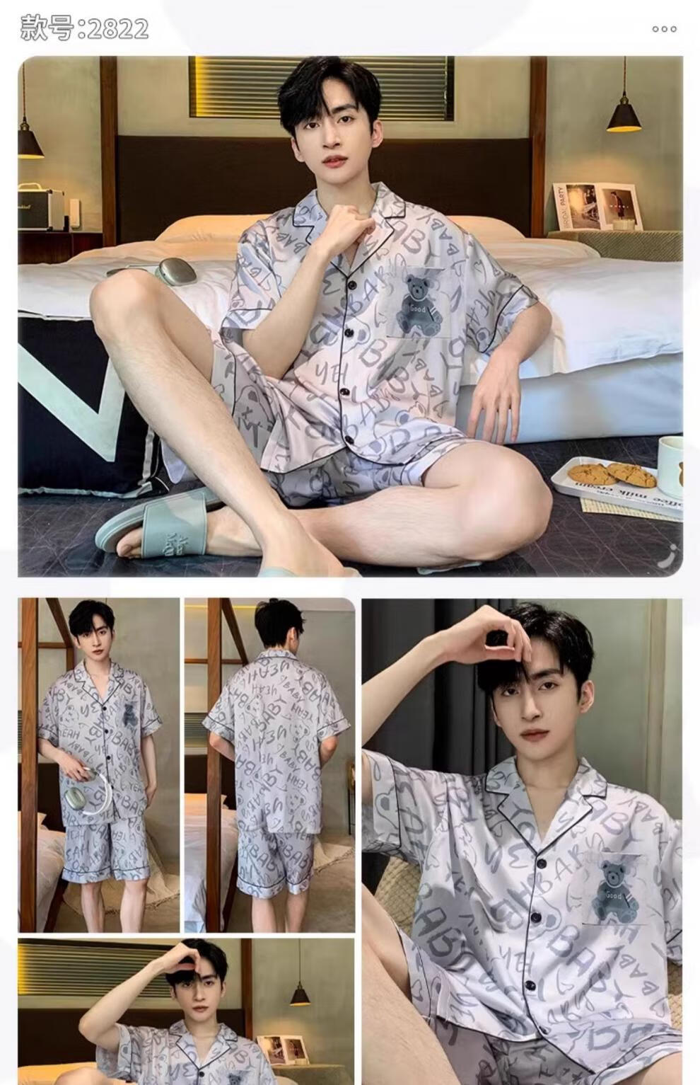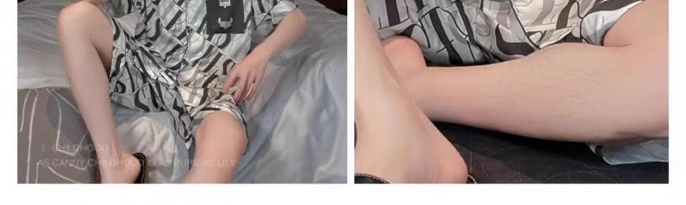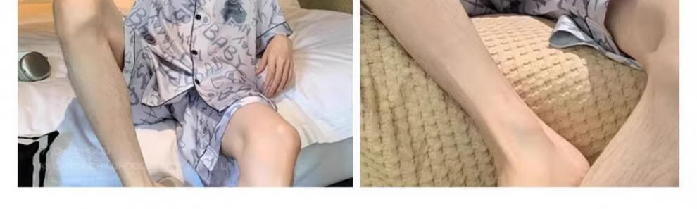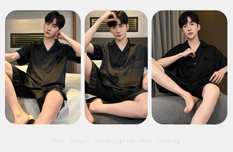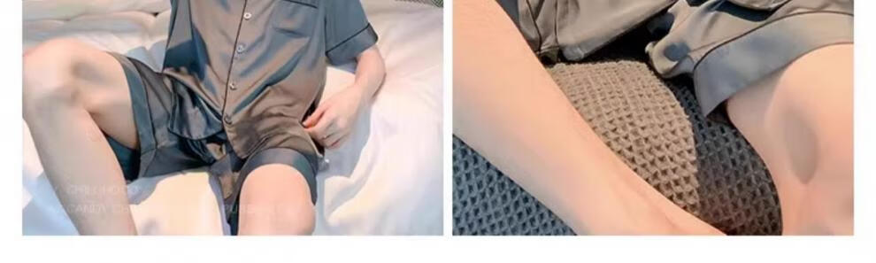 MiiOW pajamas men's summer ice-sleeved short-sleeved pants summer thin simulated silk boys' youth student home clothes set G542 L (height about 170 and weight-130Jin Jin is equal to 0.5 kg)