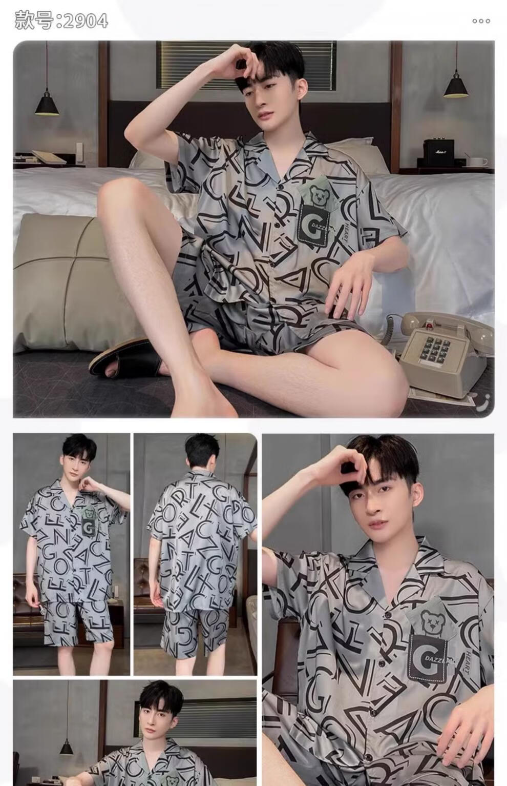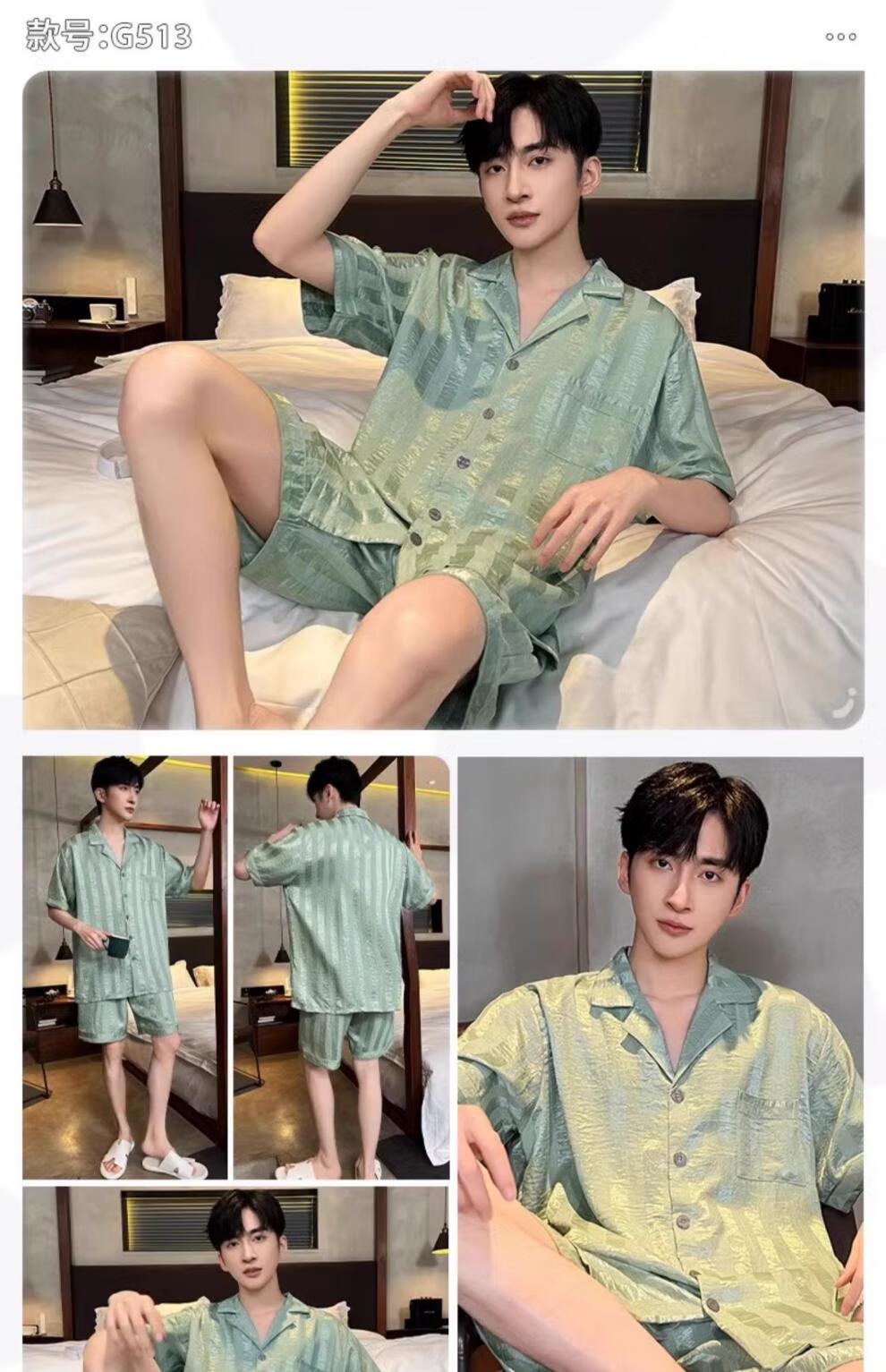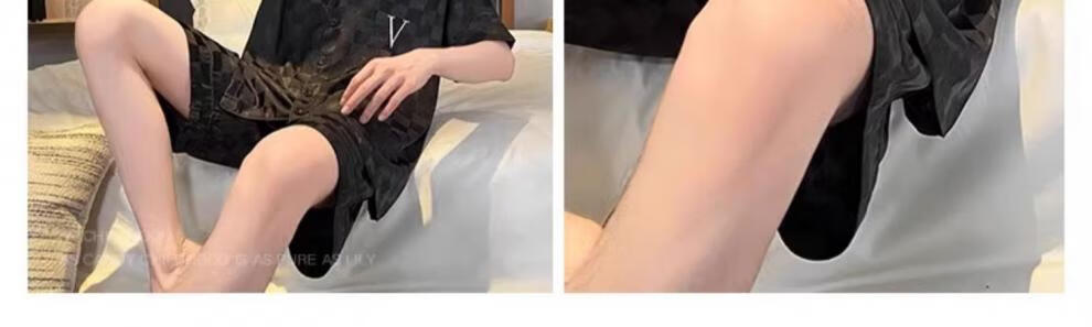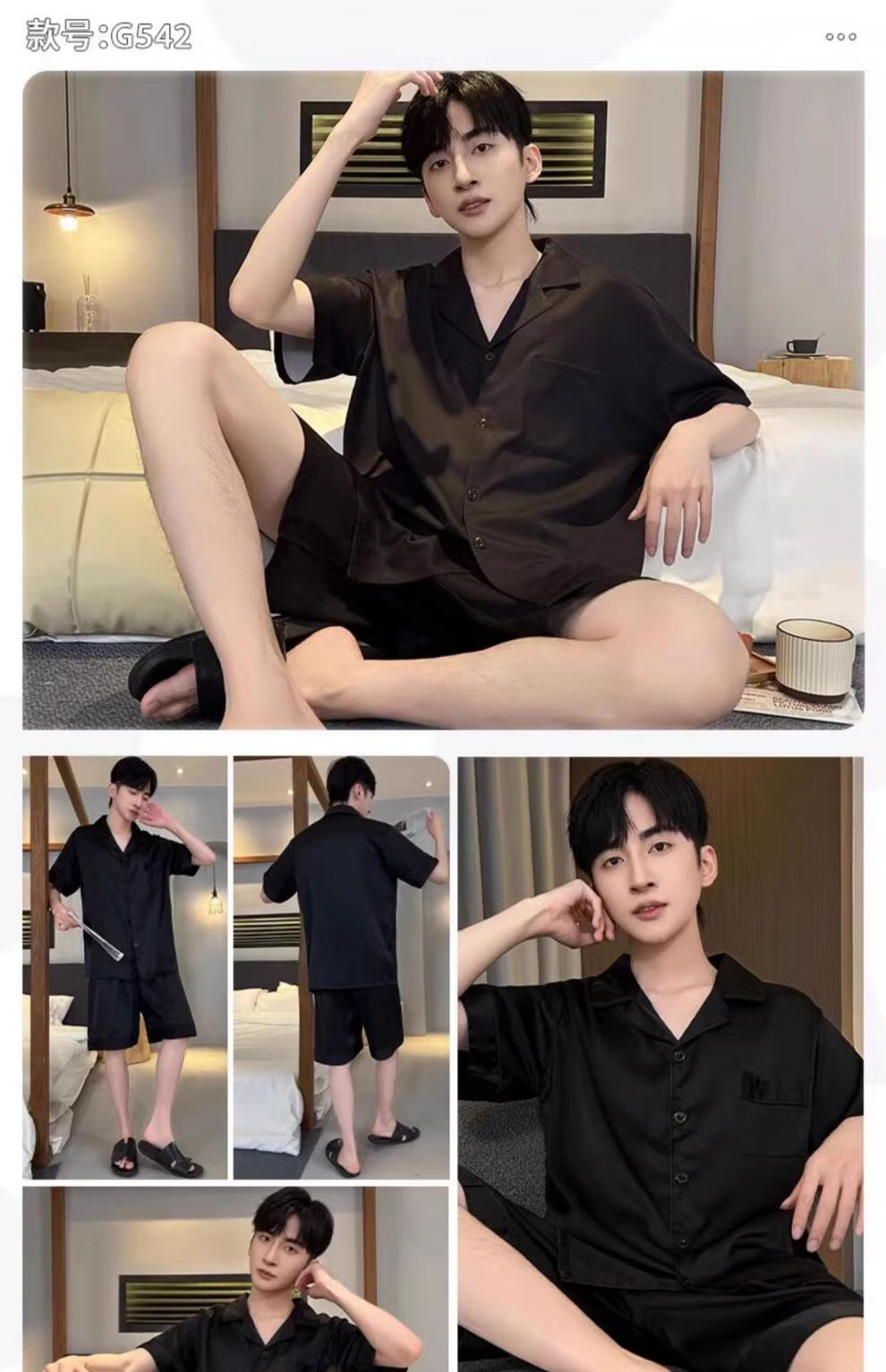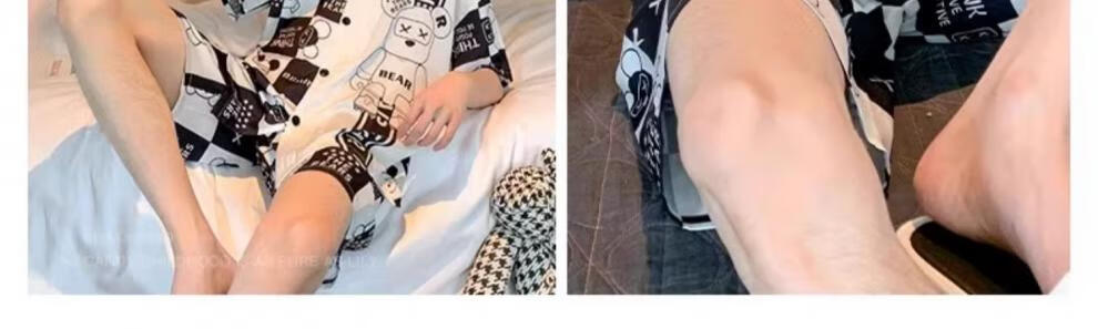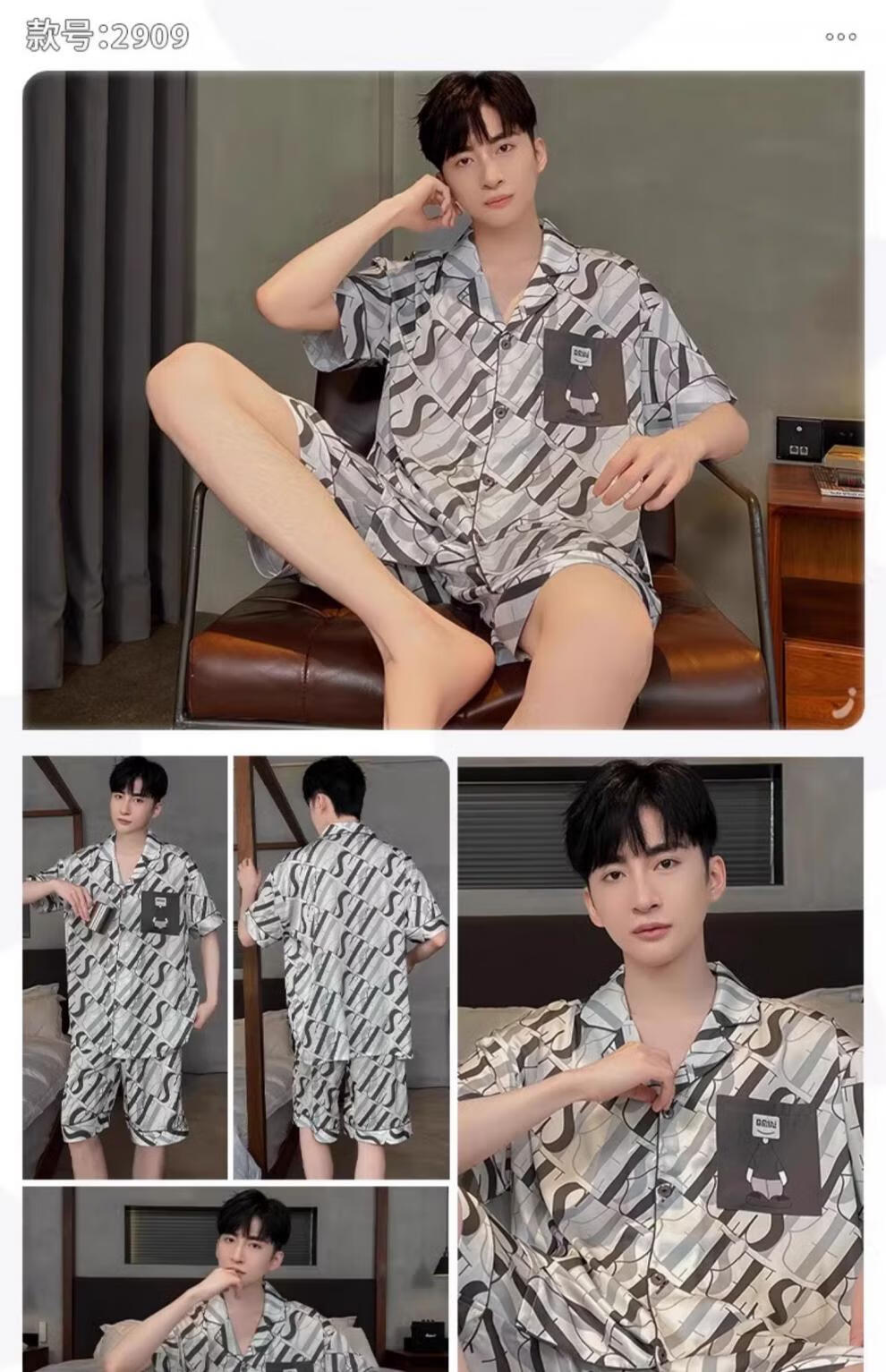 MiiOW pajamas men's summer ice-sleeved short-sleeved pants summer thin simulated silk boys' youth student home clothes set G542 L (height about 170 and weight-130Jin Jin is equal to 0.5 kg)