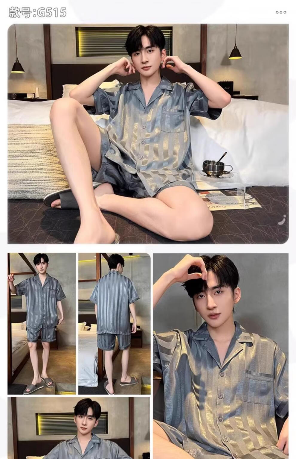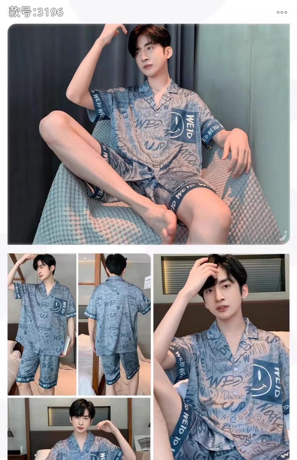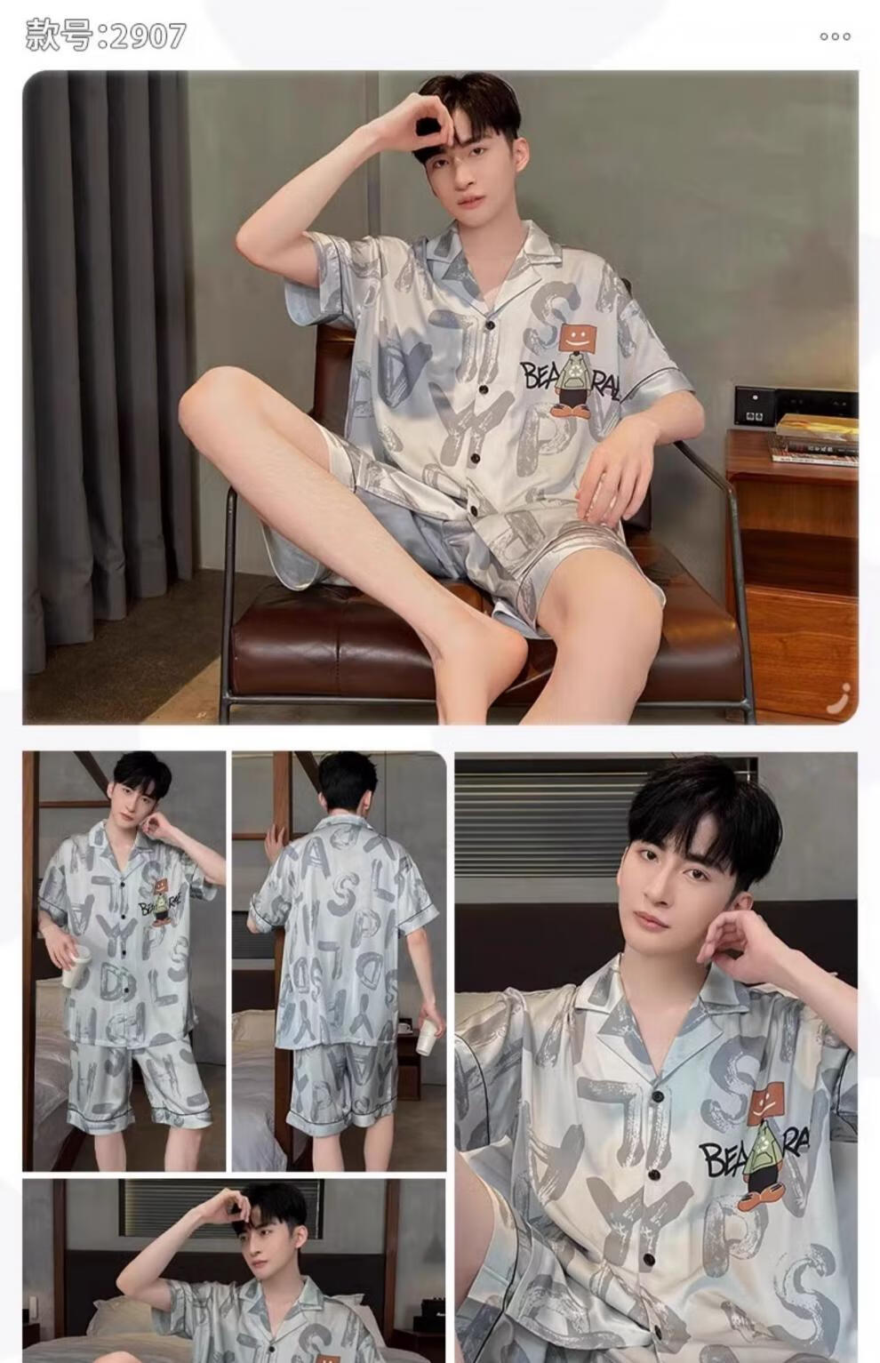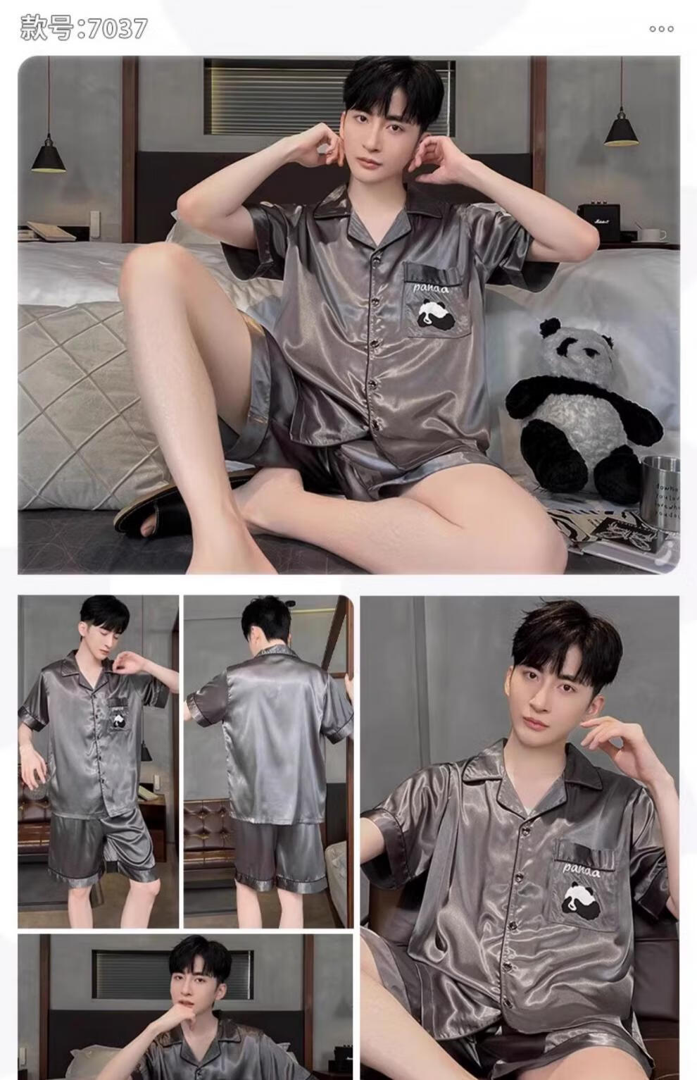 MiiOW pajamas men's summer ice-sleeved short-sleeved pants summer thin simulated silk boys' youth student home clothes set G542 L (height about 170 and weight-130Jin Jin is equal to 0.5 kg)