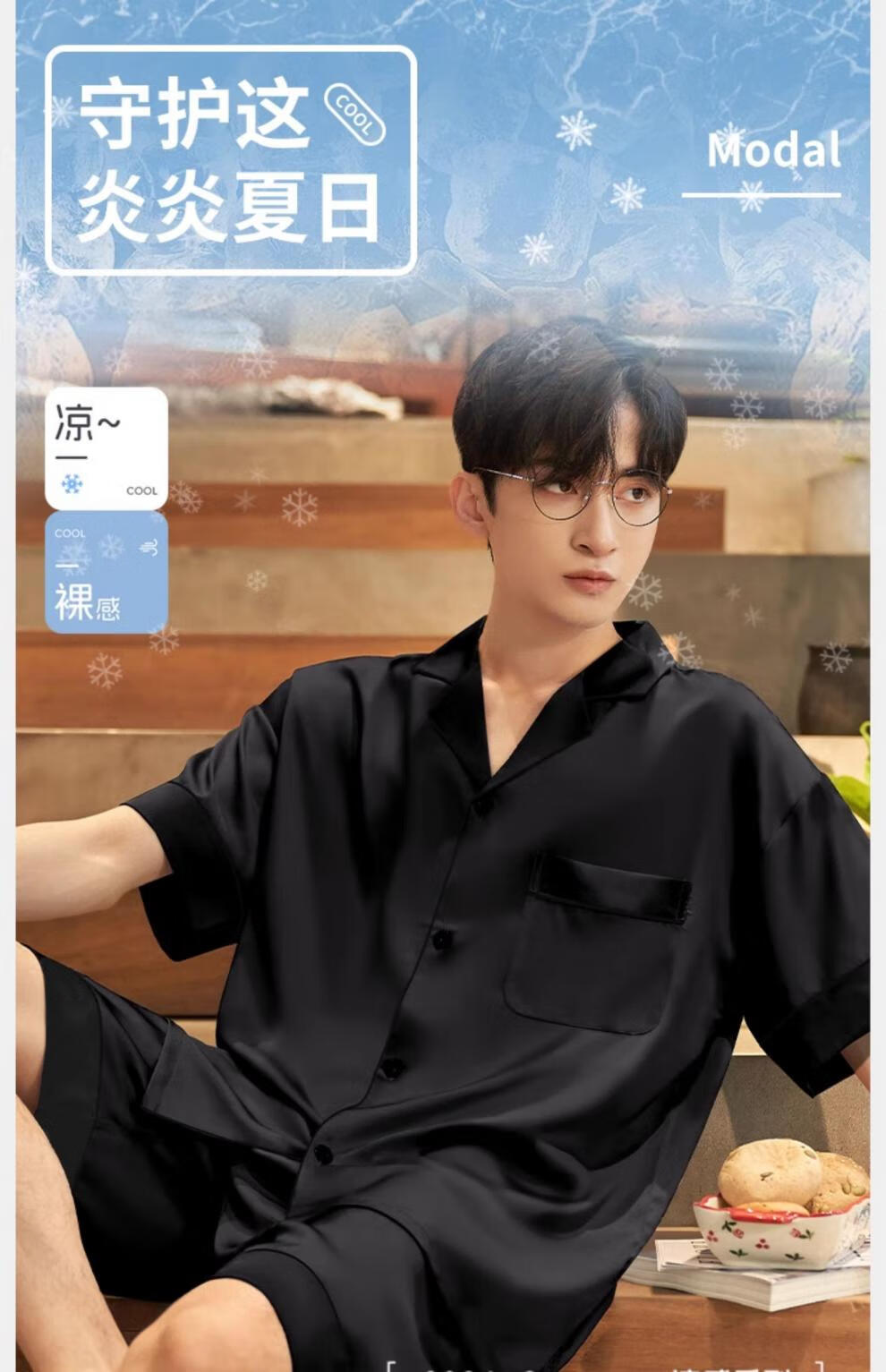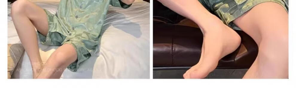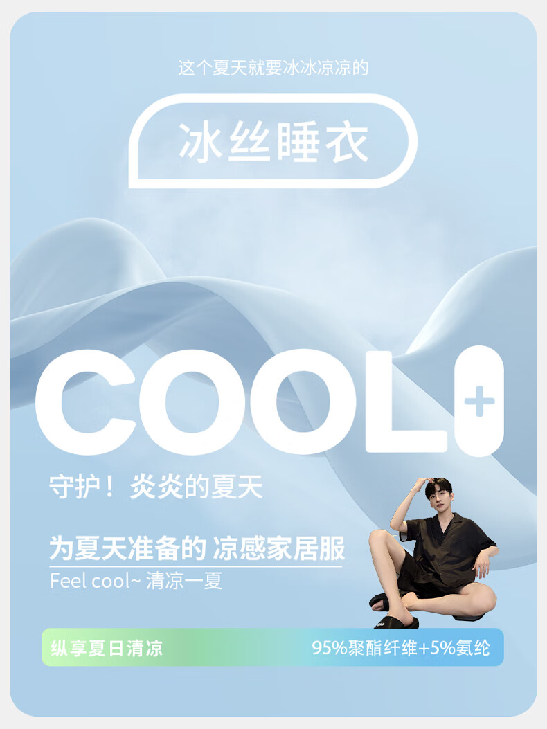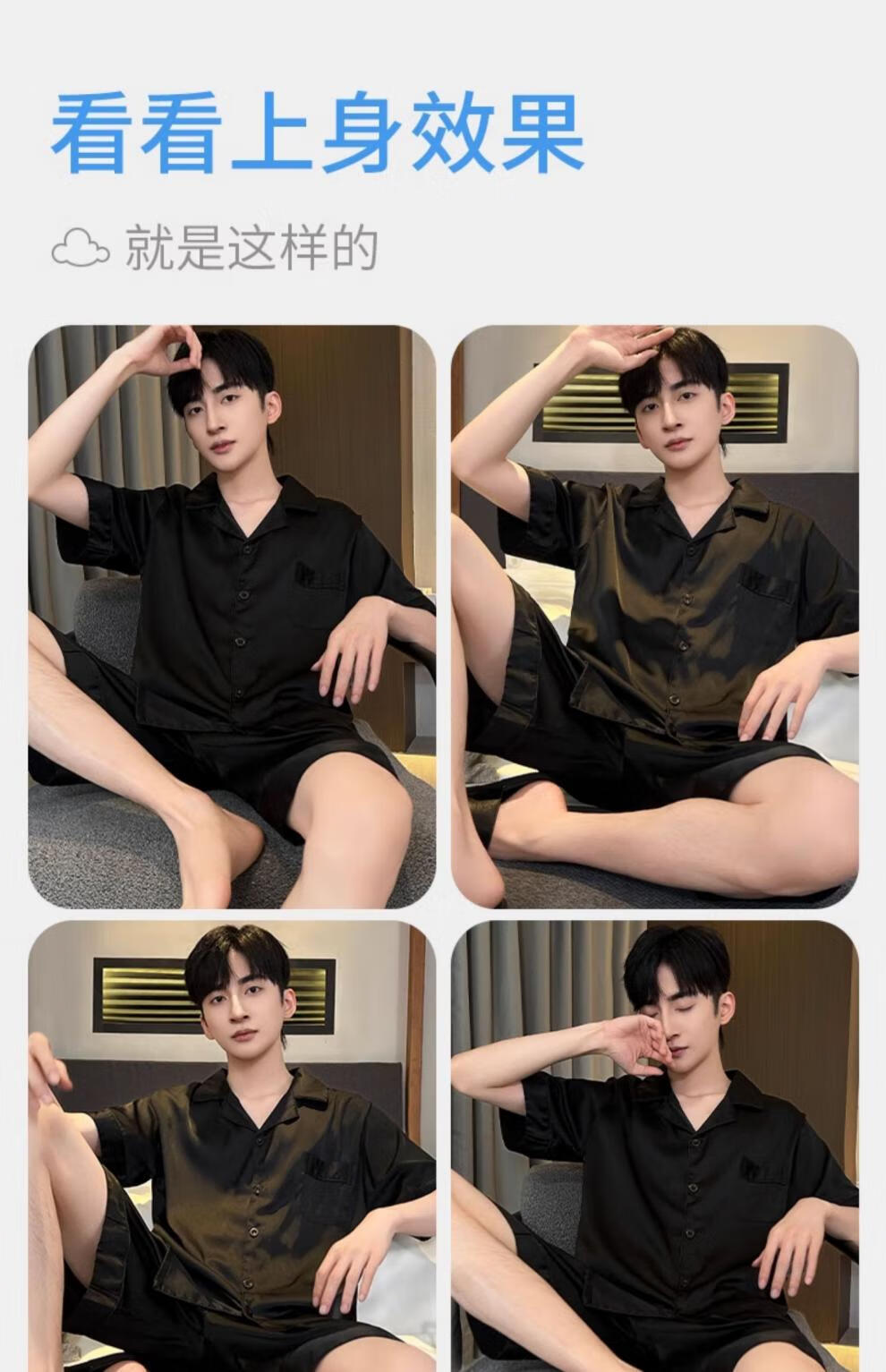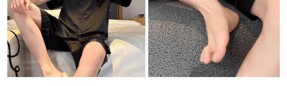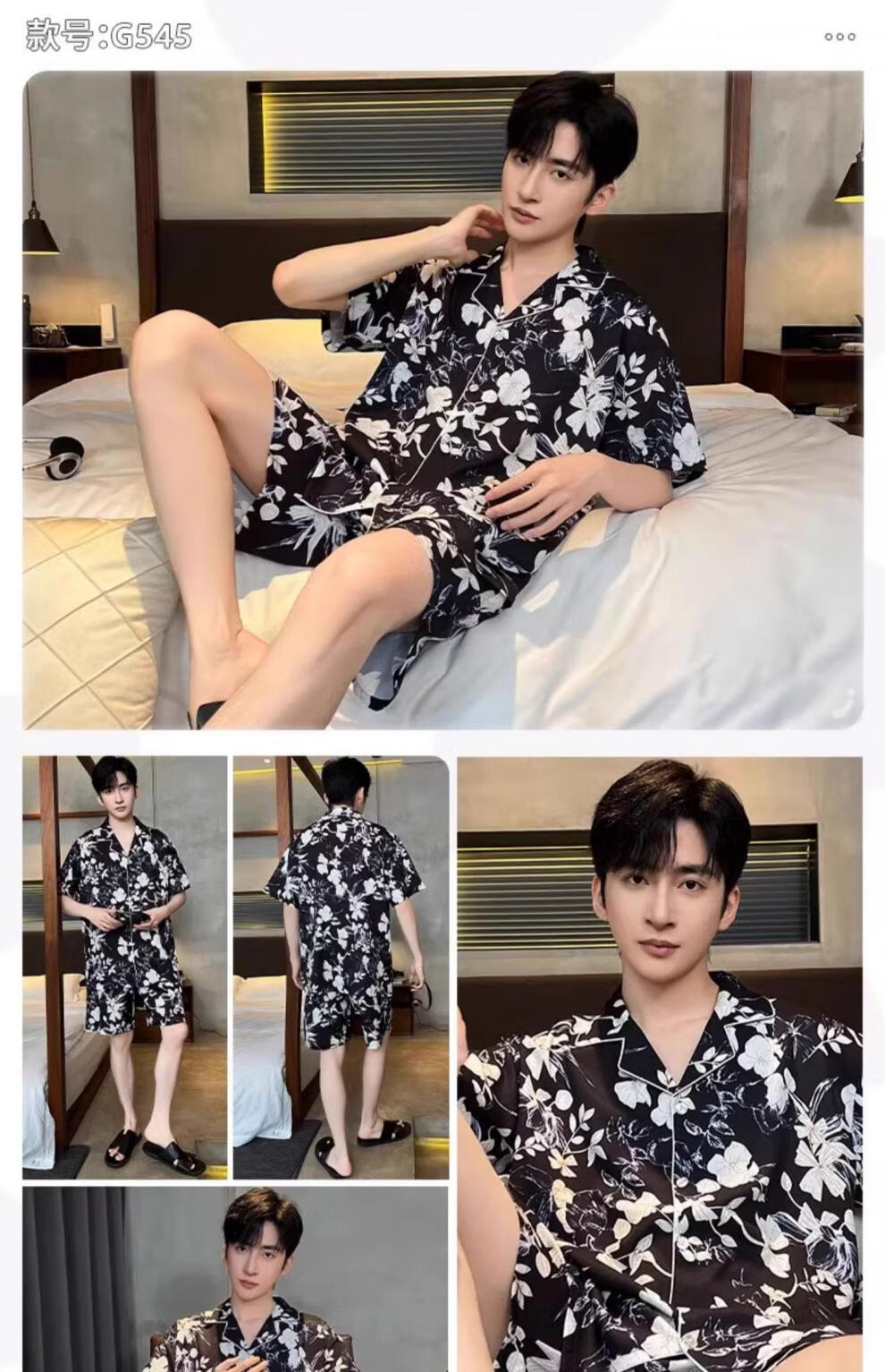 MiiOW pajamas men's summer ice-sleeved short-sleeved pants summer thin simulated silk boys' youth student home clothes set G542 L (height about 170 and weight-130Jin Jin is equal to 0.5 kg)